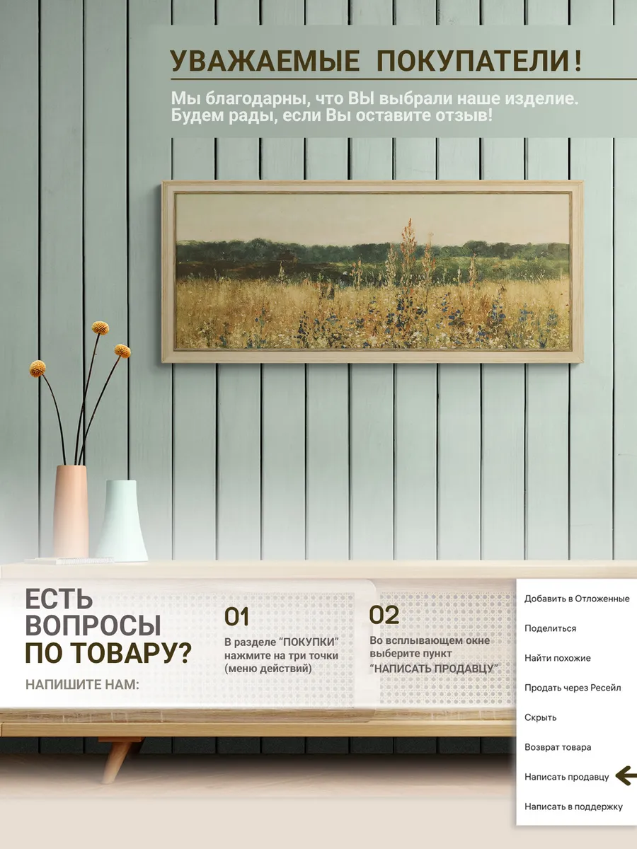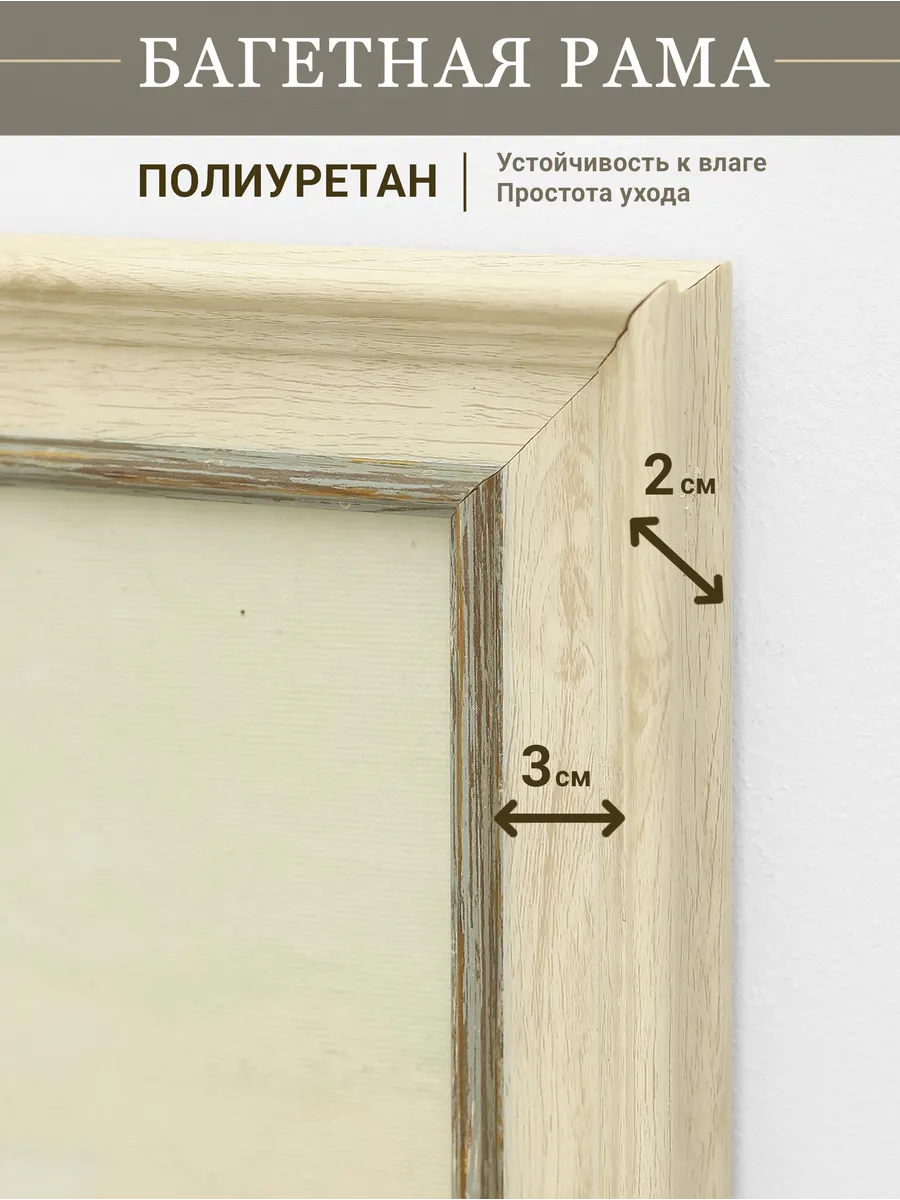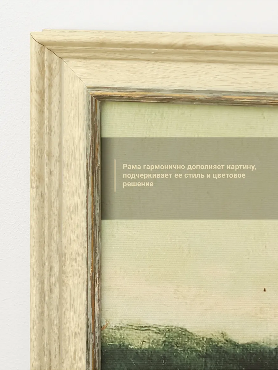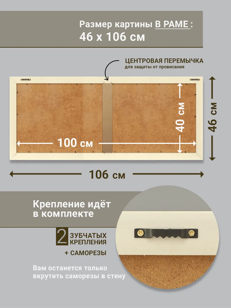 Картина напечатана на натуральном холсте, покрыта лаком. Холст наклеен на ХДФ, чтобы избежать провисания. Размер по холсту 100*40 см, размер картины с рамой 106*46 см. Картина будет прекрасно смотреться как самостоятельно, так и в композиции с другими картинами этой коллекции.