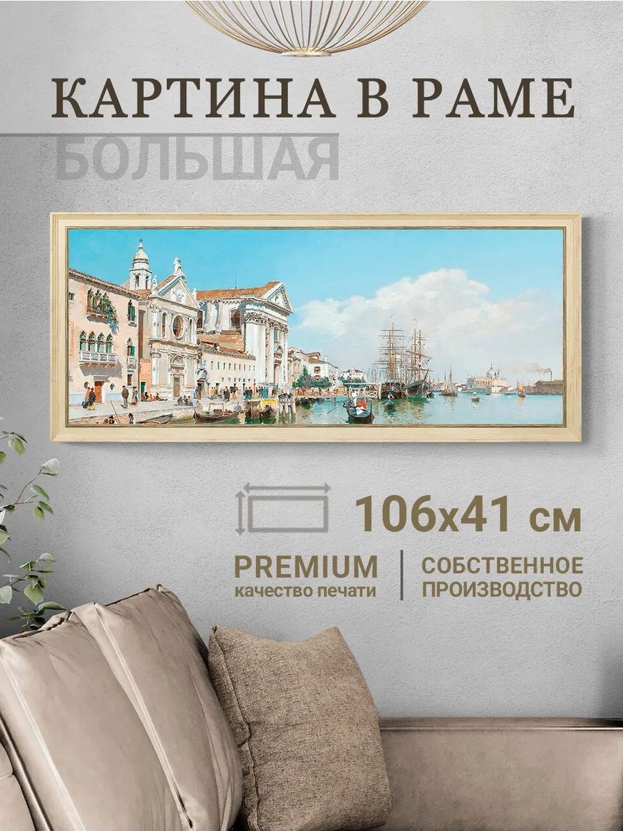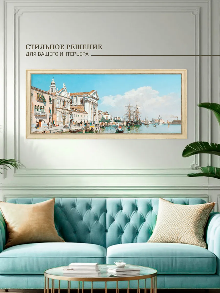Картина напечатана на натуральном холсте, покрыта лаком. Холст наклеен на ХДФ, чтобы избежать провисания. Размер по холсту 100*40 см, размер картины с рамой 106*46 см. Картина будет прекрасно смотреться как самостоятельно, так и в композиции с другими картинами этой коллекции.