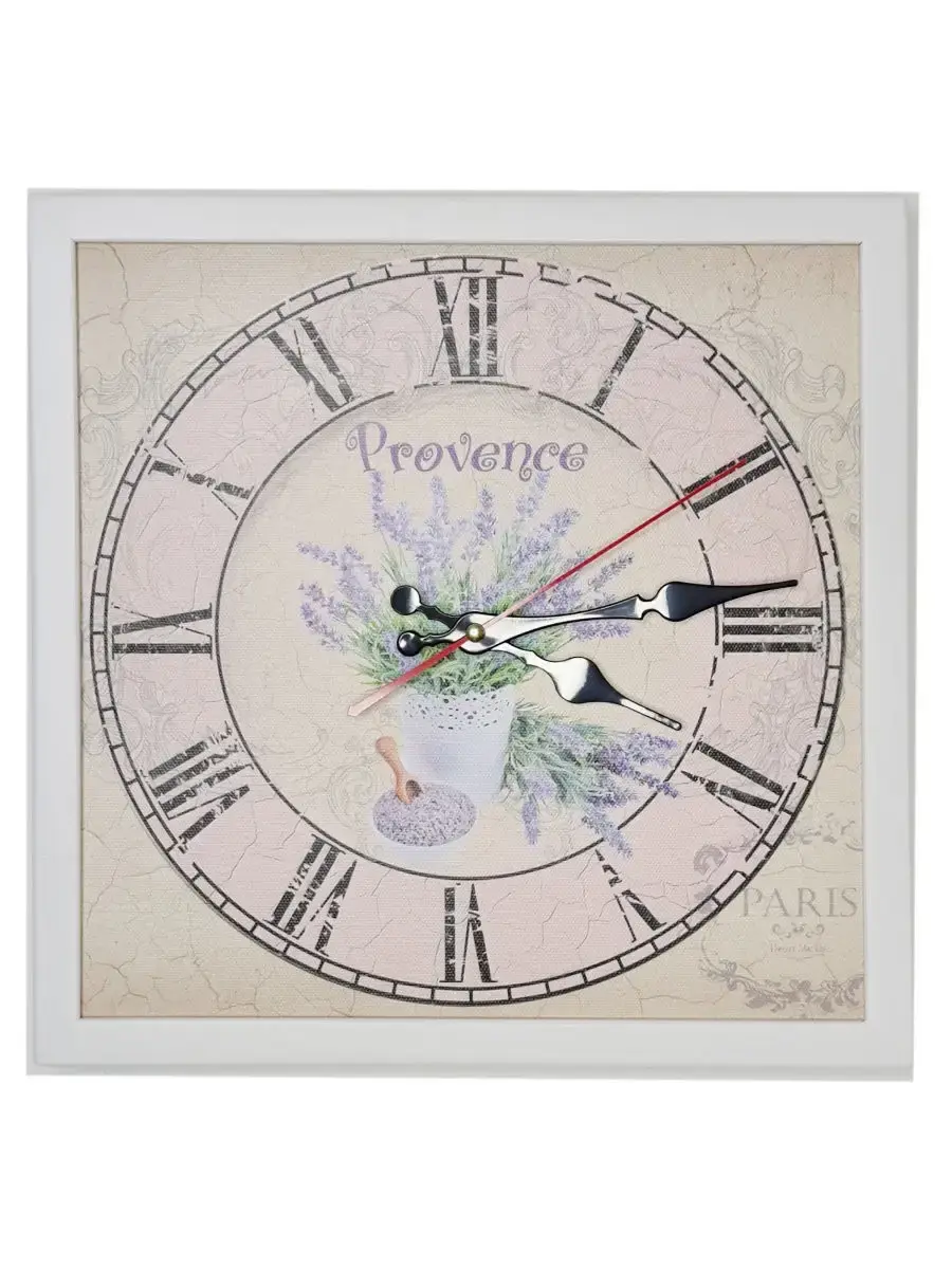 Настенные часы в лаконичной белой раме. Циферблат напечатан на натуральном холсте, покрыт лаком. Размер часов 33*33 см, глубина 3 см. Механизм бесшумный на одной батарейке ААА. Батарейка в комплект не входит.