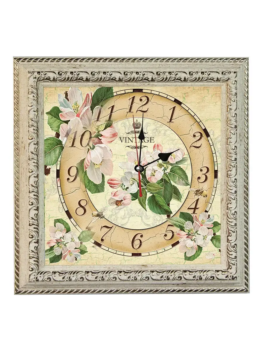 Настенные часы в красивой багетной раме с деликатной позолотой. Циферблат напечатан на натуральном холсте, покрыт лаком. Размер часов 38*38 см, глубина 5 см. Механизм бесшумный на одной батарейке ААА. Батарейка в комплект не входит. Часы сочетаются с полкой арт.15497754