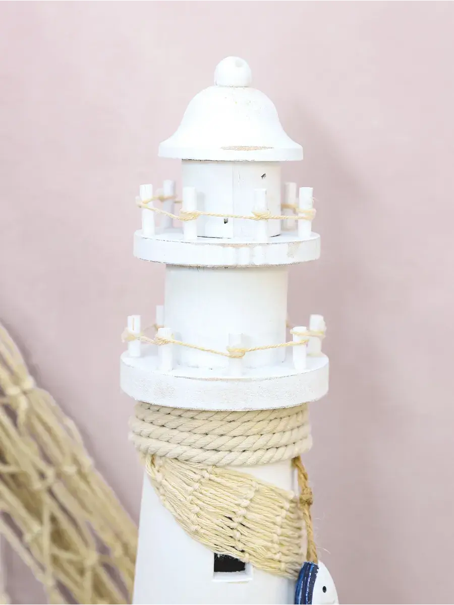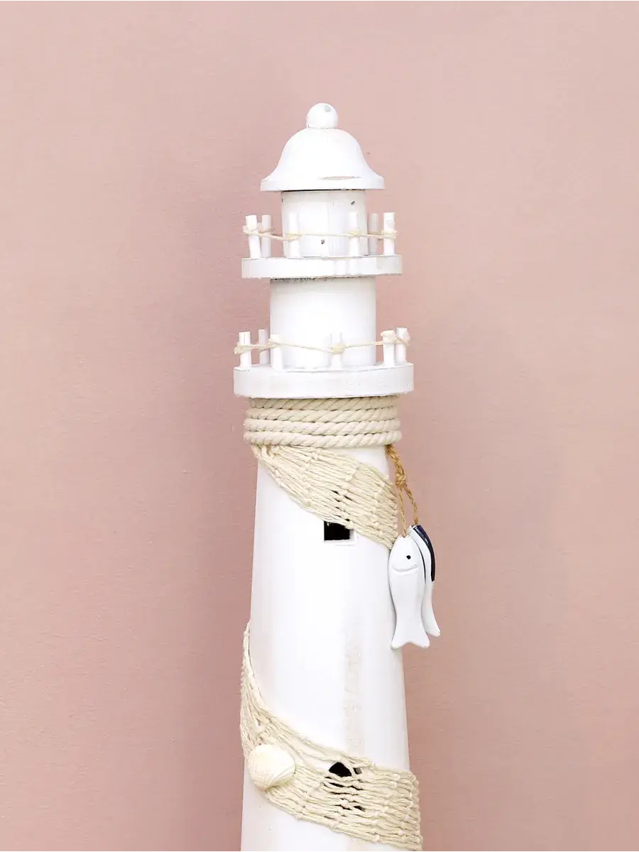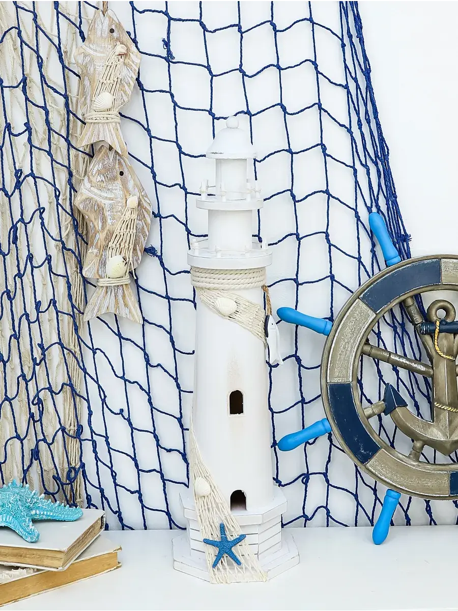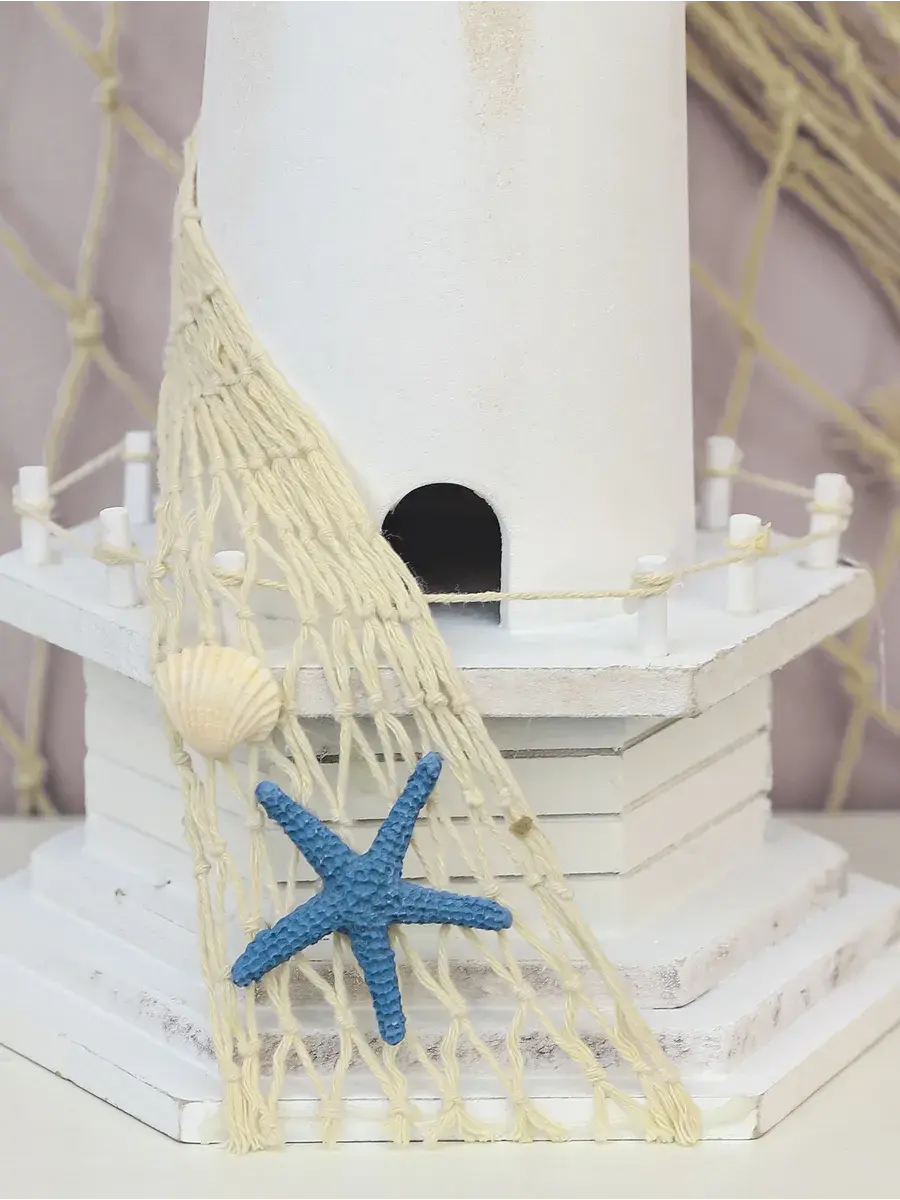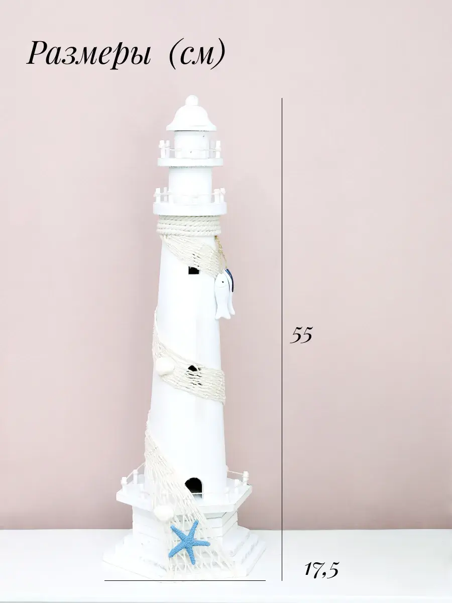 Красивый, фактурный, колоритный маяк для интерьера в морском стиле, инсталляции, детской комнаты. Украсит собой любой интерьер, станет любопытным объектом, который хочется рассматривать. Высота маяка 55 см. Морской декор станет дополнением детской комнаты. Позволит вашему ребенку развить фантазию и научится мечтать. Множество композиций можно создать с элементами декора в морском стиле от бренда Elenadecor.