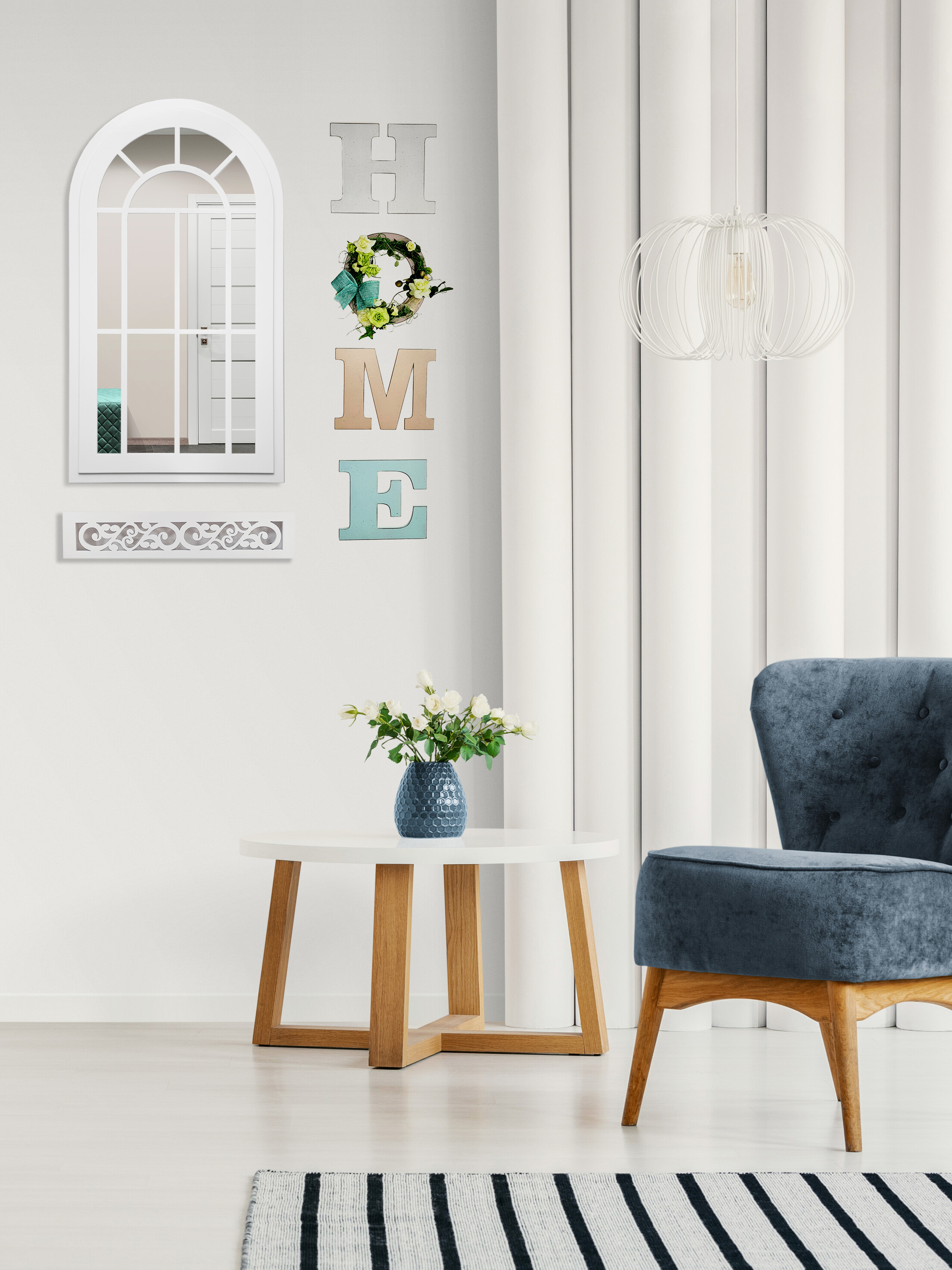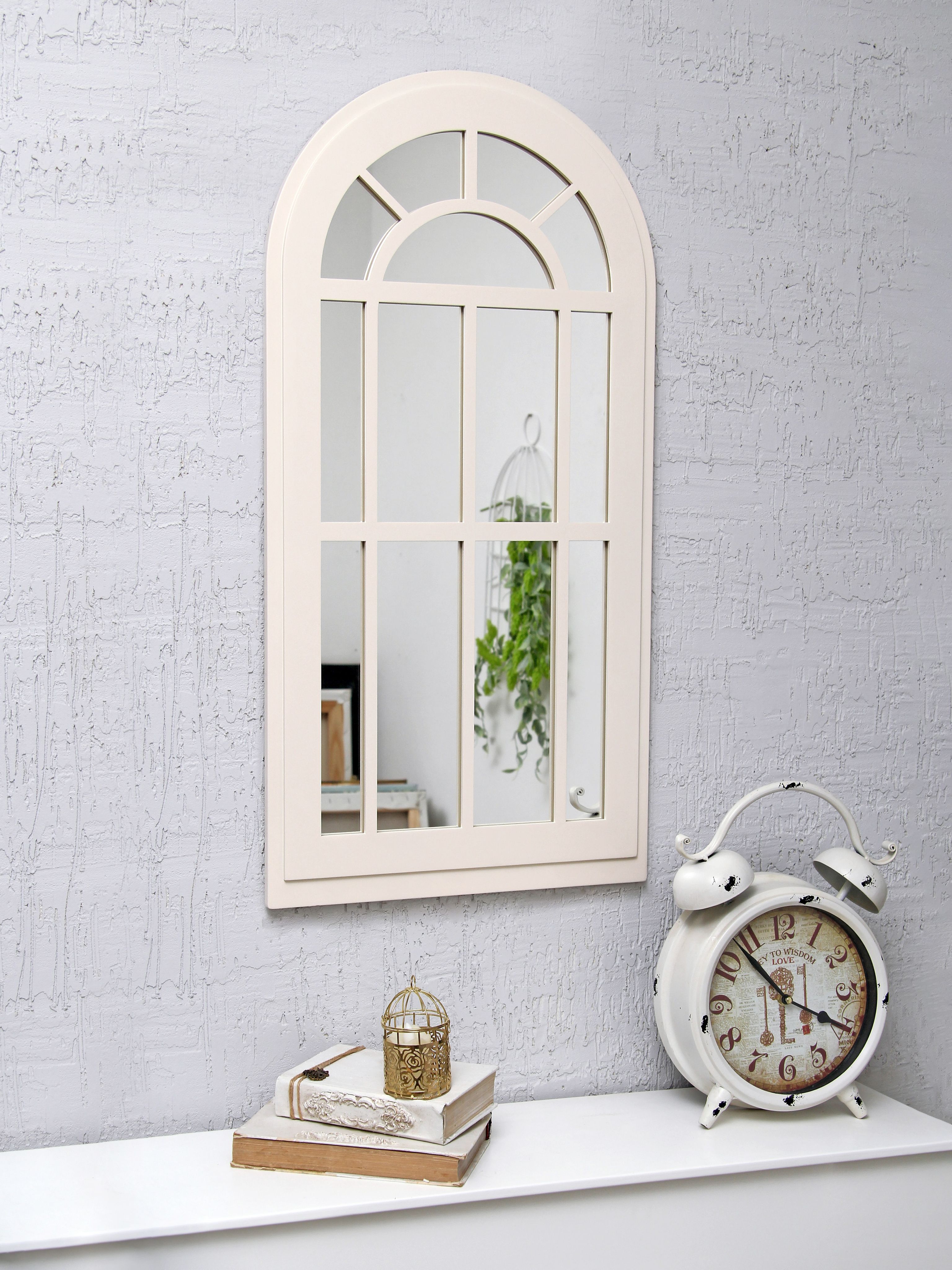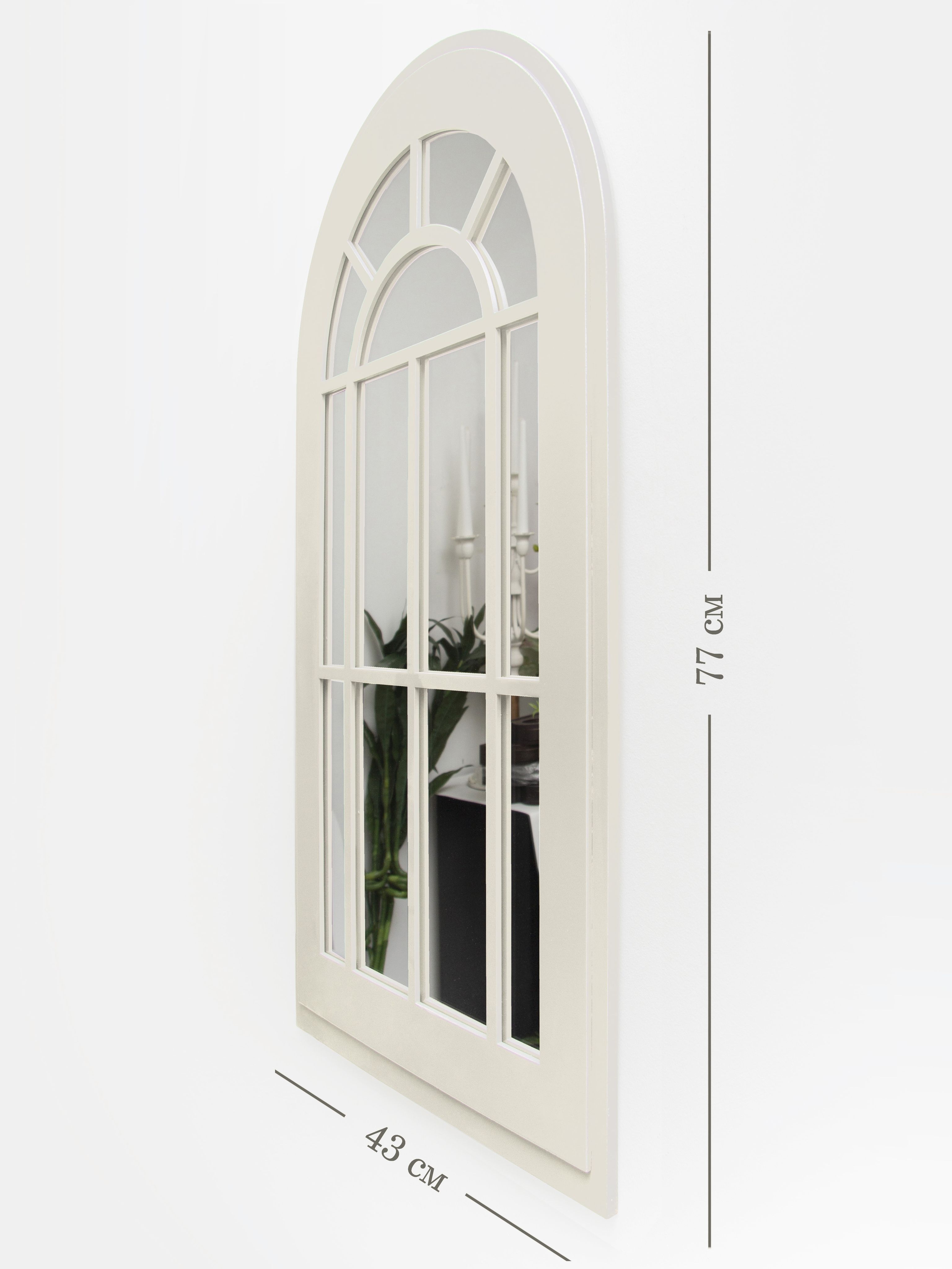 Зеркальный декор на стену в форме окна. Размер зеркального панно 67х34 см. Вставки из зеркала. Интерьерное зеркало будет прекрасным дополнением к настенному декору. Рама зеркала покрашена акриловой эмалью на водной основе. Подойдет для оформления интерьера в стиле прованс, добавит света и пространства в интерьере. На обратной стороне зеркала две петли, шурупы для крепления на стену в комплекте.
