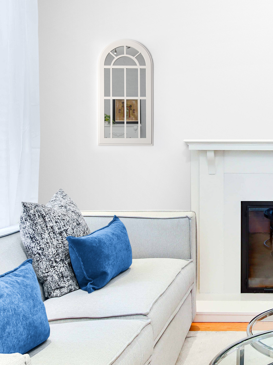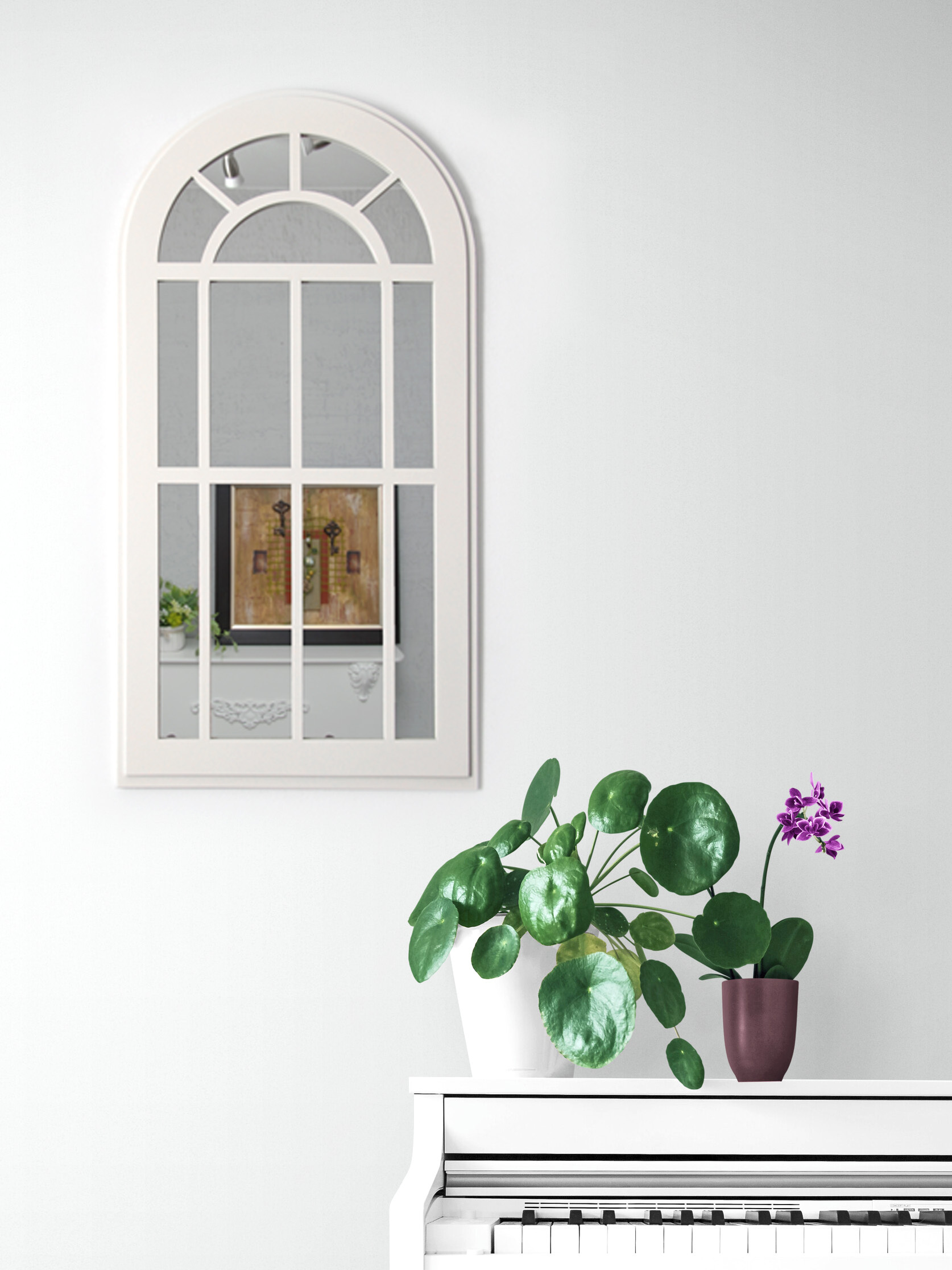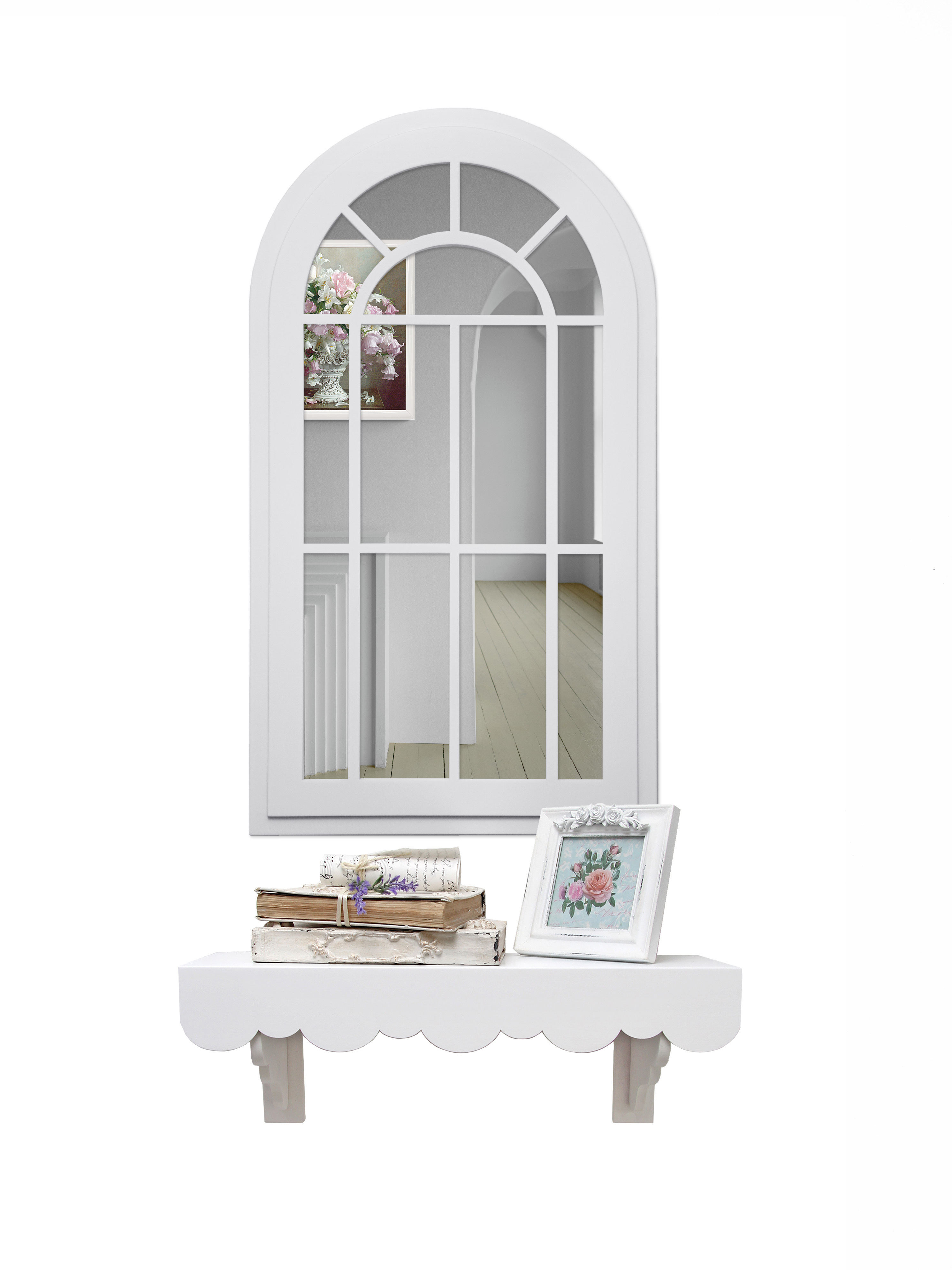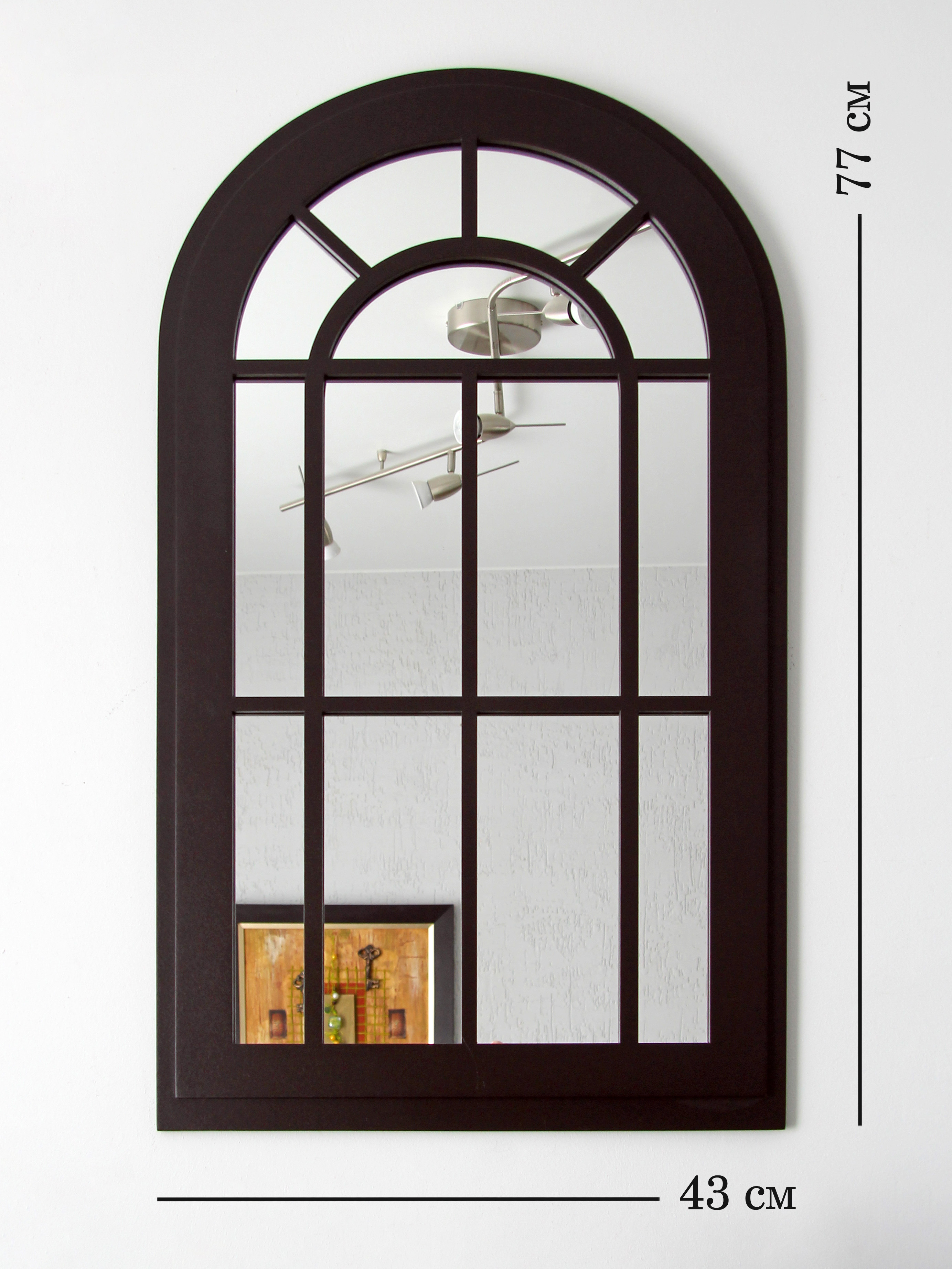 Зеркальный декор на стену в форме окна. Размер зеркального панно 77х43 см. Вставки из натурального зеркала. Интерьерное зеркало будет прекрасным дополнением к настенному декору. Рама зеркала покрашена акриловой эмалью на водной основе. Подойдет для оформления интерьера в стиле прованс, добавит света и пространства в интерьере. На обратной стороне зеркала две петли, шурупы для крепления на стену в комплекте