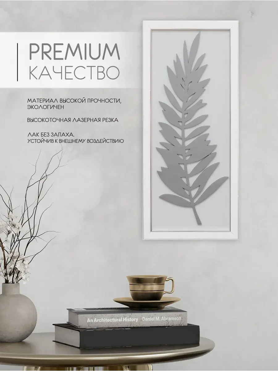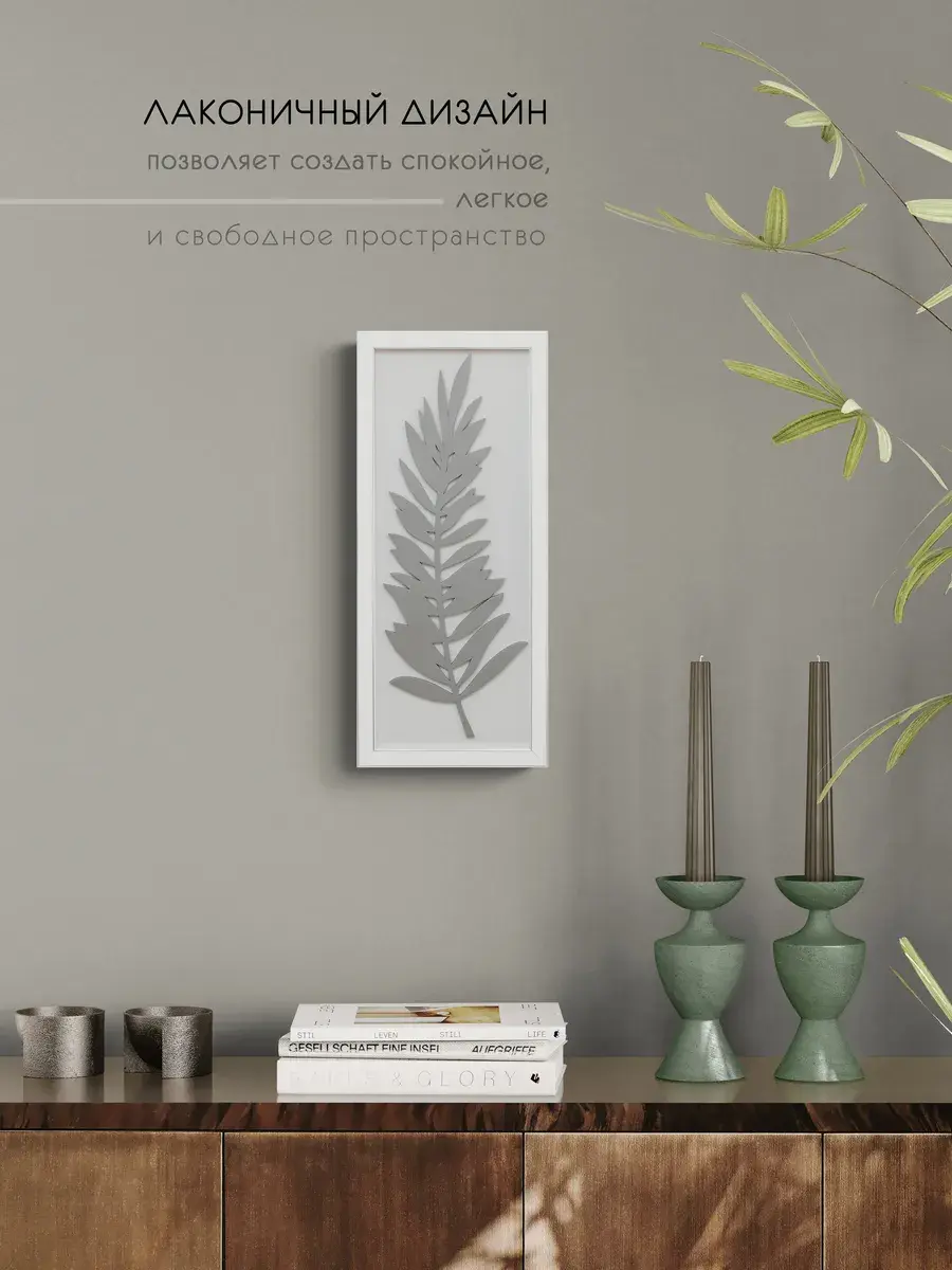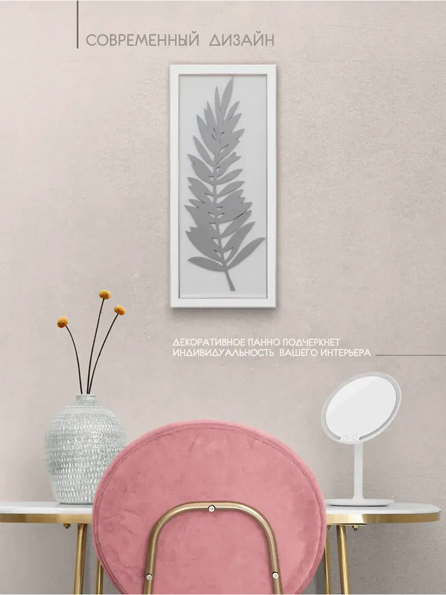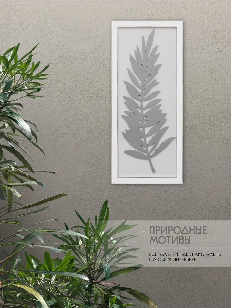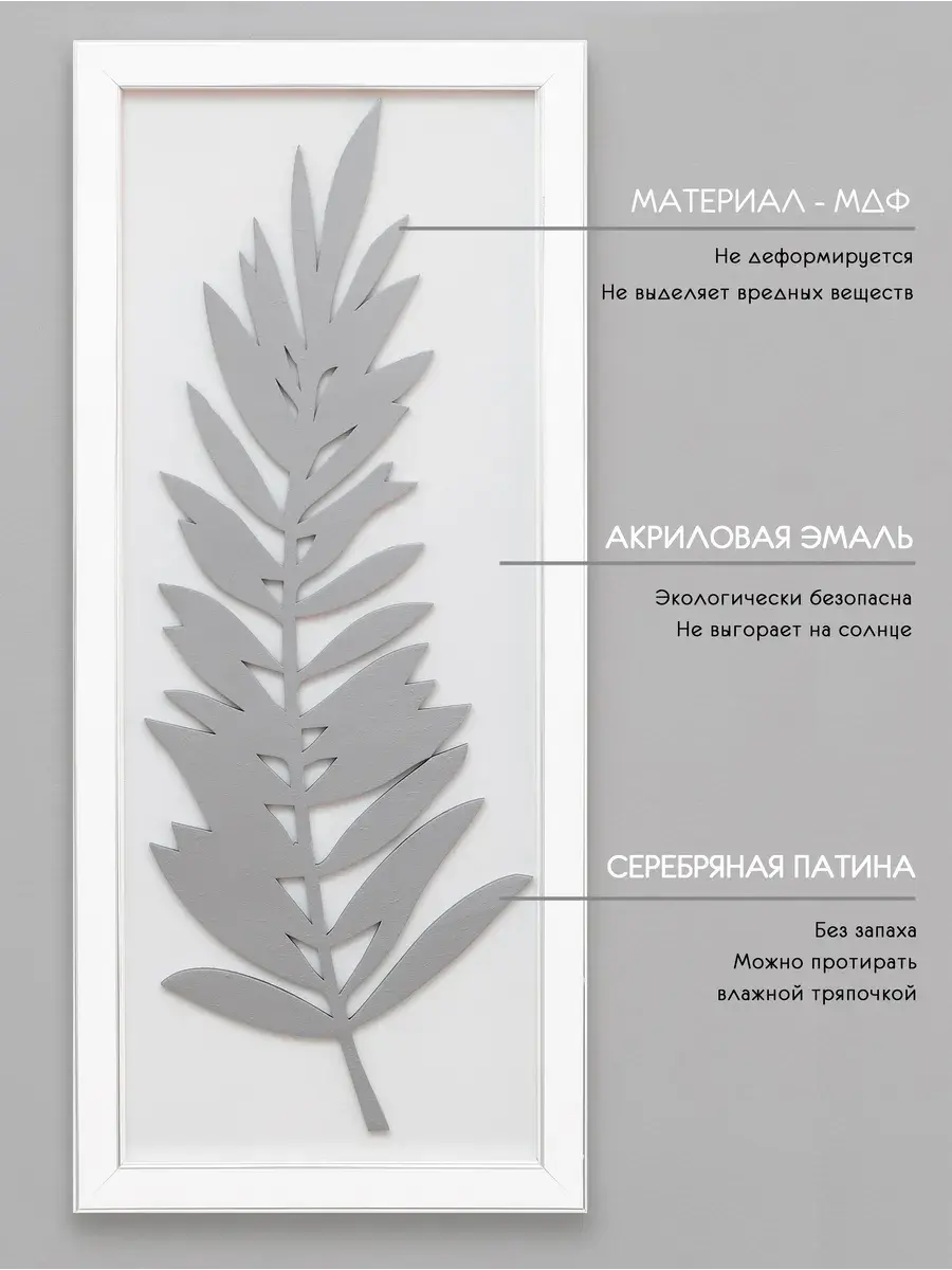 Рама белая с серебряным кантом. Настенные панно "Пальмовые листья". Декор 3D на стену для комнаты в современном стиле. Деревянный резной декор оформлен в лаконичную багетную раму, покрашен акриловой эмалью на водной основе. Декор для интерьера дома и дачи. Декорация на стену спальни, прихожей, украшение для кухни и ванной комнаты. Деревянные панно легкие и изящные, преобразят интерьер комнат. Размер одного панно 17*39 см. Цвет фона белый. С обратной стороны зубчатый крепеж, крепление для стены в комплекте.
