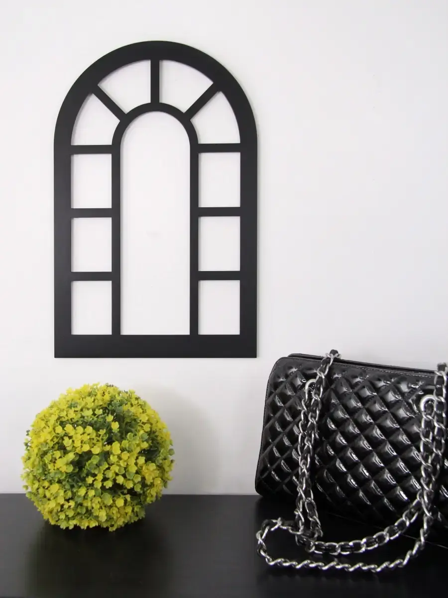Настенный декор "Окно-арка" выполнен из высококачественной березовой фанеры, окрашен акриловой эмалью. Размер 31х47 см. Можно установить зеркало размером 30*45 см.