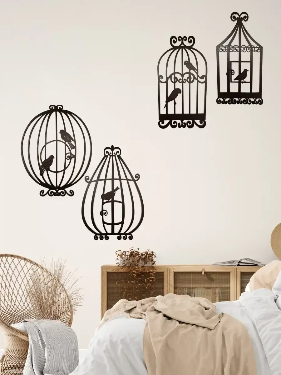 Комплект из четырех панно "Птички в клетке". Настенный декор изготовлен из ХДФ 3 мм. Комплект в цвете "бежевый" не окрашен и имеет естественный цвет материала, подходит для окрашивания в любой необходимый вам цвет. Комплект в коричневом цвете окрашен акриловой эмалью без запаха, абсолютно экологичен. Размер каждой клетки - высота 30 см, ширина +-20 см. Можно использовать в оформлении интерьера, для творчества, для декораций.