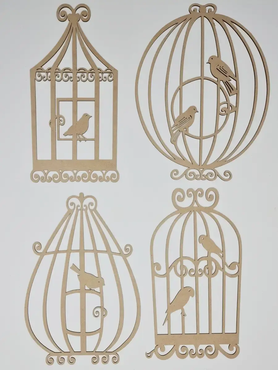 Комплект из четырех панно "Птички в клетке". Настенный декор изготовлен из ХДФ 3 мм. Комплект в цвете "бежевый" не окрашен и имеет естественный цвет материала, подходит для окрашивания в любой необходимый вам цвет. Комплект в коричневом цвете окрашен акриловой эмалью без запаха, абсолютно экологичен. Размер каждой клетки - высота 30 см, ширина +-20 см. Можно использовать в оформлении интерьера, для творчества, для декораций.