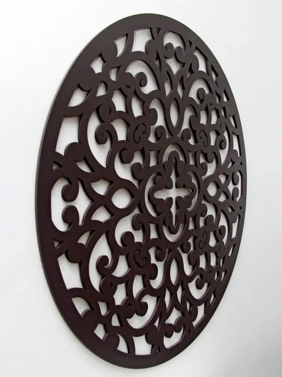 Резное настенное панно круглой формы "Флоренция". Оформление стен в современном дизайне имеет важное значение. Крупный настенный декор - украшение современного интерьера квартиры или офиса. Панно изготовлено из МДФ 6 мм, окрашено акриловой эмалью без запаха. Диаметр панно - 80 см. Панно представлены в разных формах, они прекрасно собираются в большую композицию, дополняя друг друга. Подходят для оформления больших помещений в одном стиле. Крепление для стены в комплекте.