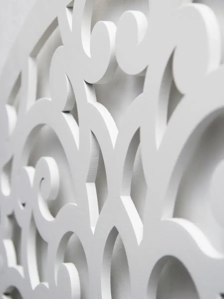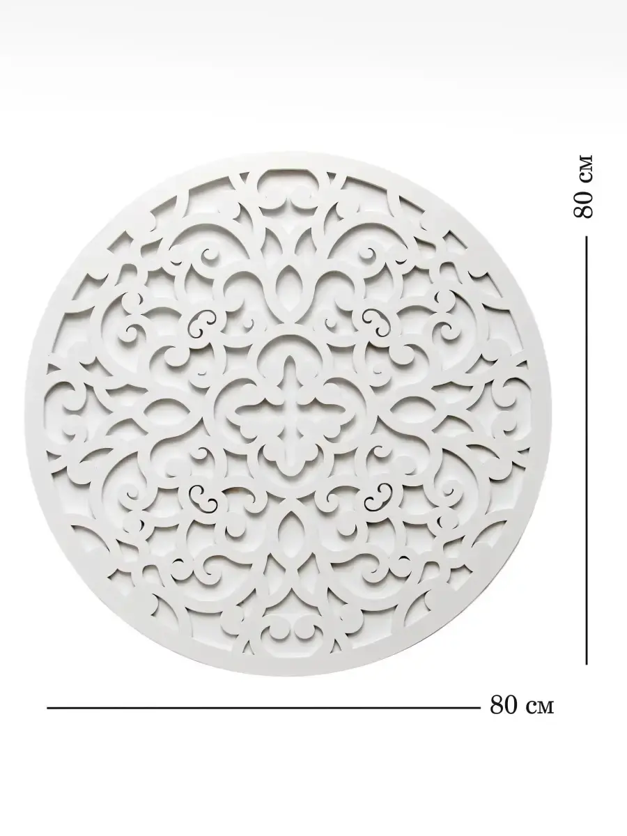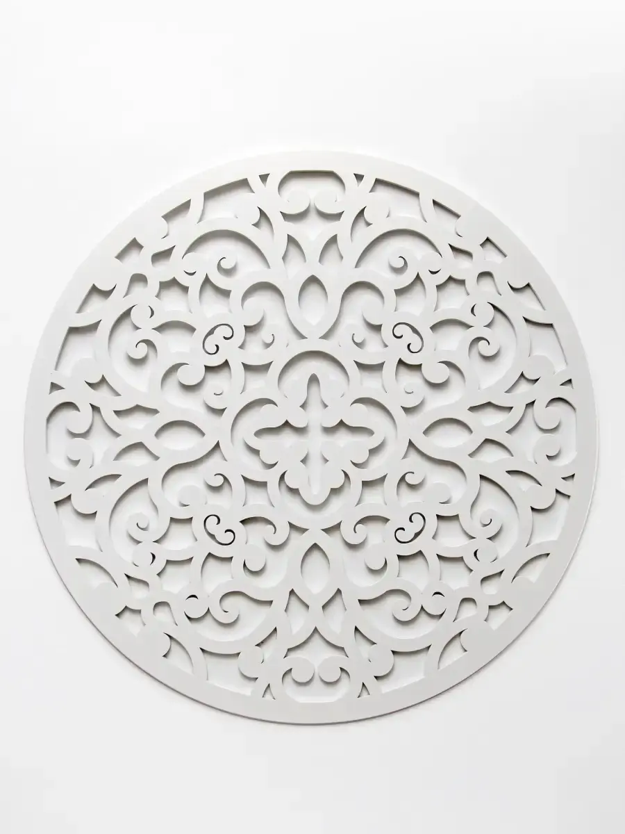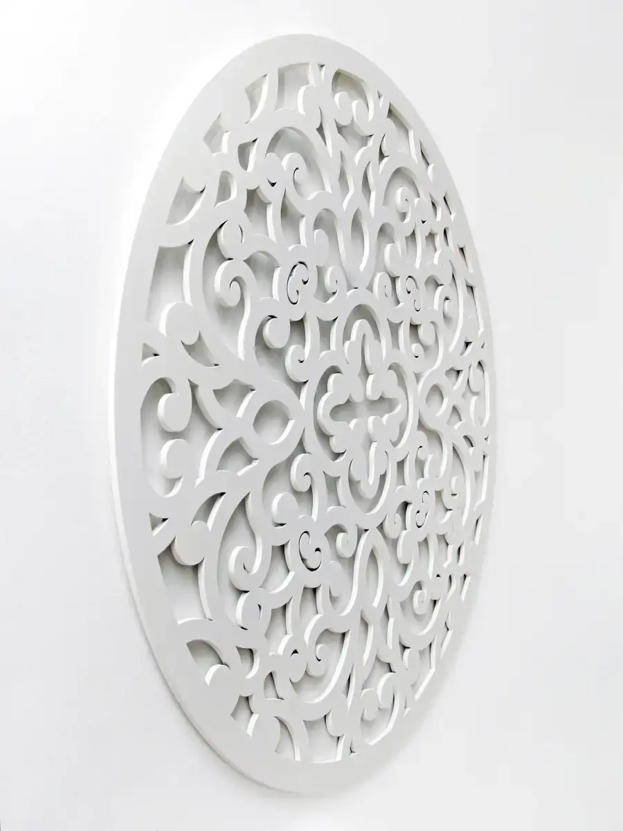 Резное настенное панно круглой формы "Флоренция". Оформление стен в современном дизайне имеет важное значение. Крупный настенный декор - украшение современного интерьера квартиры или офиса. Панно изготовлено из МДФ 6 мм, окрашено акриловой эмалью без запаха. Большое настенное панно легко приобразит ваш интерьер, Диаметр панно - 80 см. Панно представлены в разных формах, они прекрасно собираются в большую композицию, дополняя друг друга. Подходят для оформления больших помещений в одном стиле.