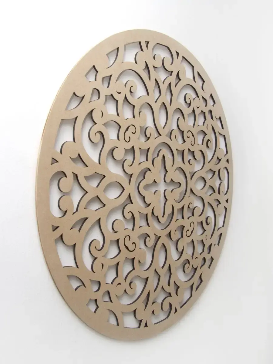 Резное настенное панно круглой формы "Флоренция". Оформление стен в современном дизайне имеет важное значение. Крупный настенный декор - украшение современного интерьера квартиры или офиса. Панно изготовлено из МДФ 6 мм, без покраск, вы можете покрасить в любой цвет для вашего интерьера. Диаметр панно - 80 см. Крепление для стены в комплекте.