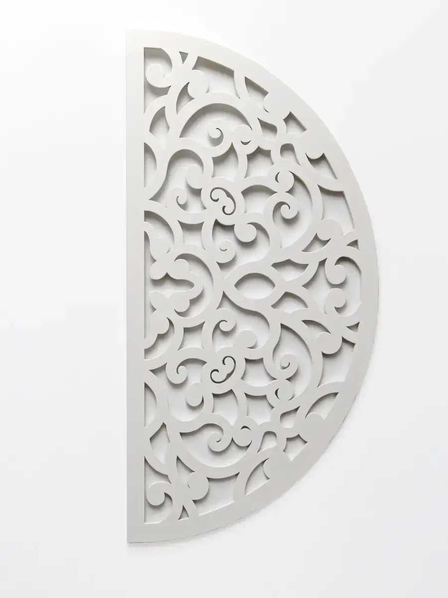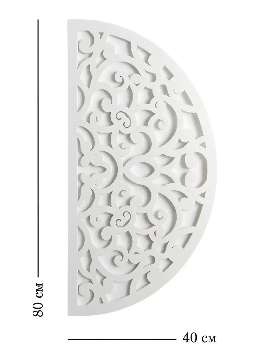 В комплекте 1 полукруг размером 40х80 см. Резное настенное панно "Флоренция" для украшения интерьера в современном стиле. Крупный декор на стену можно дополнить вторым полукругом, кругом или квадратом для декорирования большего пространства. Панно станет прекрасным дополнением дизайна дома, офиса, квартиры. Панно изготовлено из МДФ 6 мм, окрашено акриловой эмалью без запаха. Размер панно - 40х80 см. Крепление для стены в комплекте.