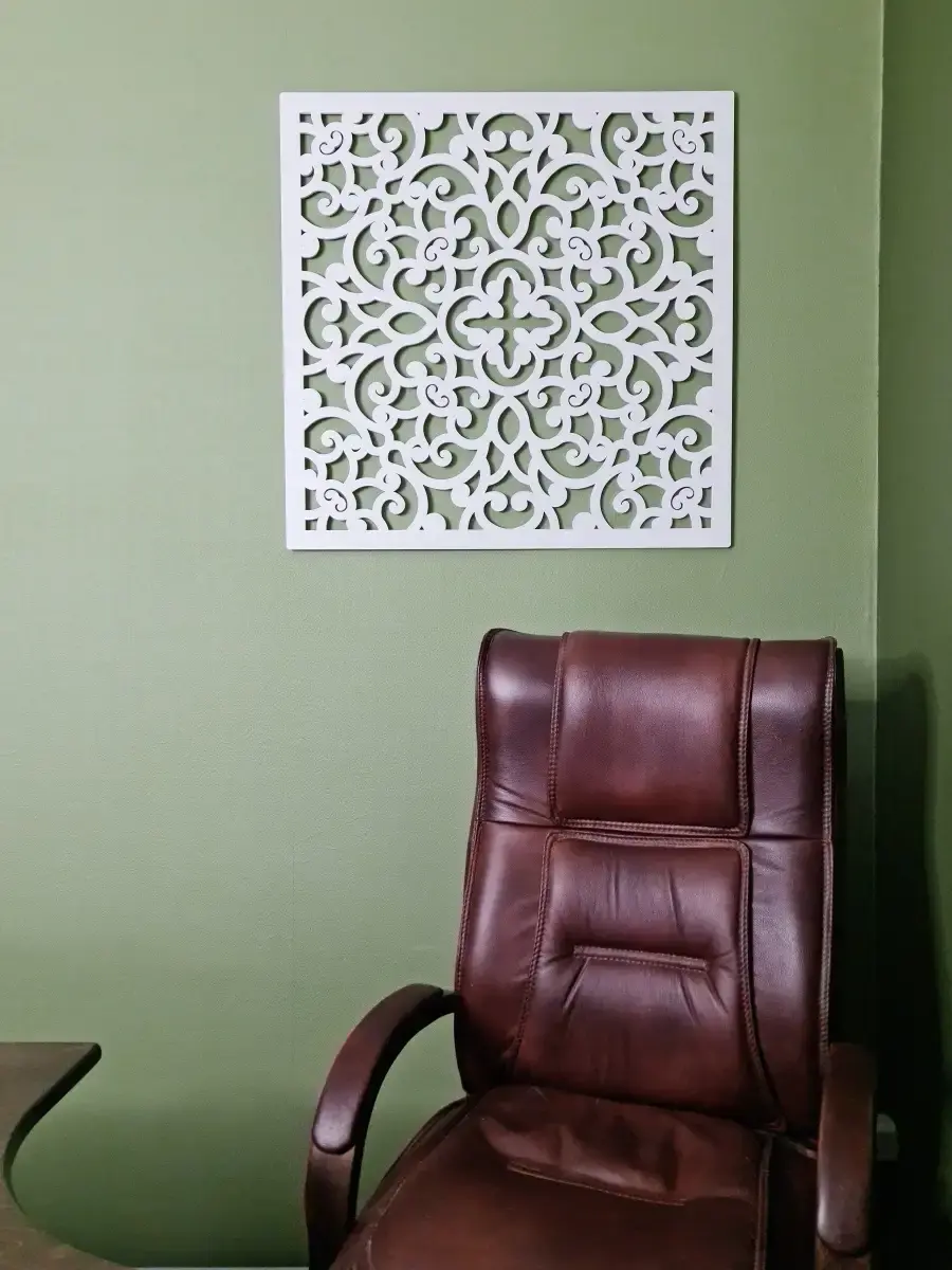 Резное настенное панно "Флоренция" украсит любой интерьер. Настенное панно – это стильный декор, который прекрасно подойдет для кухни, кафе, офиса или столовой. Оно добавит уюта и оригинальности в любое помещение, создавая атмосферу тепла и гармонии. Изготовленное из качественных материалов, панно станет ярким акцентом в интерьере, привлекая внимание и подчеркивая индивидуальность пространства. Простота в уходе и долговечность делают его идеальным решением для любых условий, а разнообразие дизайнов позволит выбрать вариант, который идеально впишется в ваш интерьер. Панно изготовлено из МДФ 6 мм, окрашено акриловой эмалью без запаха. Размер панно - 80х80 см.