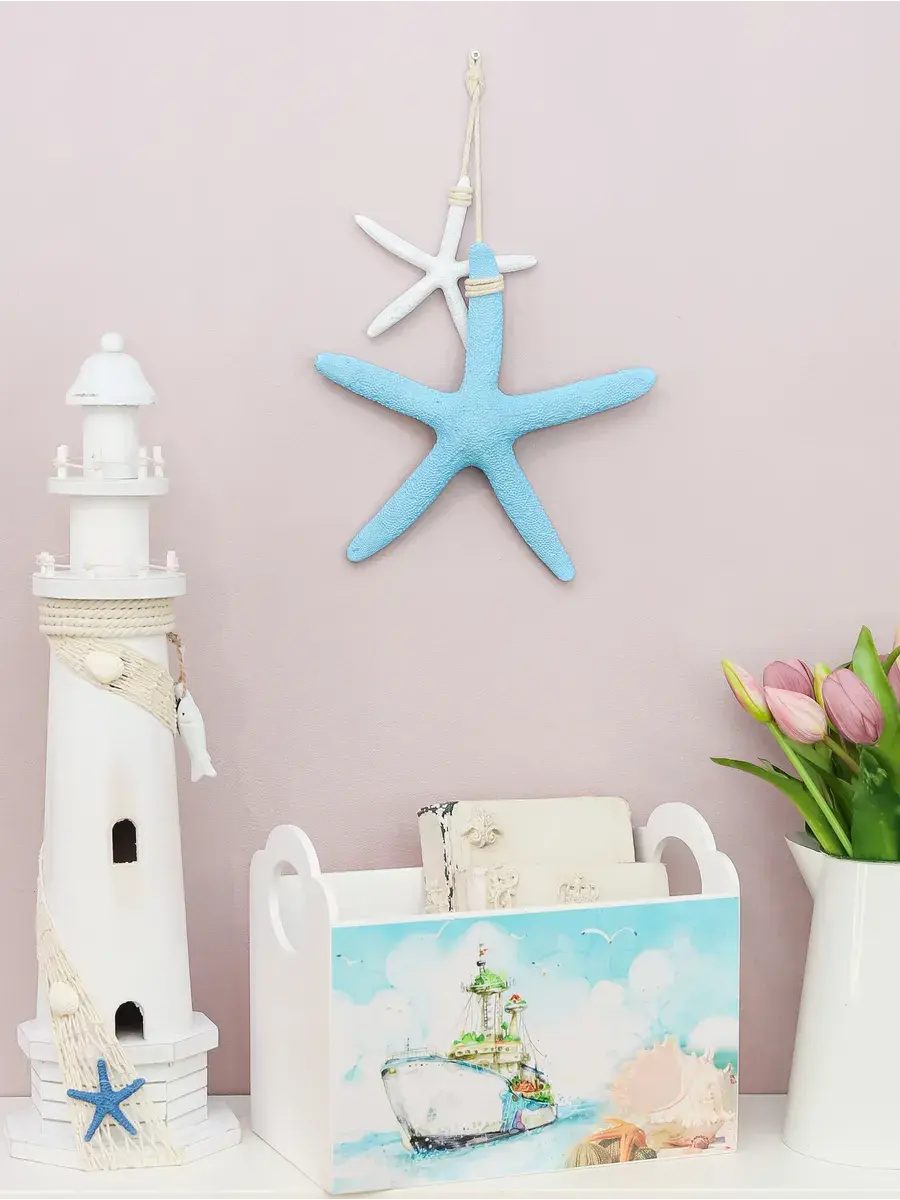 Декор настенный "Морские звезды" от Elenadecor станет очаровательным акцентом в любом интерьере, привнося уют и морскую свежесть. Изготовленные из дерева и украшенные деокативными деталями, эти милые морские звезды создают атмосферу уюта и гармонии. Их можно повесить в спальне, детской комнате или на веранде, где они будут радовать глаз и напоминать о морских приключениях. Крепление на шнурах позволяет легко разместить декор на стене, создавая динамичную композицию. "Морские звезды" от Elenadecor - это не просто украшение, а способ добавить в ваш дом нотку морского стиля и индивидуальности. Звезды небольшого размера украсят уголок с фотографиями из отпуска или зону над рабочим столом.