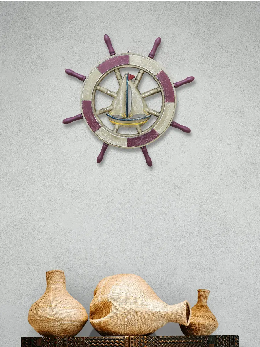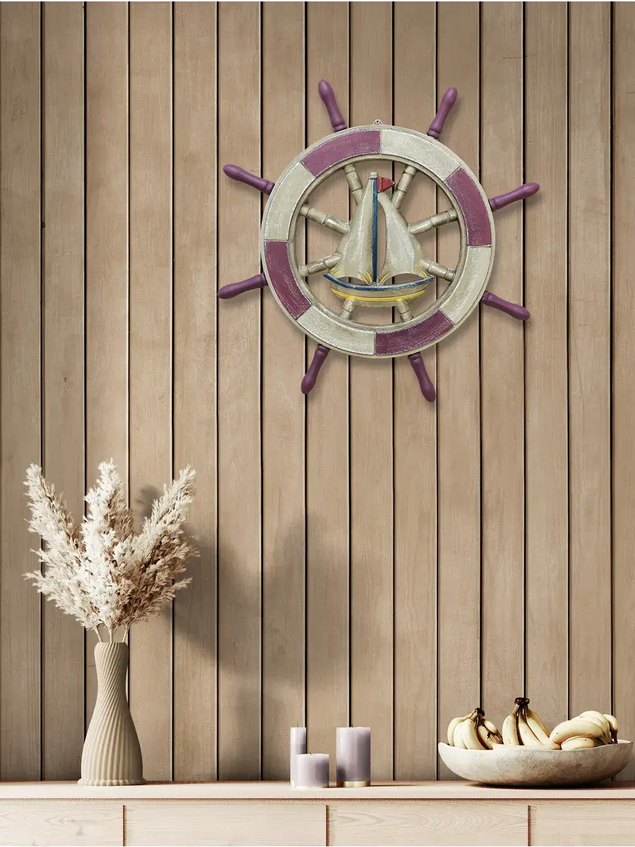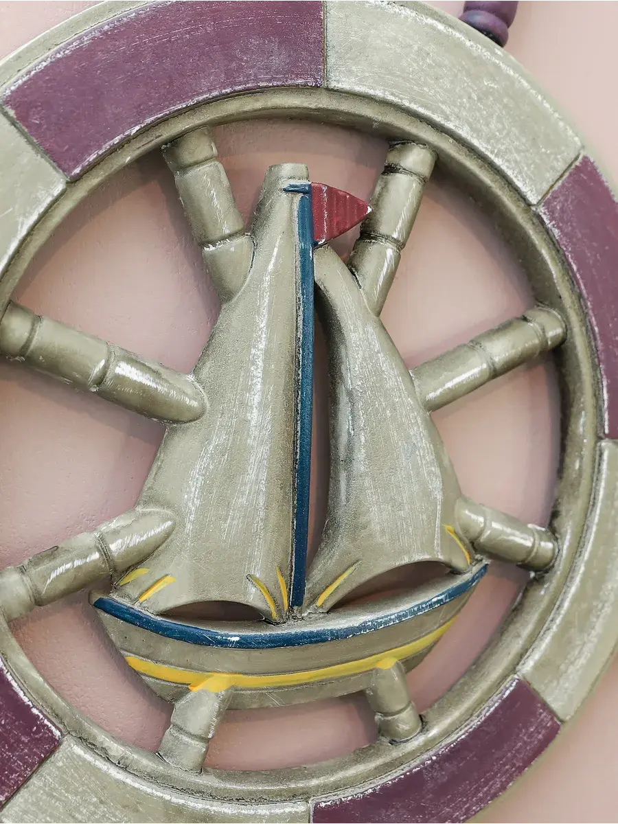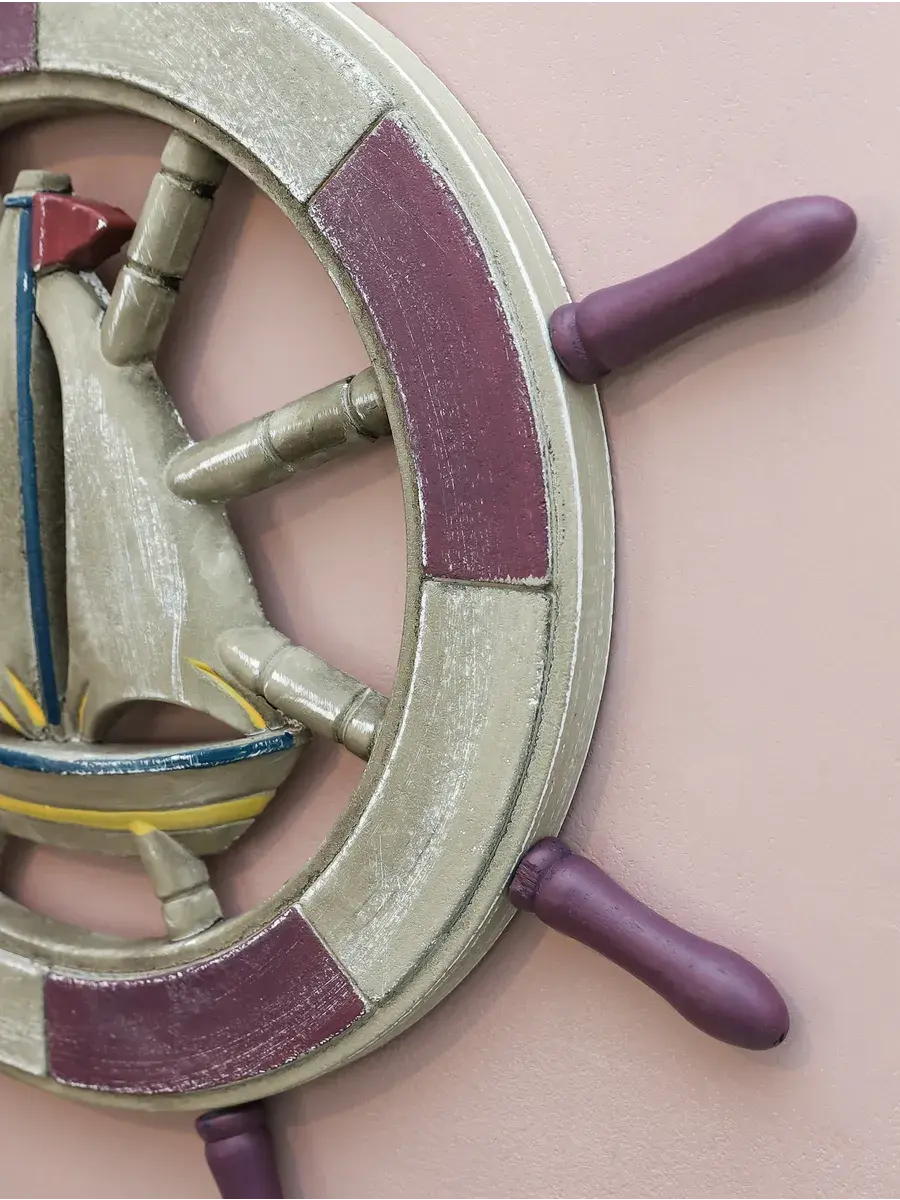 Настенный декор в морской тематике станет прекрасным украшением для детской комнаты или кабинета. Изготовленный вручную из натурального дерева, этот элемент интерьера выполнен в виде штурвала, что добавляет атмосферу моря и приключений. Размеры позволят ему гармонично вписаться как в интерьер детского сада, так и в уютное пространство для фото зоны. Лодка, изображенные на декоре, добавляют веселое настроение и радость в любую комнату. Такой аксессуар не только привлекает внимание, но и создает уникальную атмосферу, способствуя развитию фантазии и воображения у детей. Выбор такого декора позволит легко изменить обстановку и добавить интересные акценты в любой уголок вашего дома.