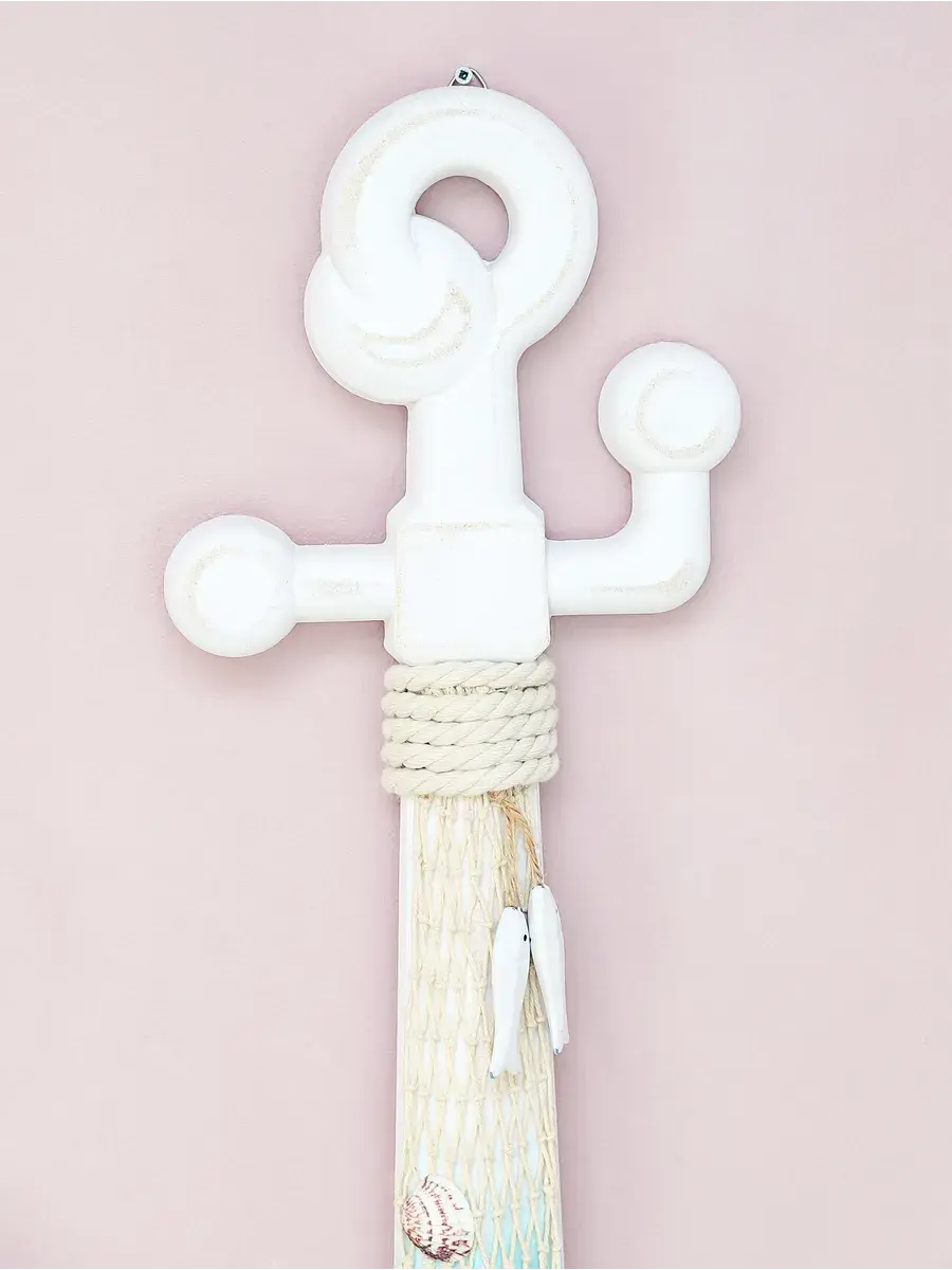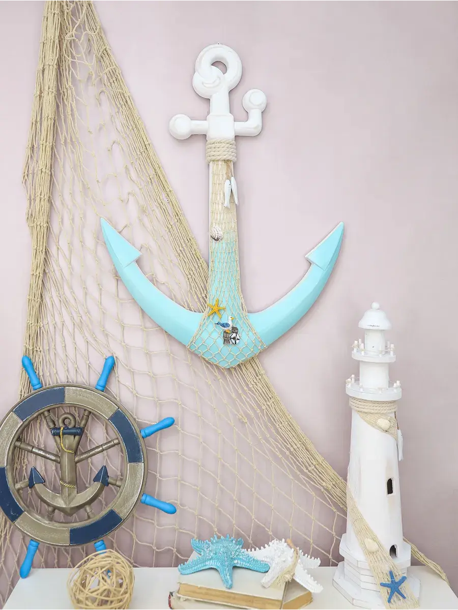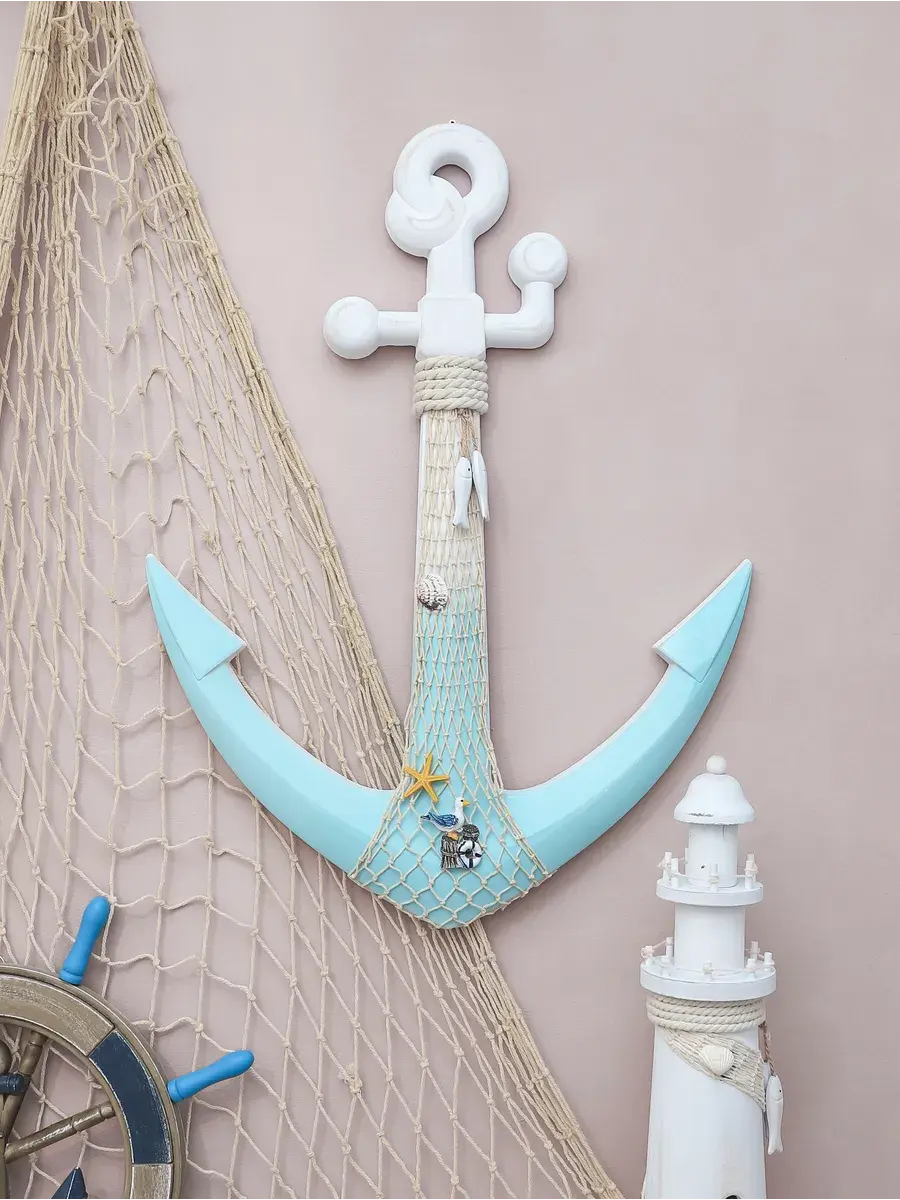 Настенный декор в морской тематике станет прекрасным украшением для детской комнаты или кабинета. Изготовленный вручную из натурального дерева, этот элемент интерьера выполнен в виде якорь, что добавляет атмосферу моря и приключений. Декор украшен сетью, что придает ему оригинальный вид и текстуру. Размеры позволят ему гармонично вписаться как в интерьер детского сада, так и в уютное пространство для фото зоны. Рыбы, изображенные на декоре, добавляют веселое настроение и радость в любую комнату. Такой аксессуар не только привлекает внимание, но и создает уникальную атмосферу, способствуя развитию фантазии и воображения у детей. Выбор такого декора позволит легко изменить обстановку и добавить интересные акценты в любой уголок вашего дома.
