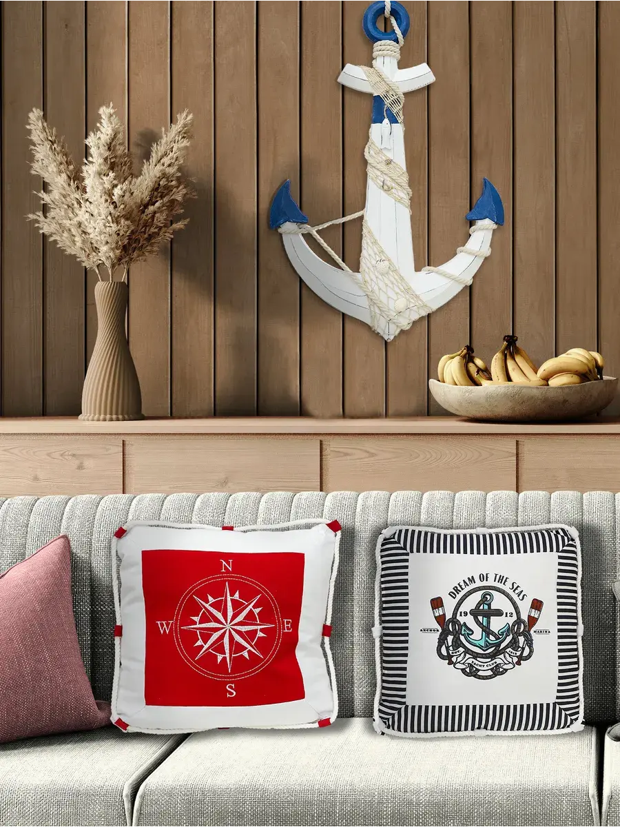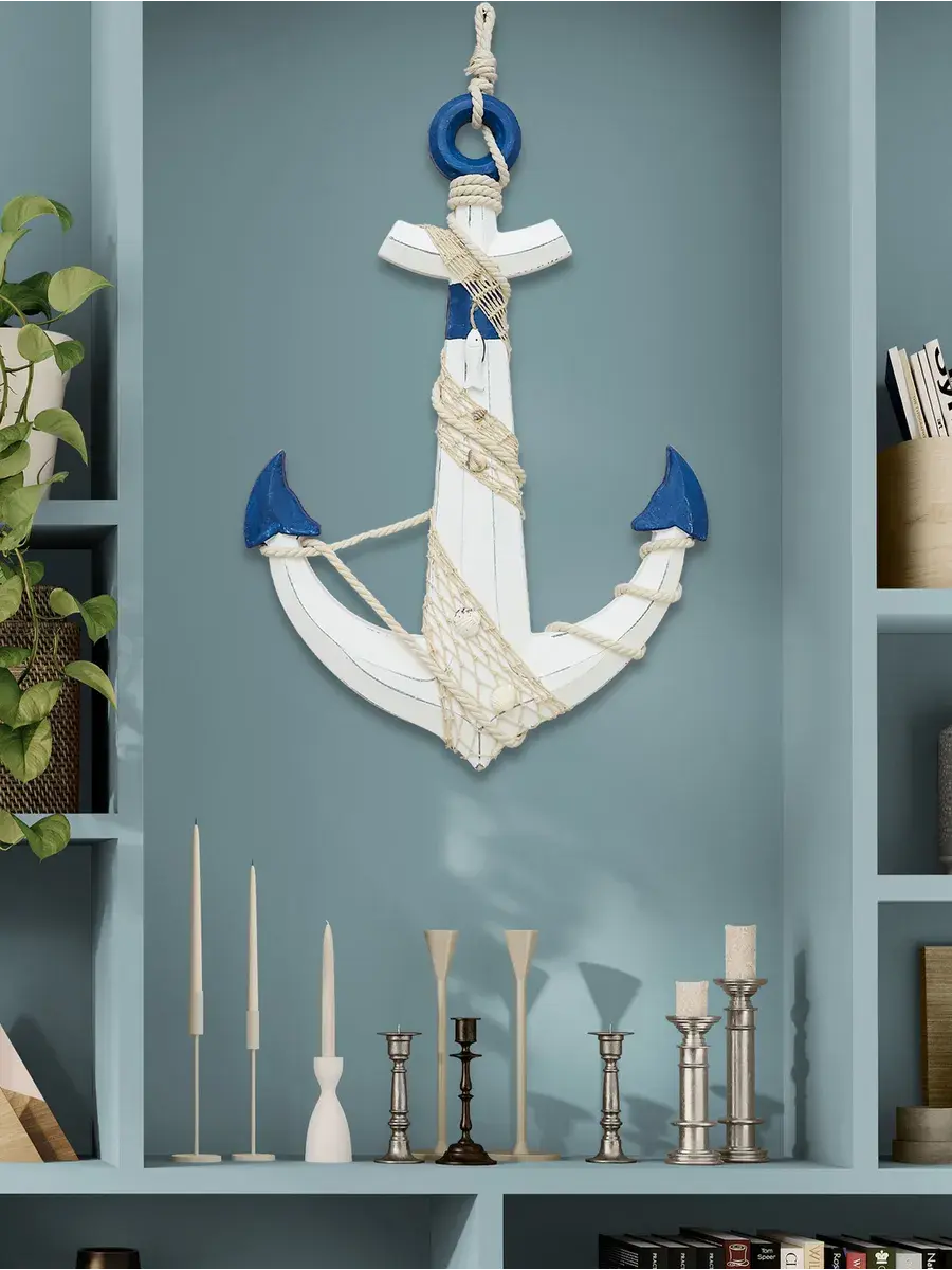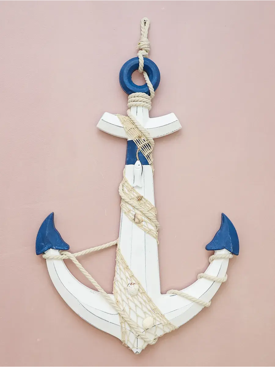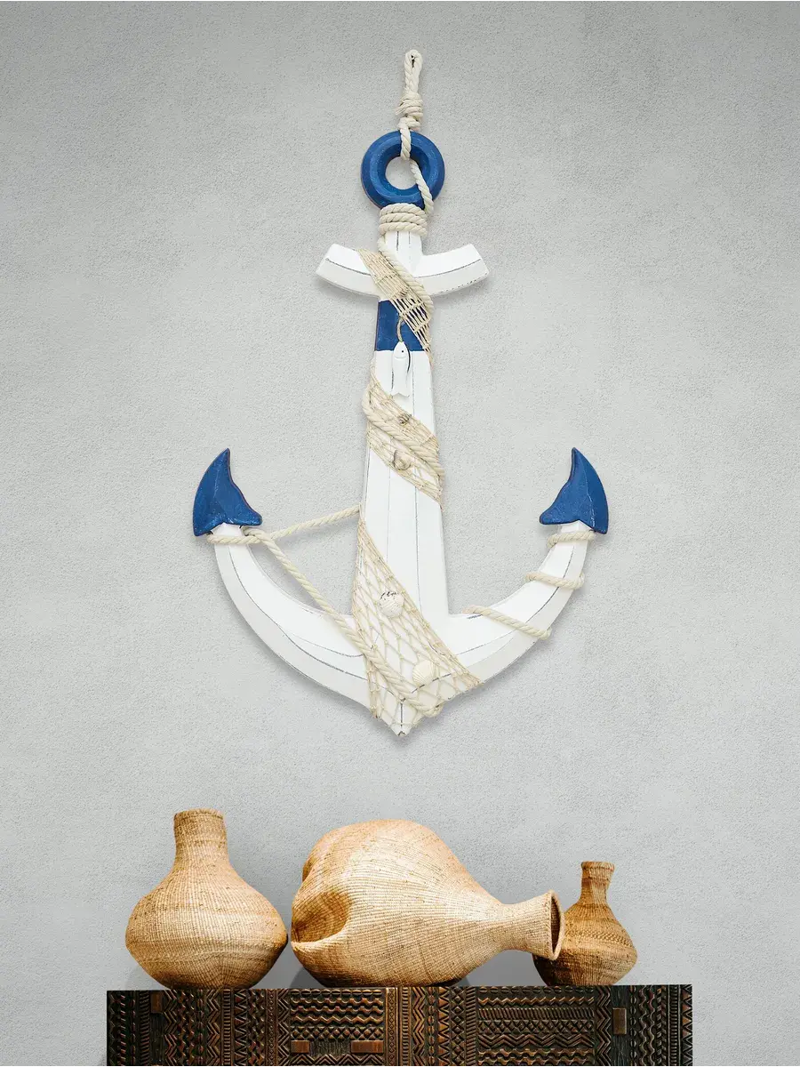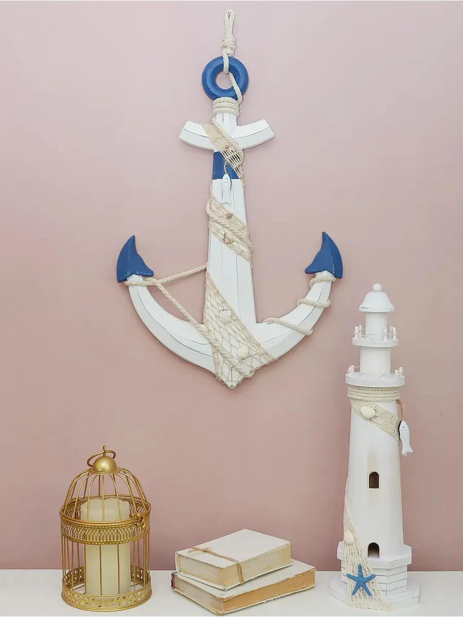 Настенный декор в морской тематике станет прекрасным украшением для детской комнаты или кабинета. Изготовленный вручную из натурального дерева, этот элемент интерьера выполнен в виде якоря, что добавляет атмосферу моря и приключений. Декор украшен канатом, что придает ему оригинальный вид и текстуру. Размеры позволят ему гармонично вписаться как в интерьер детского сада, так и в уютное пространство для фото зоны. Рыбы, изображенные на декоре, добавляют веселое настроение и радость в любую комнату. Такой аксессуар не только привлекает внимание, но и создает уникальную атмосферу, способствуя развитию фантазии и воображения у детей. Выбор такого декора позволит легко изменить обстановку и добавить интересные акценты в любой уголок вашего дома.