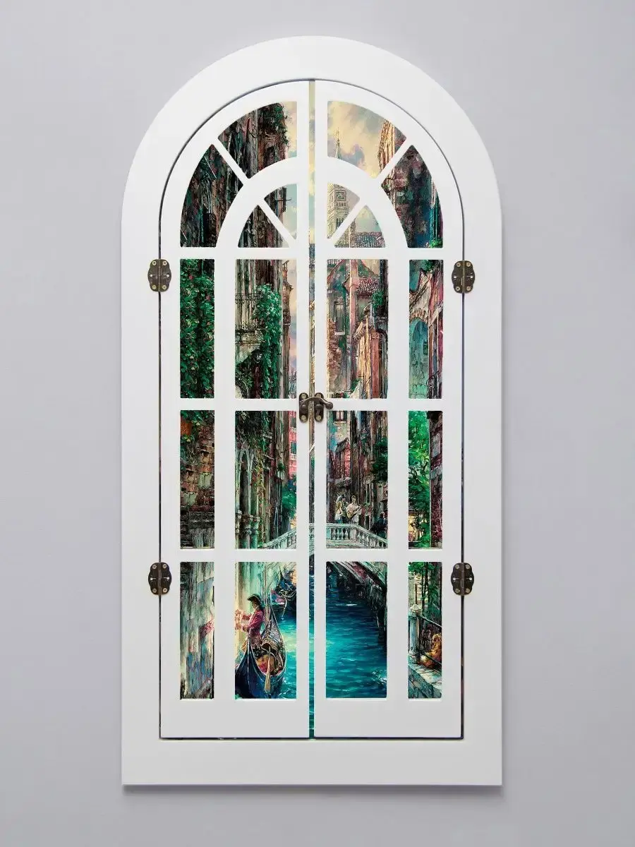 Настенное панно станет идеальным украшение для загородного дома. Рама и ставни изготовлены из мдф 10 мм, покрашены акриловой эмалью на водной основе, цвет белый и молочный (см. в описании цвета). Картина напечатана на бумаге, заламинирована. Размер картины 36х70 см, в развернутом виде 60х70 см. Крепление для стены в комплекте. Изображение менять НЕЛЬЗЯ!