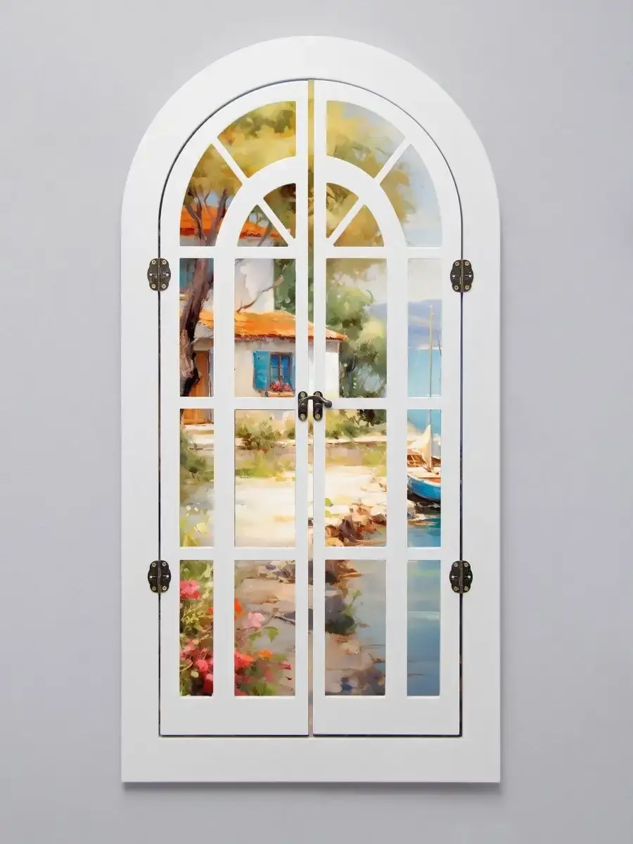 Настенное панно станет идеальным украшение для загородного дома. Рама и ставни изготовлены из мдф 10 мм, покрашены акриловой эмалью на водной основе, цвет белый и молочный (см. в описании цвета). Картина напечатана на бумаге, заламинирована. Размер картины 36х70 см, в развернутом виде 60х70 см. Крепление для стены в комплекте. Изображение менять НЕЛЬЗЯ!