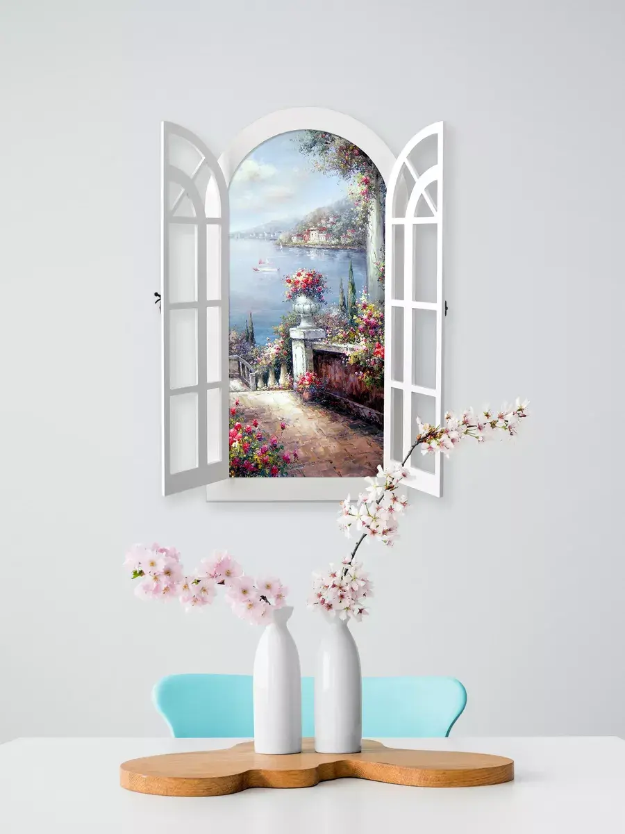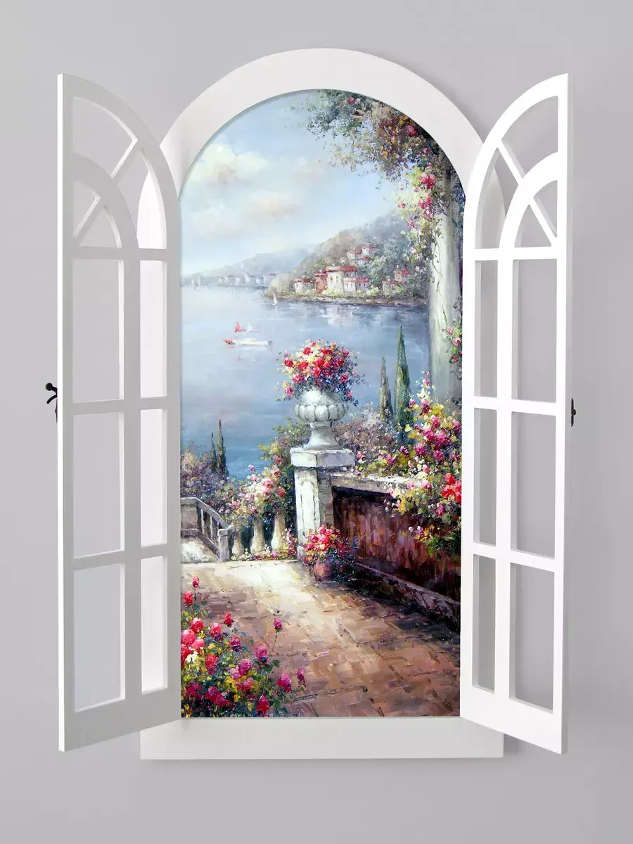 Настенная картина «Вид из окна» станет замечательным элементом для интерьера, добавляя уют и атмосферу в любое помещение. Этот пейзаж изображает окно со ставнями, через которое открывается живописный вид на природу. Картина идеально впишется в гостиную, спальню или рабочий кабинет, создавая ощущение спокойствия и гармонии.