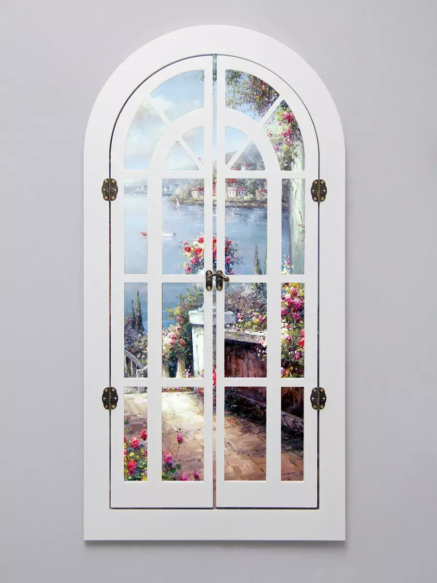 Настенное панно станет идеальным украшение для загородного дома. Рама и ставни изготовлены из мдф 10 мм, покрашены акриловой эмалью на водной основе, цвет белый и молочный (см. в описании цвета). Картина напечатана на бумаге, заламинирована. Размер картины 36х70 см, в развернутом виде 60х70 см. Крепление для стены в комплекте. Изображение менять НЕЛЬЗЯ!