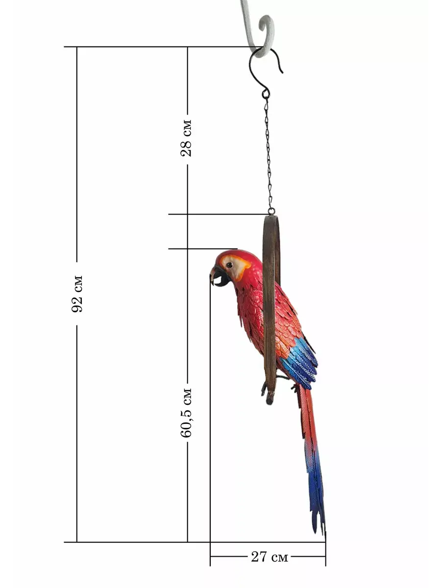 металлический попугай на подвесе
