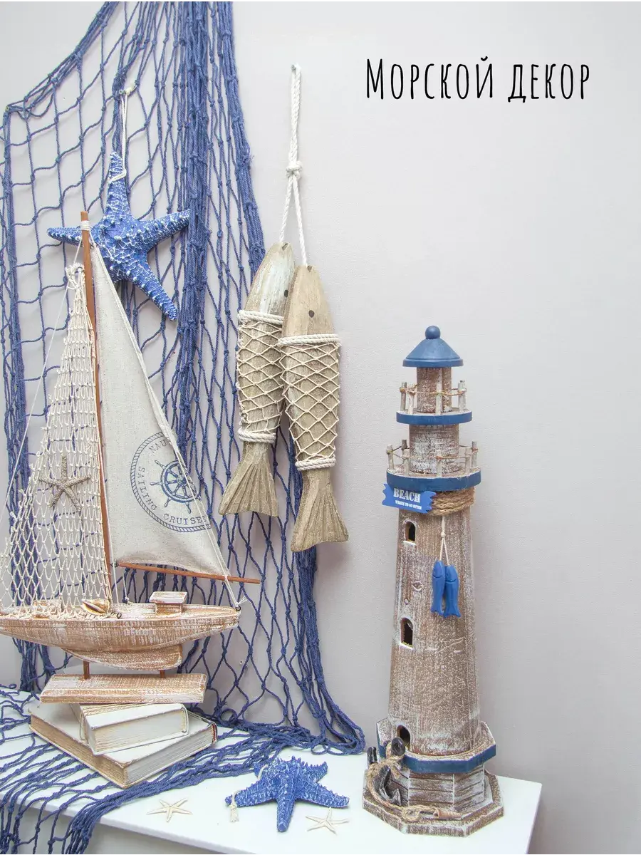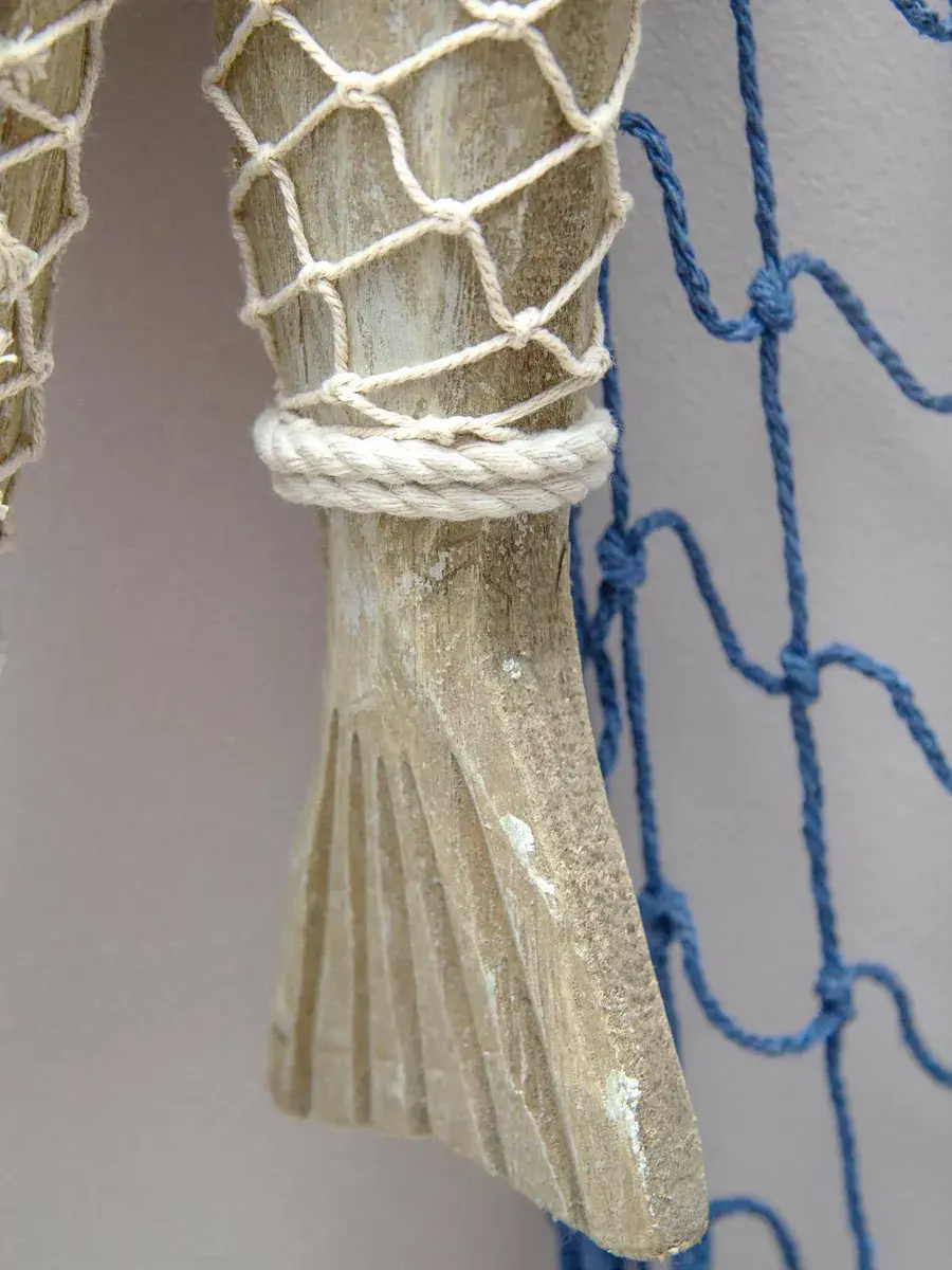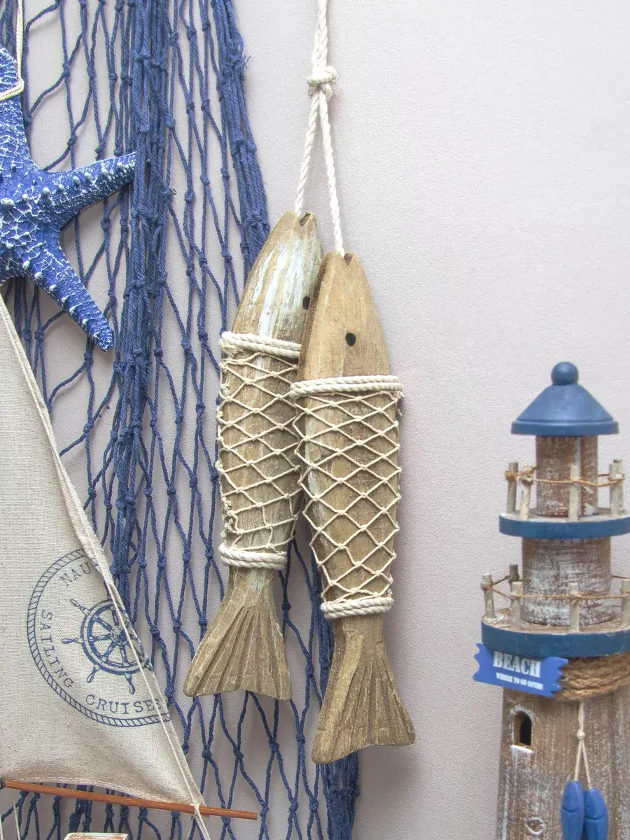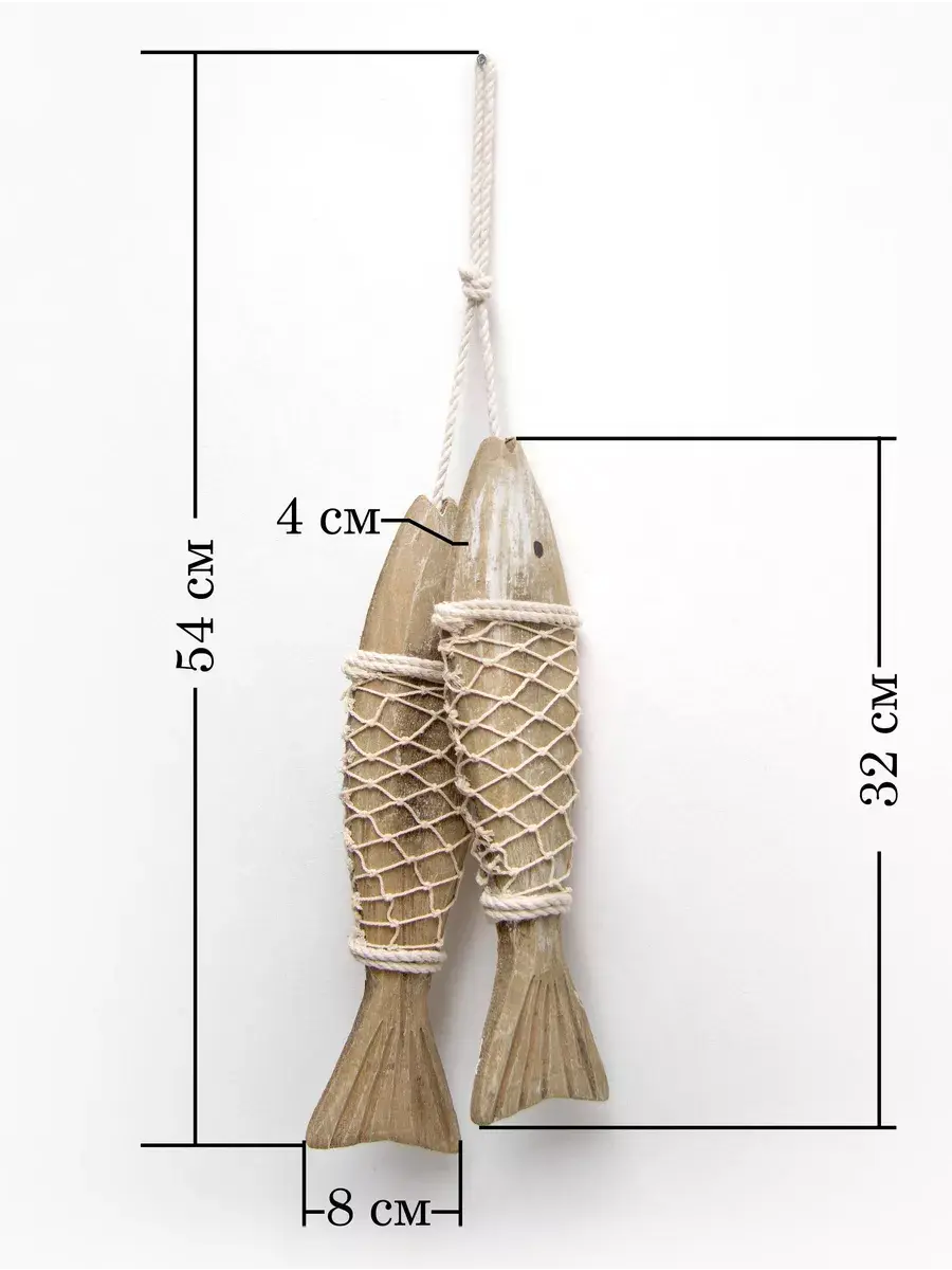 Настенный декор в морской тематике станет прекрасным украшением для детской комнаты или кабинета. Изготовленный вручную из натурального дерева, этот элемент интерьера выполнен в виде рыб, что добавляет атмосферу моря и приключений. Декор украшен сетью, что придает ему оригинальный вид и текстуру. Размеры позволят ему гармонично вписаться как в интерьер детского сада, так и в уютное пространство для фото зоны. Рыбы, изображенные на декоре, добавляют веселое настроение и радость в любую комнату. Такой аксессуар не только привлекает внимание, но и создает уникальную атмосферу, способствуя развитию фантазии и воображения у детей. Выбор такого декора позволит легко изменить обстановку и добавить интересные акценты в любой уголок вашего дома.