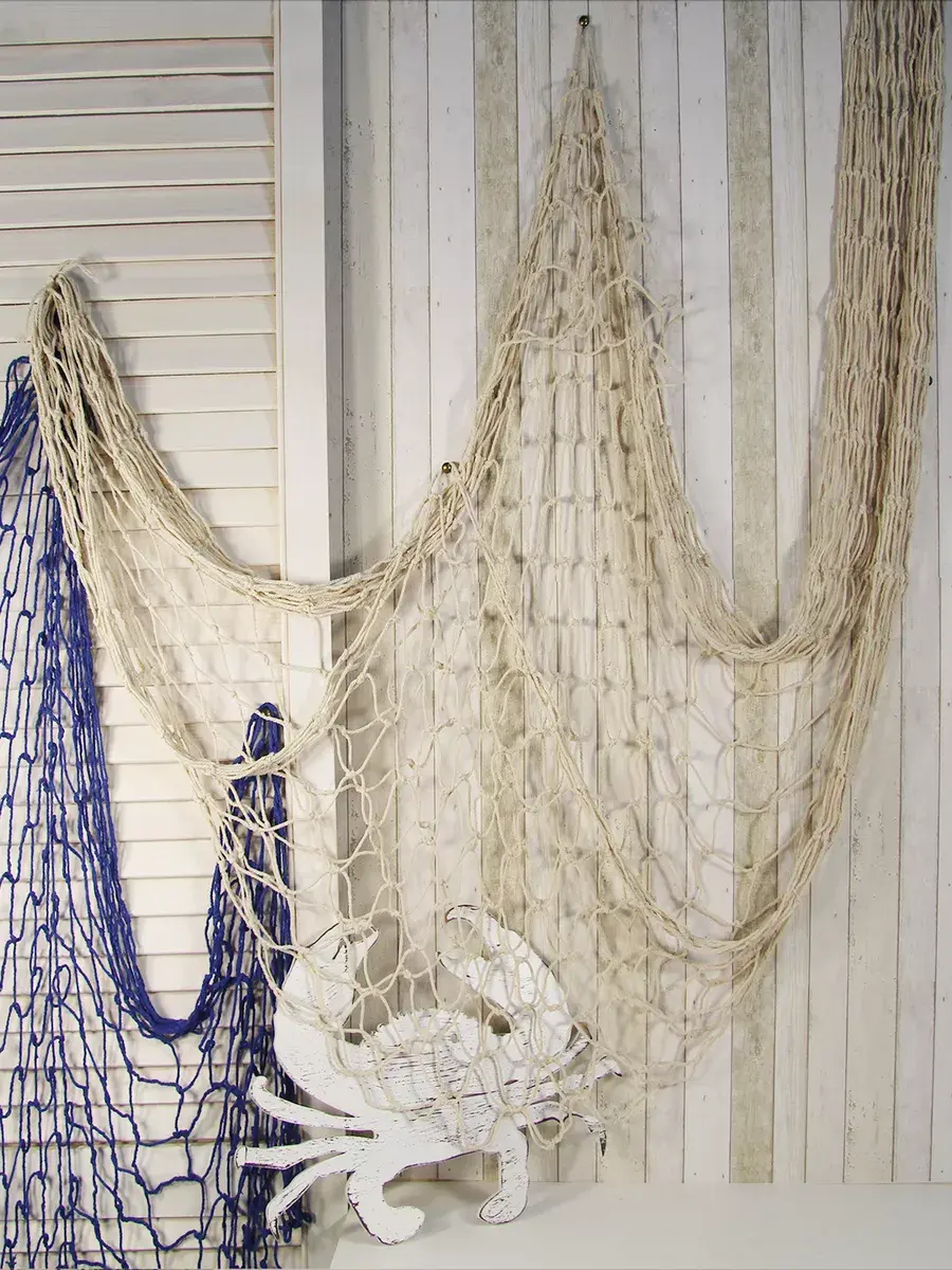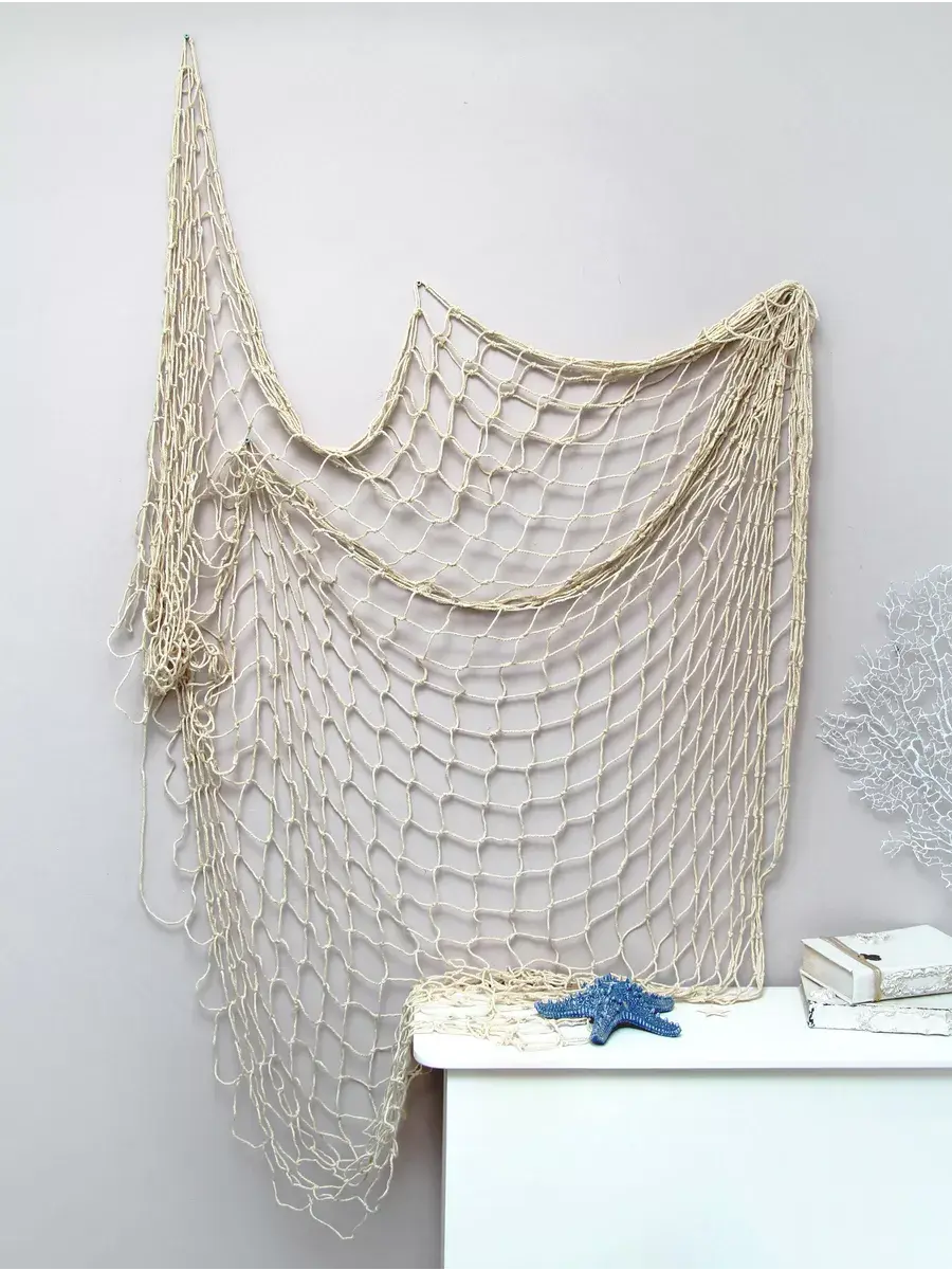 Настенный декор в морской тематике станет прекрасным украшением для детской комнаты или кабинета. Изготовленный вручную, этот элемент интерьера выполнен в виде сети, что добавляет атмосферу моря и приключений. Размеры позволят ему гармонично вписаться как в интерьер детского сада, так и в уютное пространство для фото зоны. Сеть добавляет веселое настроение и радость в любую комнату. Такой аксессуар не только привлекает внимание, но и создает уникальную атмосферу, способствуя развитию фантазии и воображения у детей. Выбор такого декора позволит легко изменить обстановку и добавить интересные акценты в любой уголок вашего дома. Самая главная комната в доме - детская! Родители стараются сделать детскую комнату максимально уютной, теплой и позитивной. Сеть декоративная изготовлена из натурального материала. Можно дополнить интерьер ванной комнаты в морском стиле. Крепление для стены в комплекте. Множество композиций можно создать с элементами декора в морском стиле от бренда Elenadecor.