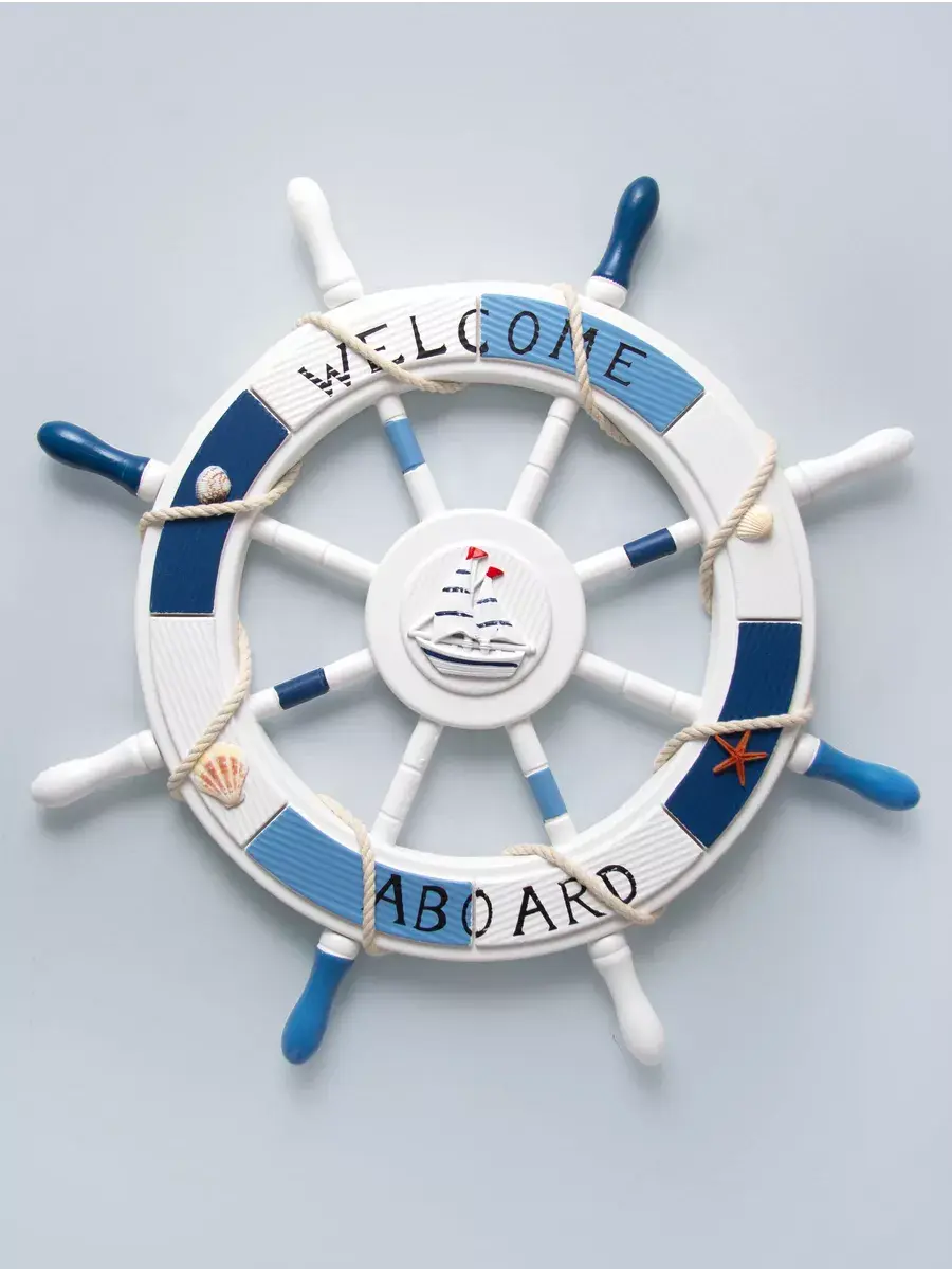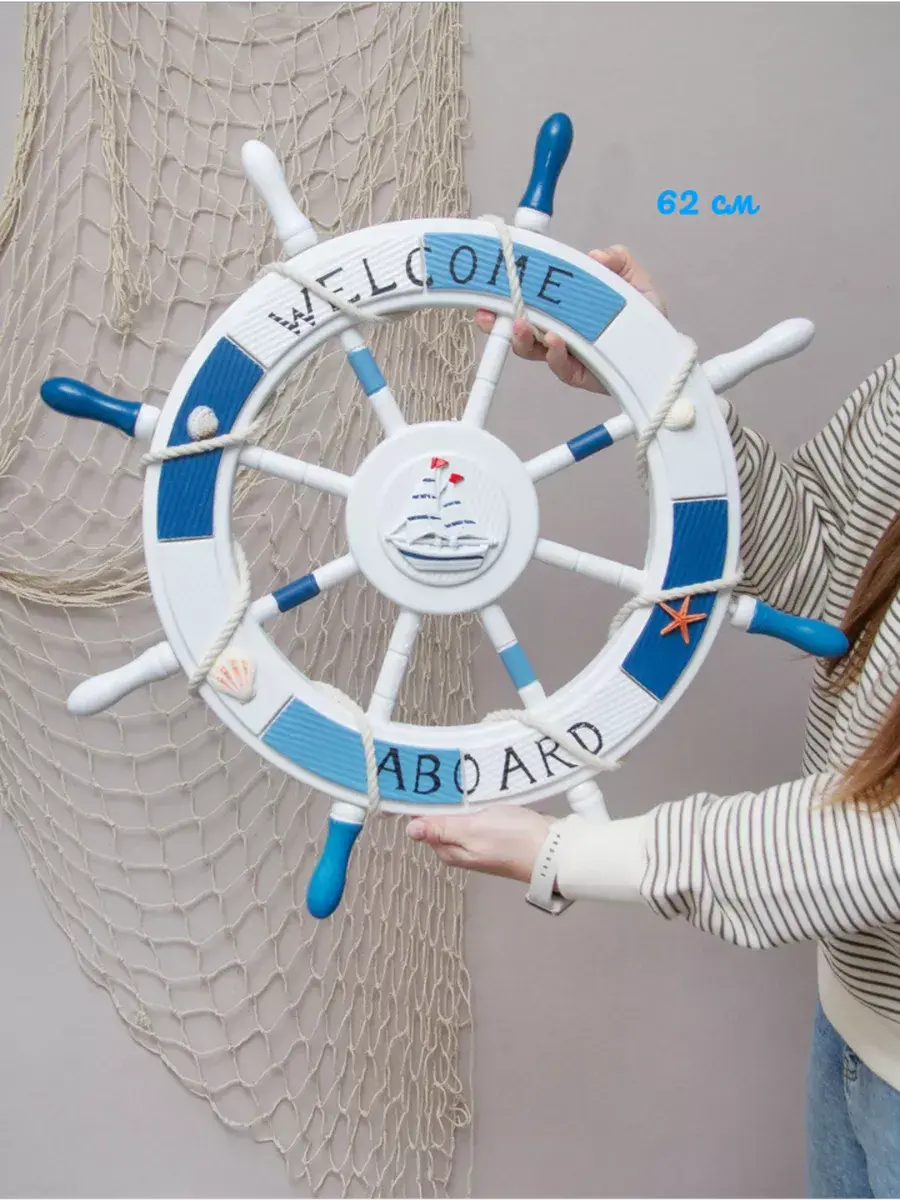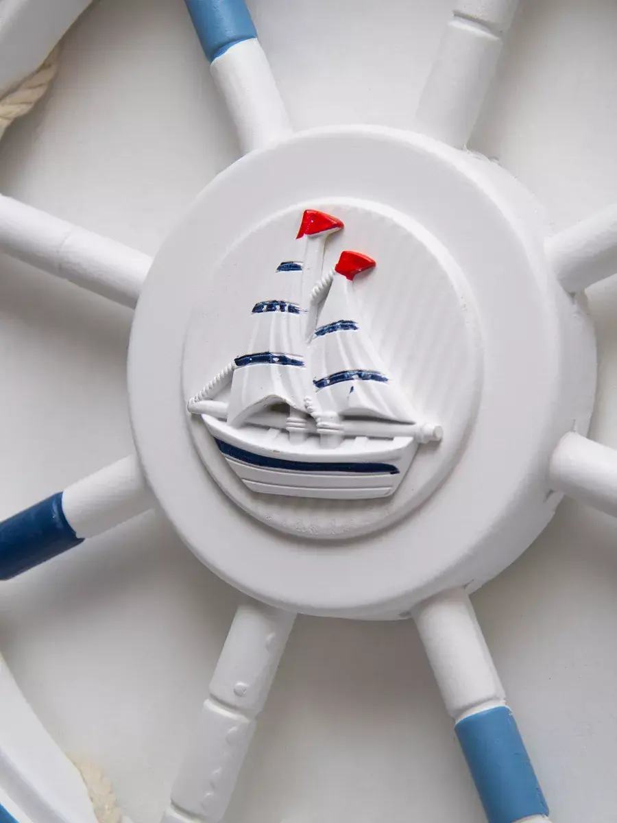 Настенный декор в морской тематике станет прекрасным украшением для детской комнаты или кабинета. Изготовленный вручную из натурального дерева, этот элемент интерьера выполнен в виде штурвала, что добавляет атмосферу моря и приключений. Декор украшен канатом, что придает ему оригинальный вид и текстуру. Размеры позволят ему гармонично вписаться как в интерьер детского сада, так и в уютное пространство для фото зоны. Парусник, изображенные на декоре, добавляют веселое настроение и радость в любую комнату. Такой аксессуар не только привлекает внимание, но и создает уникальную атмосферу, способствуя развитию фантазии и воображения у детей. Выбор такого декора позволит легко изменить обстановку и добавить интересные акценты в любой уголок вашего дома. Самая главная комната в доме - детская! Родители стараются сделать детскую комнату максимально уютной, теплой и позитивной. Штурвал изготовлен из натурального дерева. Диаметр штурвала 62,5 см. Можно дополнить интерьер ванной комнаты в морском стиле. Крепление для стены в комплекте. Множество композиций можно создать с элементами декора в морском стиле от бренда Elenadecor.