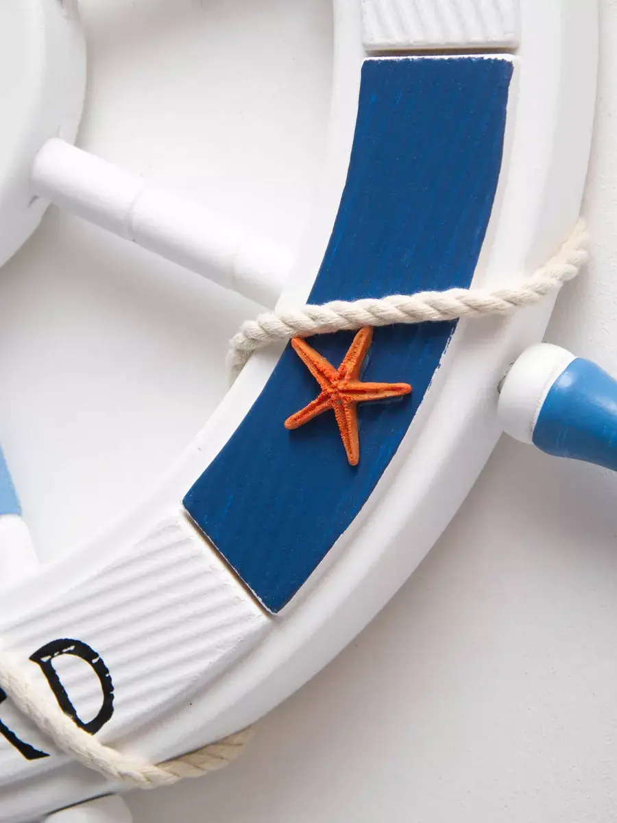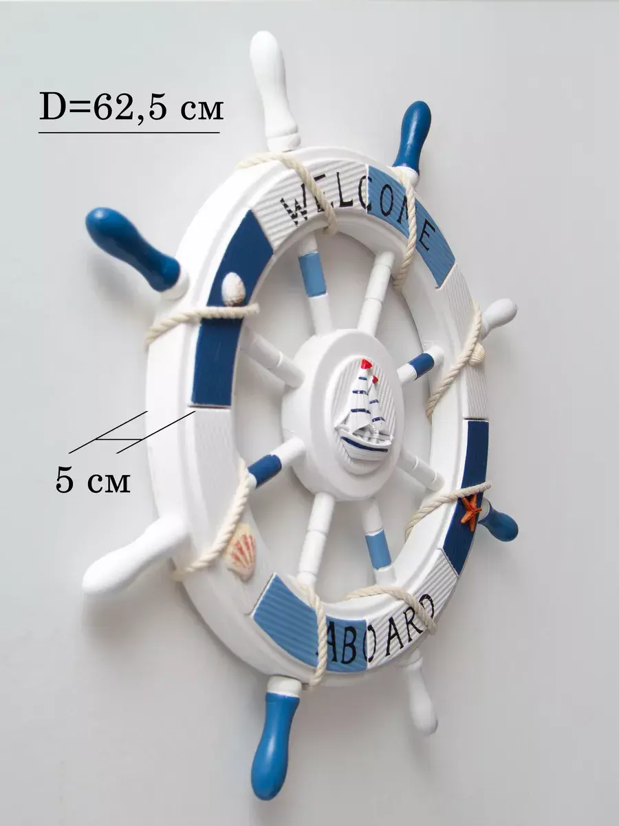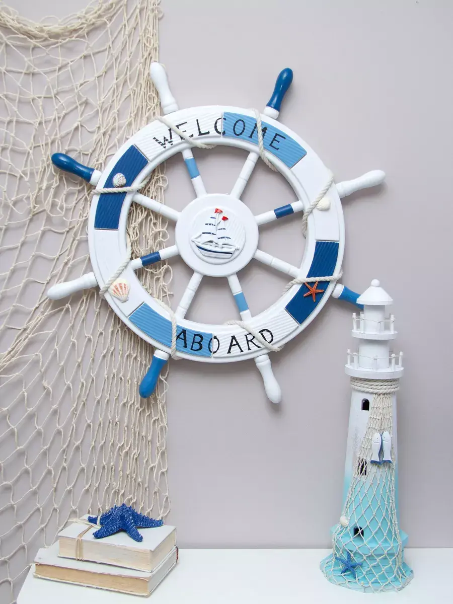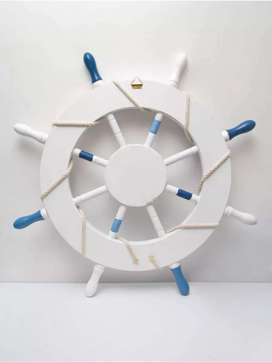 Настенный декор в морской тематике станет прекрасным украшением для детской комнаты или кабинета. Изготовленный вручную из натурального дерева, этот элемент интерьера выполнен в виде штурвала, что добавляет атмосферу моря и приключений. Декор украшен канатом, что придает ему оригинальный вид и текстуру. Размеры позволят ему гармонично вписаться как в интерьер детского сада, так и в уютное пространство для фото зоны. Парусник, изображенные на декоре, добавляют веселое настроение и радость в любую комнату. Такой аксессуар не только привлекает внимание, но и создает уникальную атмосферу, способствуя развитию фантазии и воображения у детей. Выбор такого декора позволит легко изменить обстановку и добавить интересные акценты в любой уголок вашего дома. Самая главная комната в доме - детская! Родители стараются сделать детскую комнату максимально уютной, теплой и позитивной. Штурвал изготовлен из натурального дерева. Диаметр штурвала 62,5 см. Можно дополнить интерьер ванной комнаты в морском стиле. Крепление для стены в комплекте. Множество композиций можно создать с элементами декора в морском стиле от бренда Elenadecor.