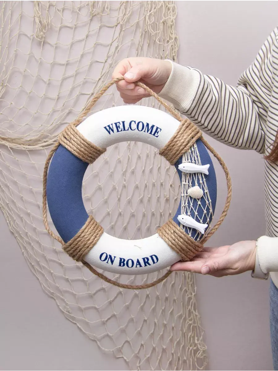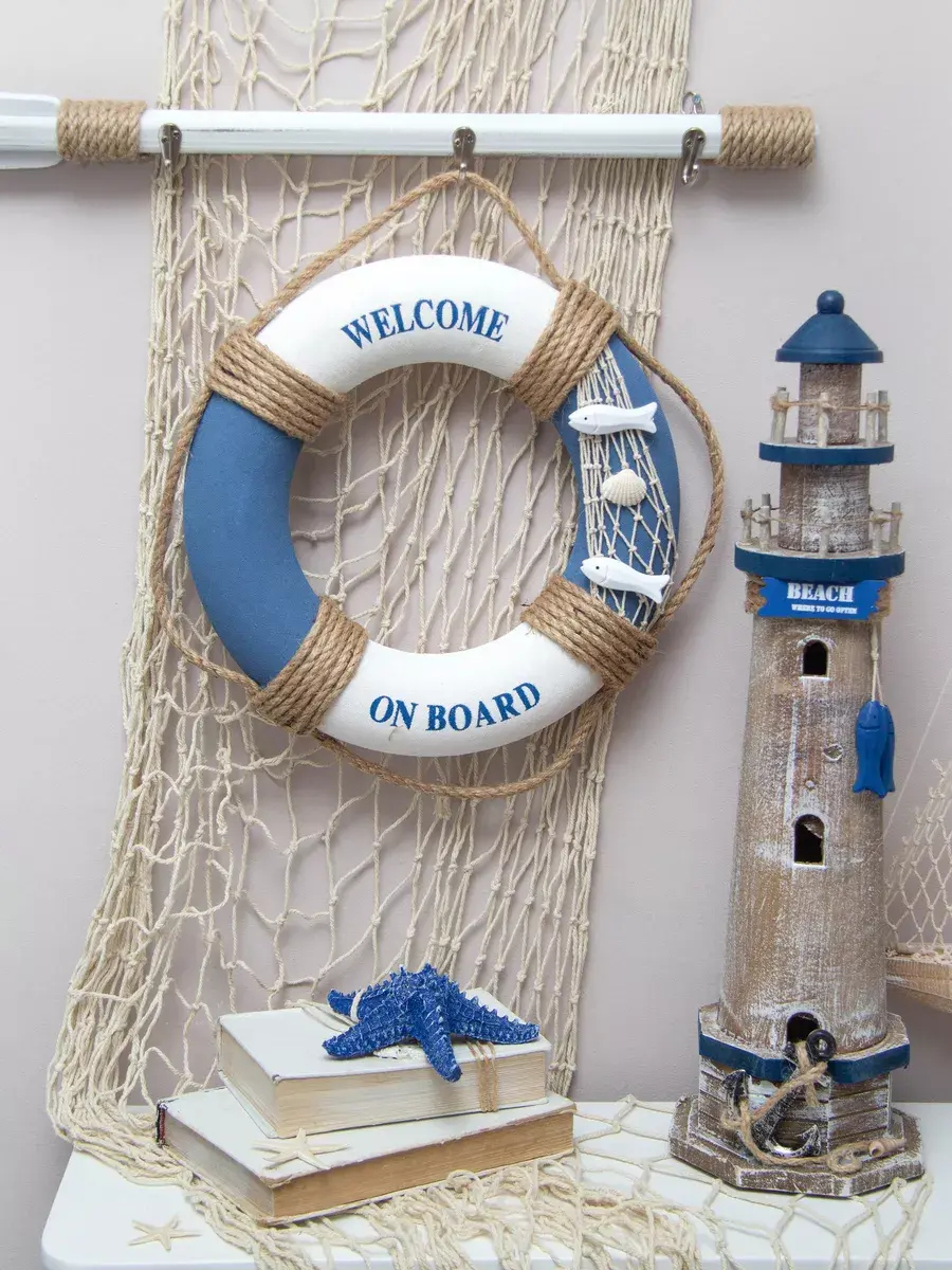 Настенный декор в морской тематике станет прекрасным украшением для детской комнаты или кабинета. Изготовленный вручную из натурального дерева, этот элемент интерьера выполнен в виде спасательного круга, что добавляет атмосферу моря и приключений. Декор украшен канатом, что придает ему оригинальный вид и текстуру. Размеры позволят ему гармонично вписаться как в интерьер детского сада, так и в уютное пространство для фото зоны. Рыбы, изображенные на декоре, добавляют веселое настроение и радость в любую комнату. Такой аксессуар не только привлекает внимание, но и создает уникальную атмосферу, способствуя развитию фантазии и воображения у детей. Выбор такого декора позволит легко изменить обстановку и добавить интересные акценты в любой уголок вашего дома.