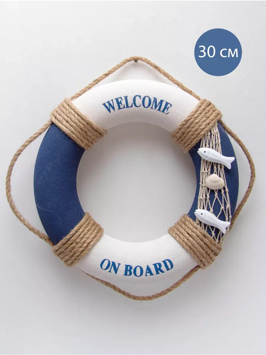 Настенный декор в морской тематике станет прекрасным украшением для детской комнаты или кабинета. Изготовленный вручную из натурального дерева, этот элемент интерьера выполнен в виде спасательного круга, что добавляет атмосферу моря и приключений. Декор украшен канатом, что придает ему оригинальный вид и текстуру. Размеры позволят ему гармонично вписаться как в интерьер детского сада, так и в уютное пространство для фото зоны. Рыбы, изображенные на декоре, добавляют веселое настроение и радость в любую комнату. Такой аксессуар не только привлекает внимание, но и создает уникальную атмосферу, способствуя развитию фантазии и воображения у детей. Выбор такого декора позволит легко изменить обстановку и добавить интересные акценты в любой уголок вашего дома.