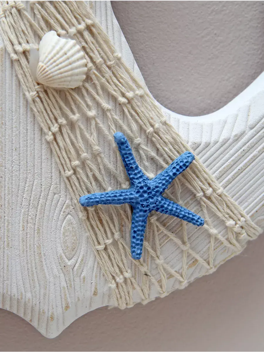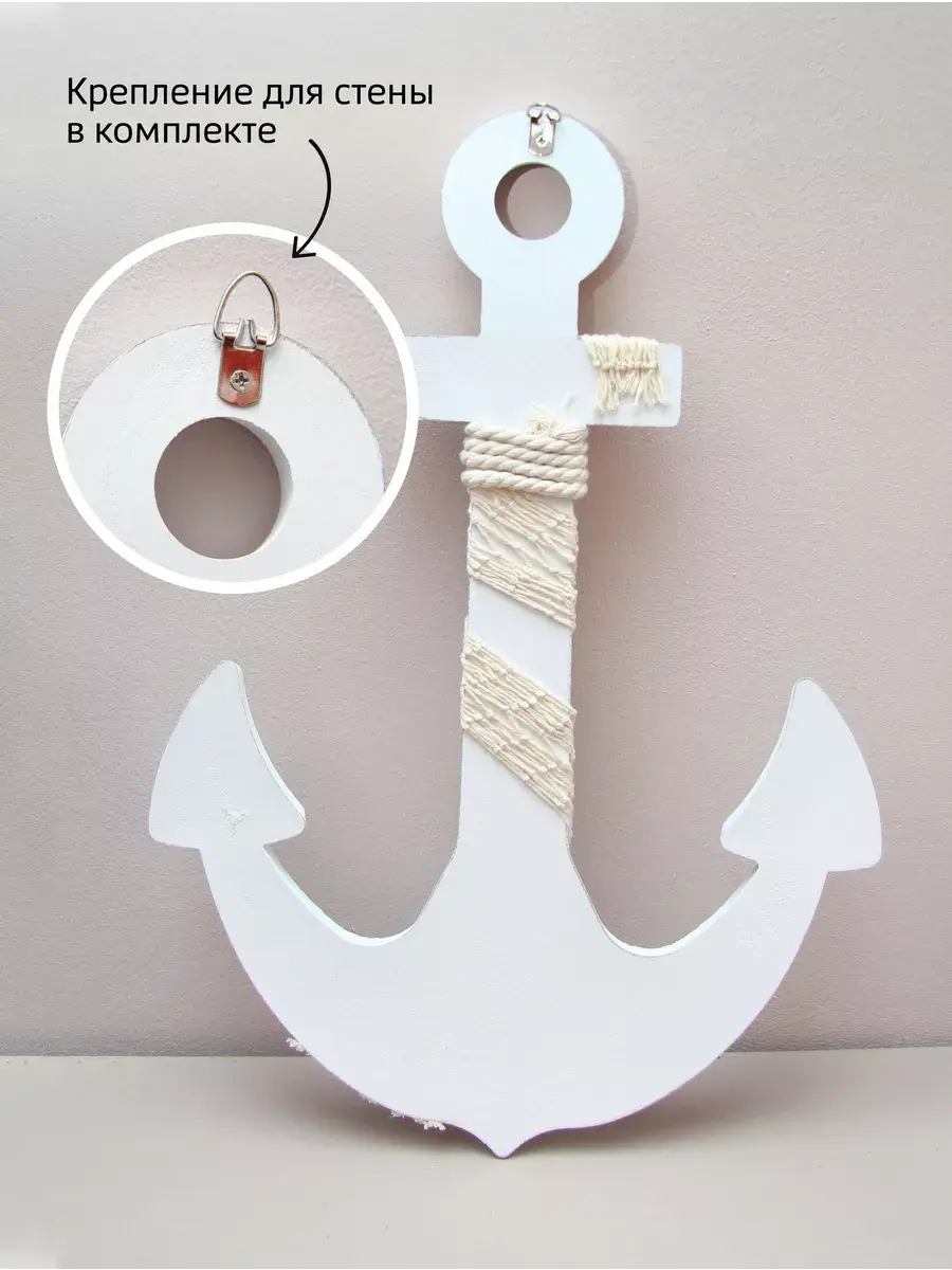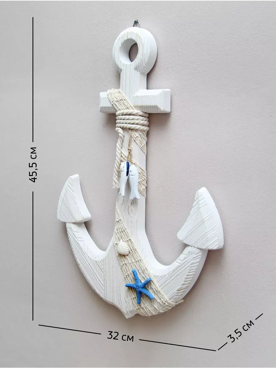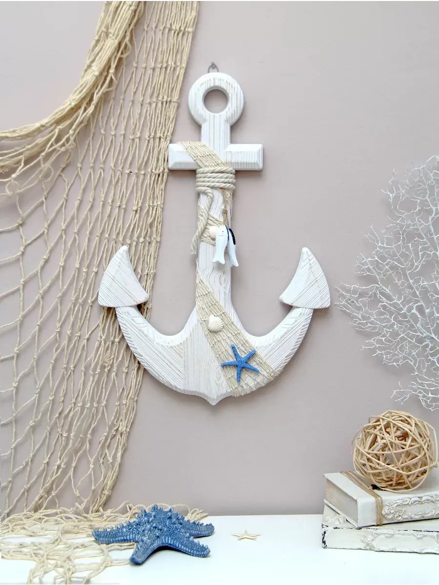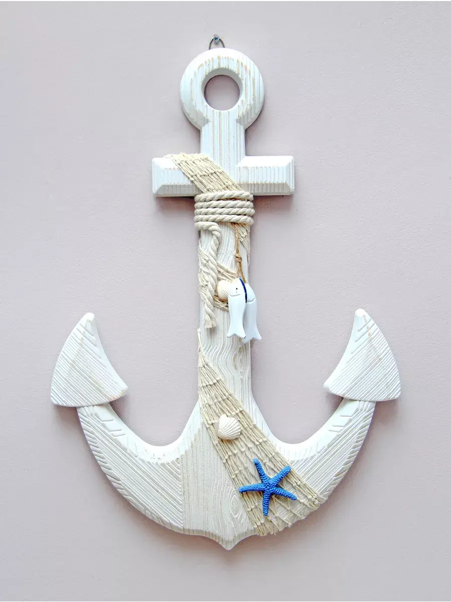 Настенный декор в морской тематике станет прекрасным украшением для детской комнаты или кабинета. Изготовленный вручную из натурального дерева, этот элемент интерьера выполнен в виде якоря, что добавляет атмосферу моря и приключений. Декор украшен канатом, что придает ему оригинальный вид и текстуру. Размеры позволят ему гармонично вписаться как в интерьер детского сада, так и в уютное пространство для фото зоны. Панно добавляет веселое настроение и радость в любую комнату. Такой аксессуар не только привлекает внимание, но и создает уникальную атмосферу, способствуя развитию фантазии и воображения у детей. Выбор такого декора позволит легко изменить обстановку и добавить интересные акценты в любой уголок вашего дома. Самая главная комната в доме - детская! Родители стараются сделать детскую комнату максимально уютной, теплой и позитивной. Якорь изготовлен из натурального дерева. Можно дополнить интерьер ванной комнаты в морском стиле. Крепление для стены в комплекте. Множество композиций можно создать с элементами декора в морском стиле от бренда Elenadecor.
