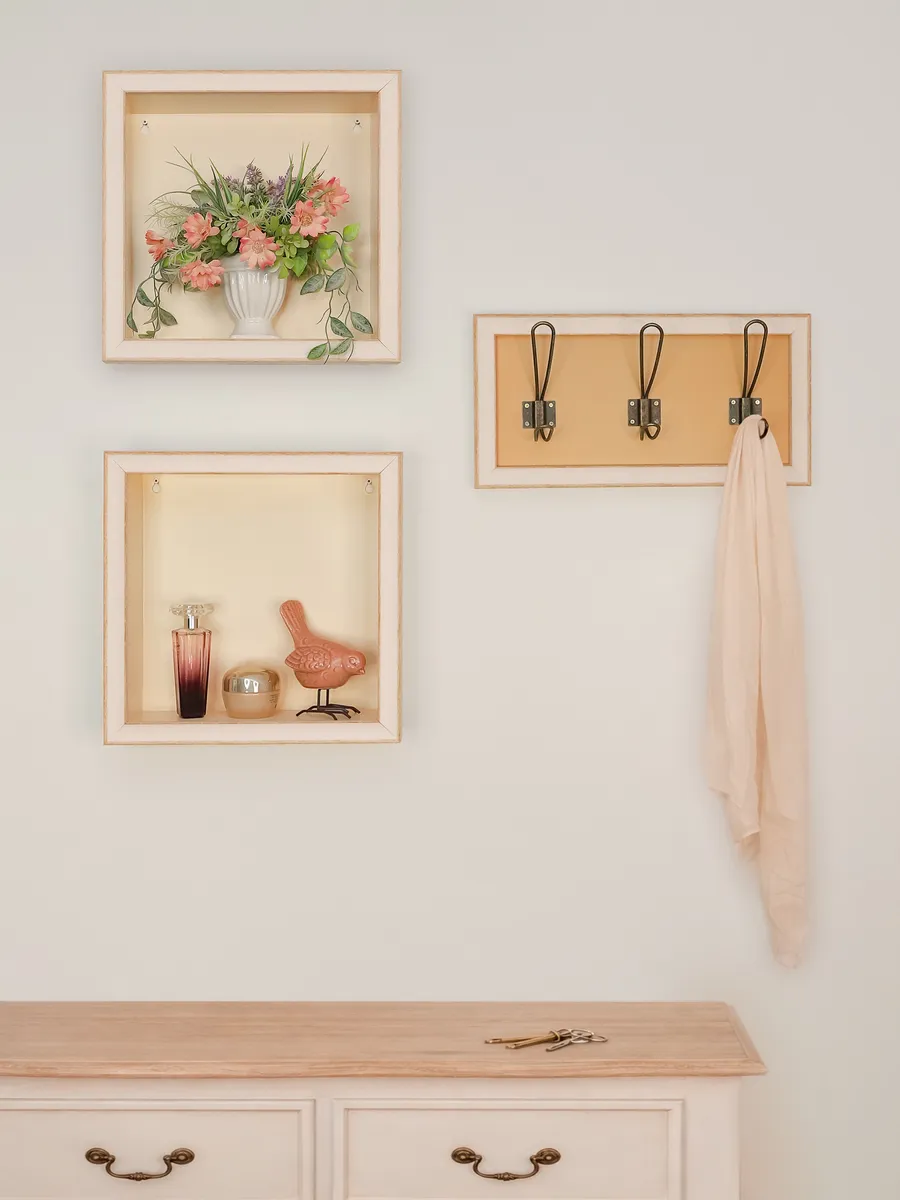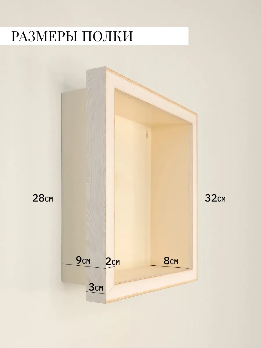 Небольшая декоративная полка-ящик в багетной раме станет стильным и практичным дополнением к любому интерьеру. Ее классический дизайн с теплыми оттенками гармонично впишется в гостиную, детскую или кухню, привнося уют и шарм. Небольшая квадратная полка прекрасно подойдет для размещения миниатюрных предметов декора, коллекции фигурок, книг или фоторамок. Открытый фасад позволяет демонстрировать любимые вещи, а прочная конструкция выдерживает нагрузку до 2 кг. Полка поставляется в сборе, что значительно упрощает ее установку. Крепление к стене осуществляется с помощью дюбель-гвоздей, что обеспечивает надежность и устойчивость.