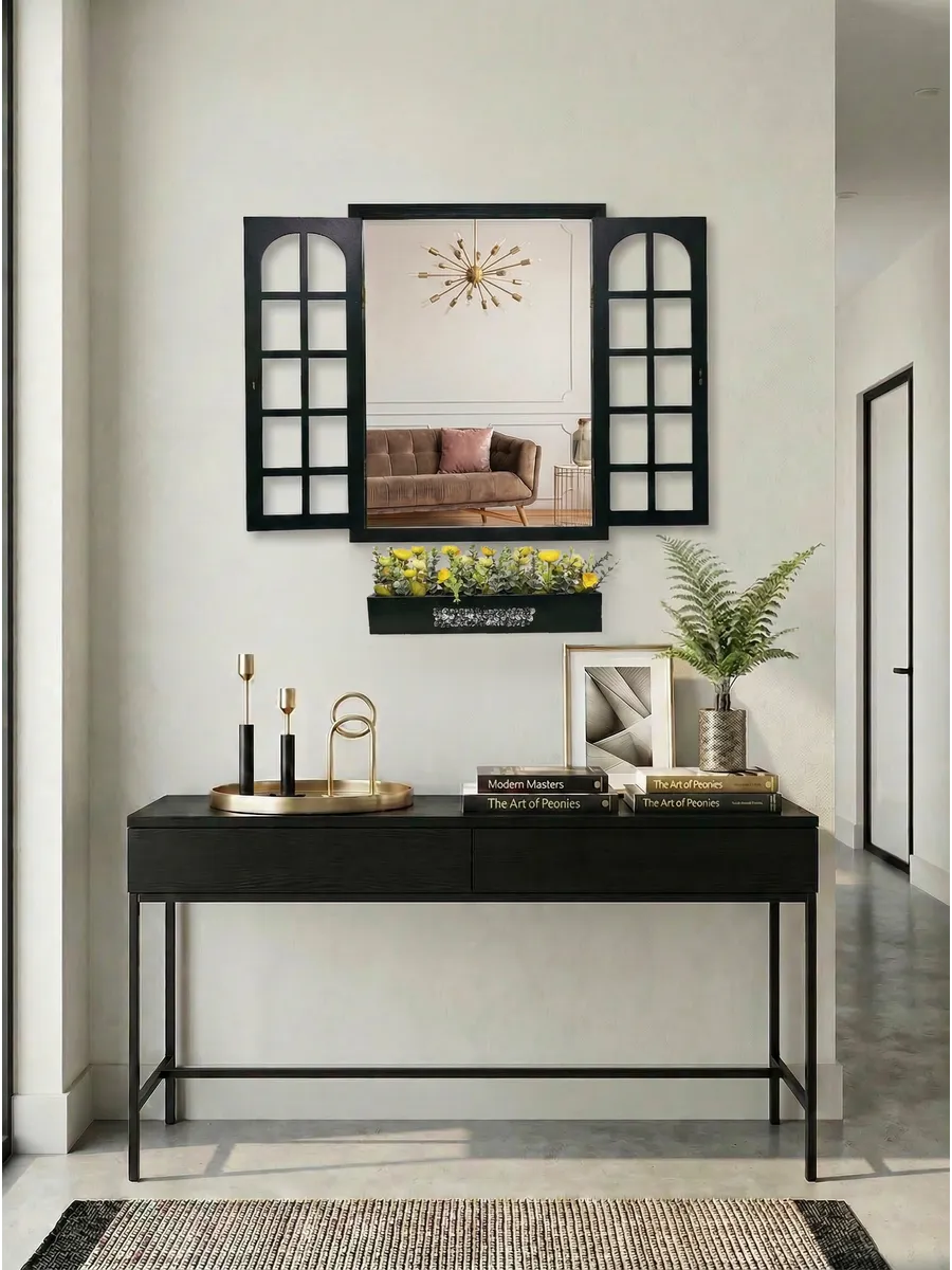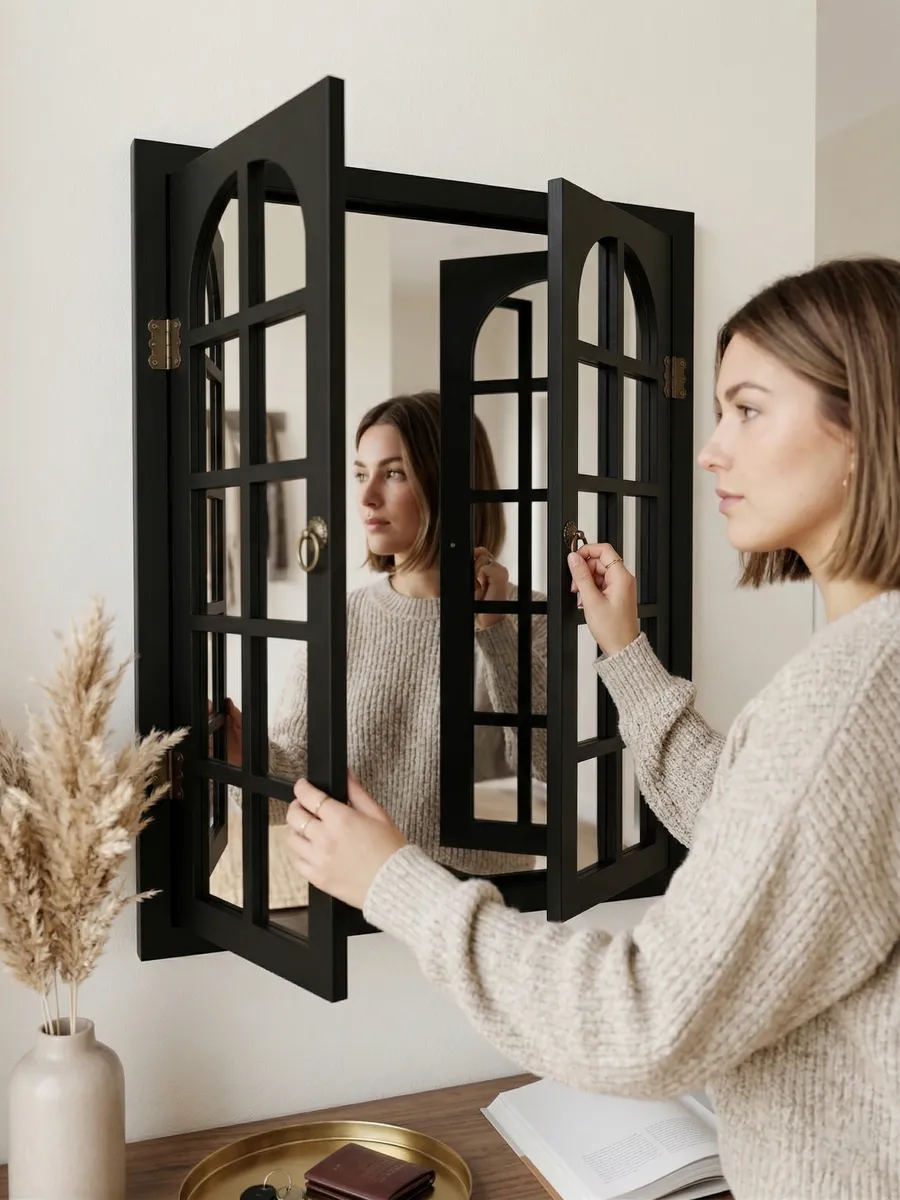 Настенное зеркало-окно со ставнями — декоративный акцент для интерьера