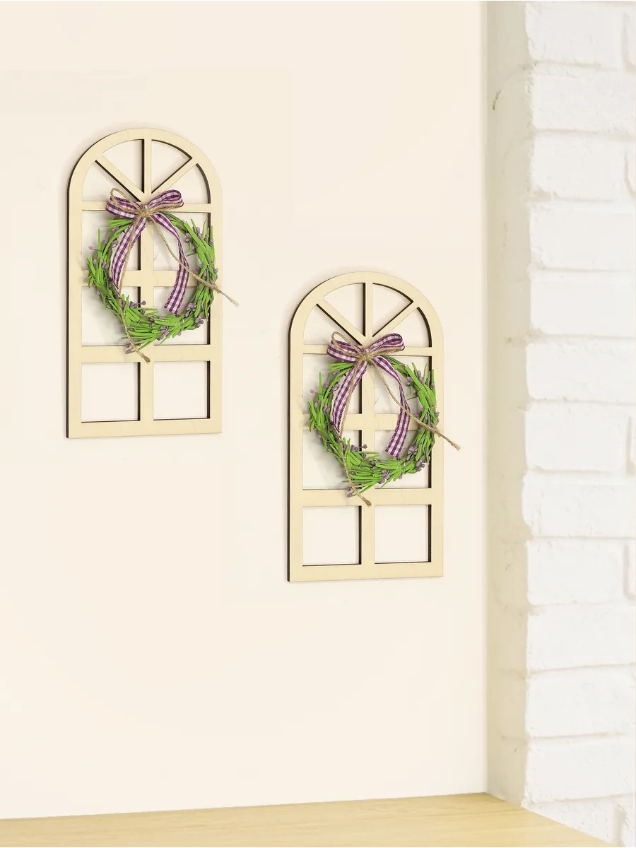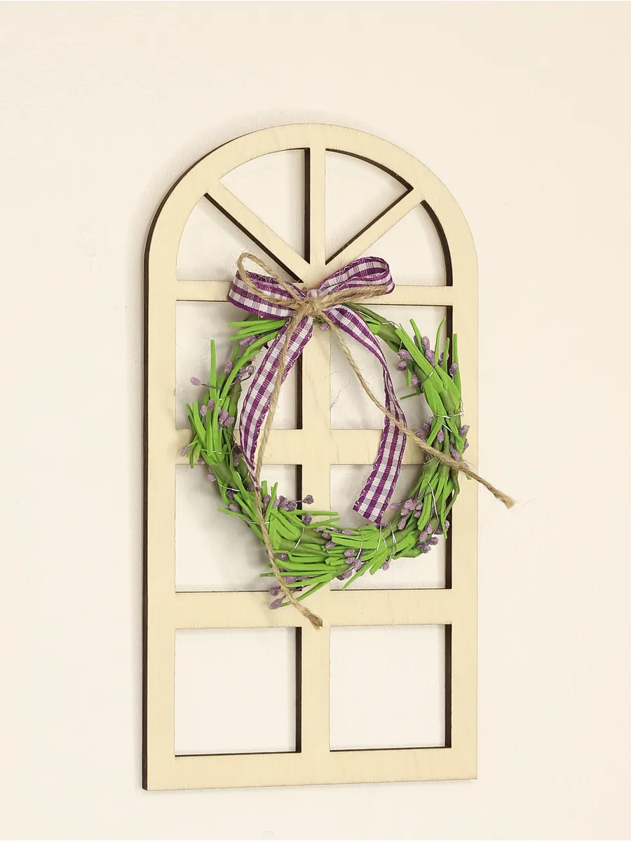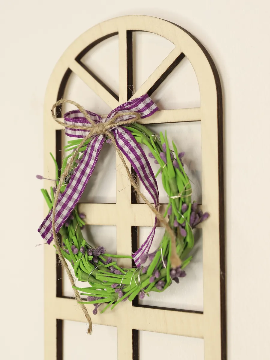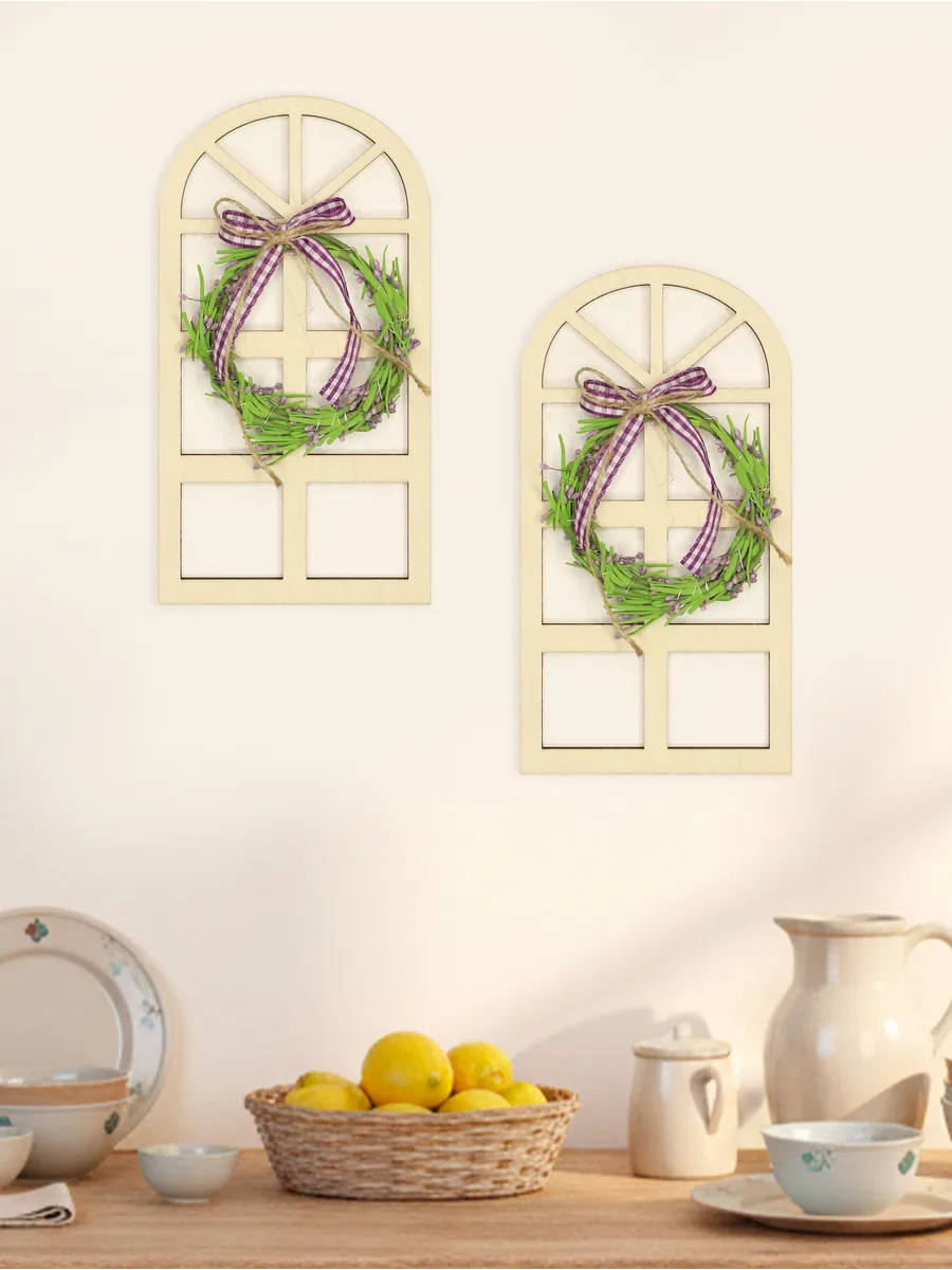 Два маленьких декоративных окошка с веночками из лаванды для декора стен. Панно изготовлены из березовой фанеры, без покрытия, задекорированы ленточками и веточками лаванды. Размеры окошек 12*21 см. Крепление для стены в комплекте. Украшение для интерьера в стиле Прованс и шебби-шик.