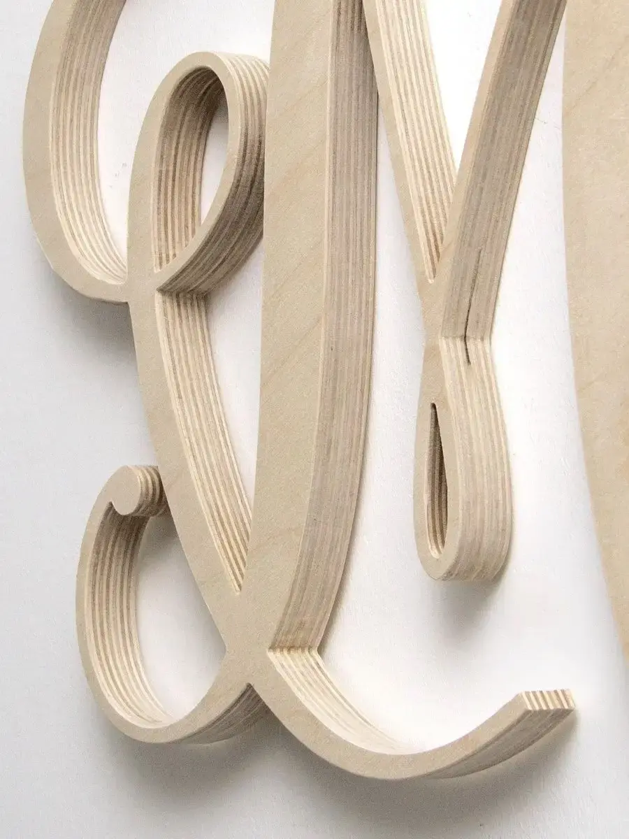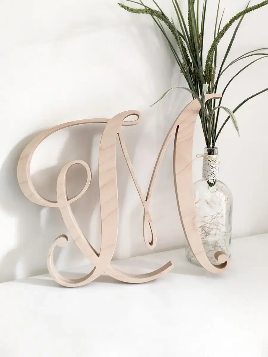 Изготовлена из березовой фанеры толщиной 21 мм, не окрашена, что позволяет придать буквам индивидуальность. Можно покрыть лаком, морилкой, акриловой краской на ваш вкус. Высота букв 33-35 см, ширина, соответственно, 29-35 см (см.технические характеристики каждой буквы).