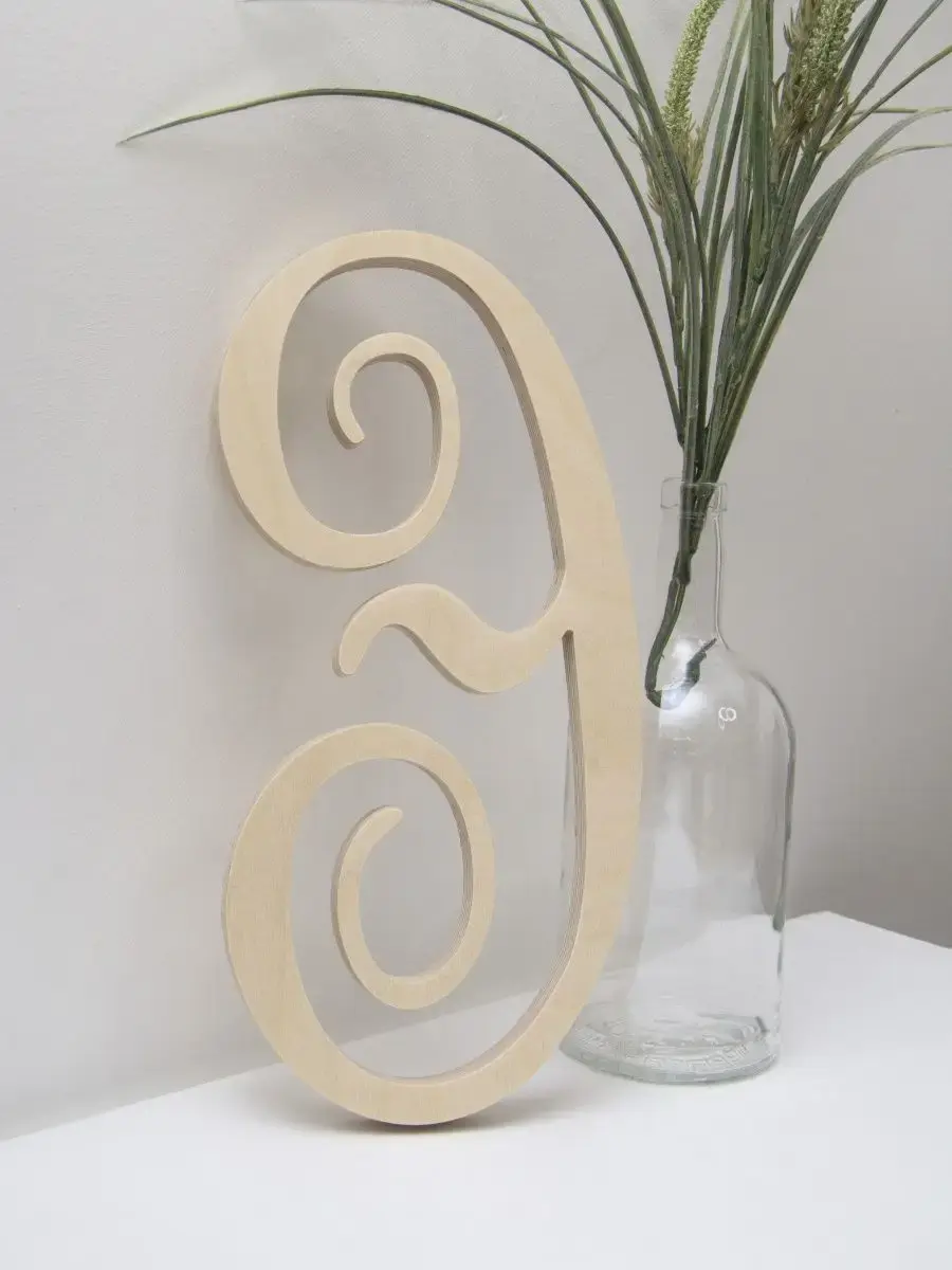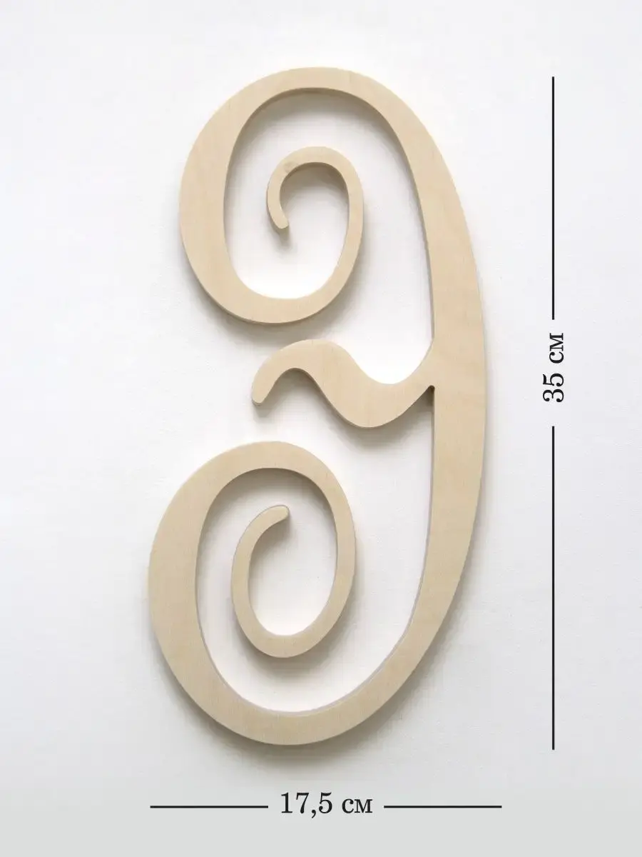 Изготовлена из березовой фанеры толщиной 19 мм, не окрашена, что позволяет придать буквам индивидуальность. Можно покрыть лаком, морилкой, акриловой краской на ваш вкус. Высота букв 33-35 см, ширина, соответственно, 29-35 см