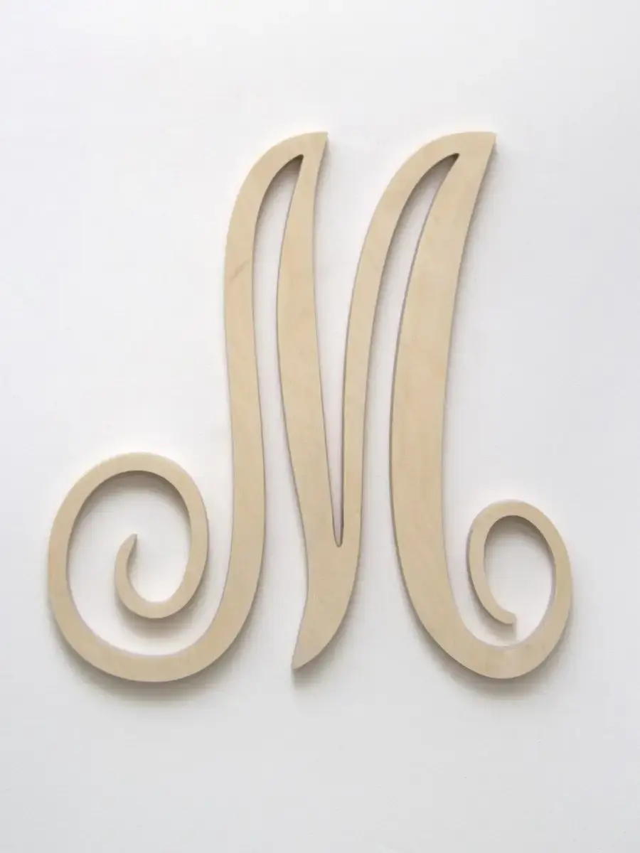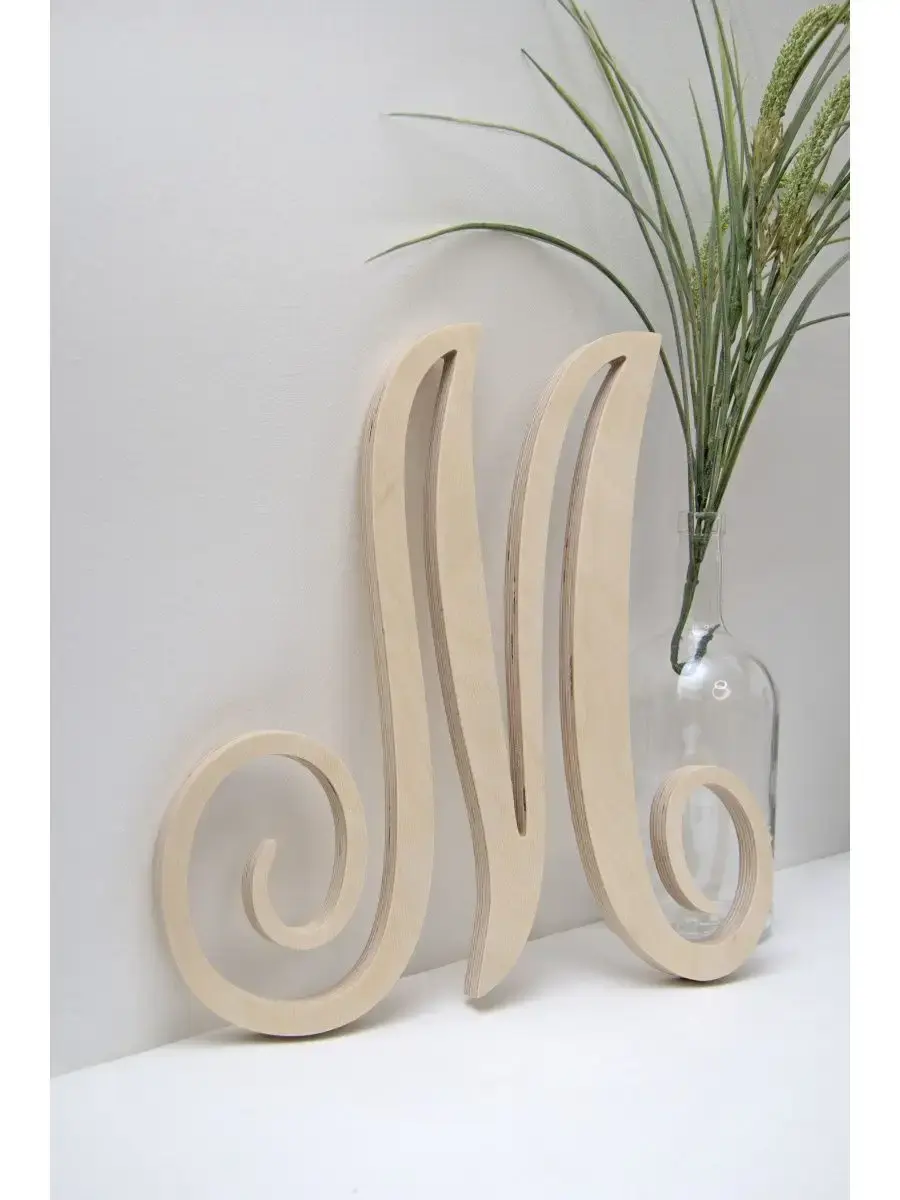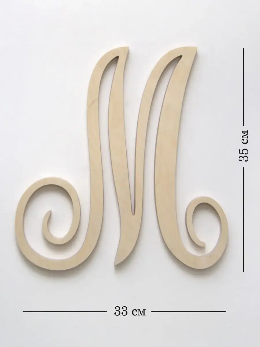 Изготовлена из березовой фанеры толщиной 19 мм, не окрашена, что позволяет придать буквам индивидуальность. Можно покрыть лаком, морилкой, акриловой краской на ваш вкус. Высота букв 33-35 см, ширина, соответственно, 29-35 см