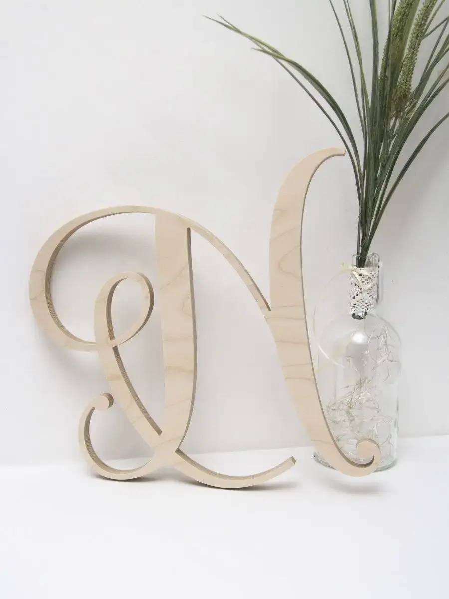 Изготовлена из березовой фанеры толщиной 21 мм, не окрашена, что позволяет придать буквам индивидуальность. Можно покрыть лаком, морилкой, акриловой краской на ваш вкус. Высота букв 33-35 см, ширина, соответственно, 29-35 см (см.технические характеристики каждой буквы).