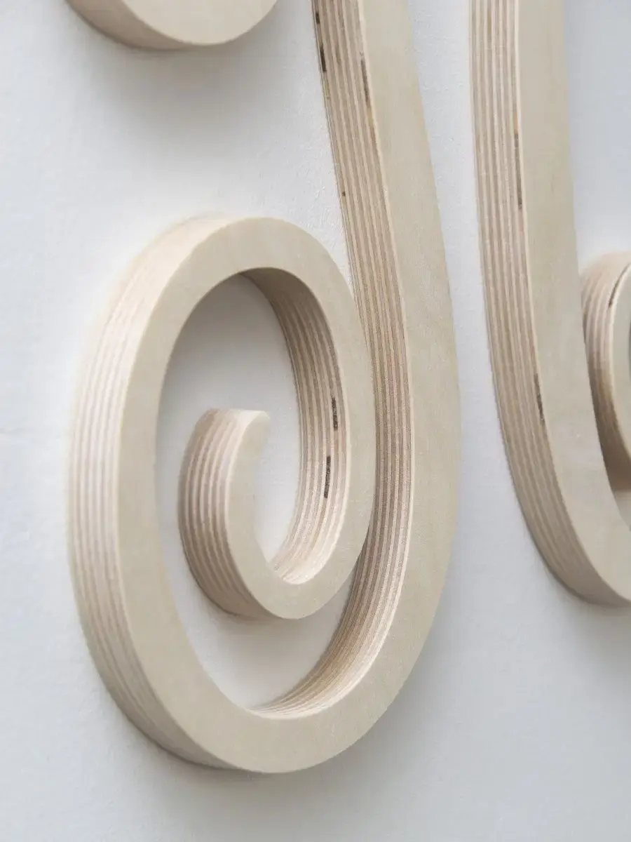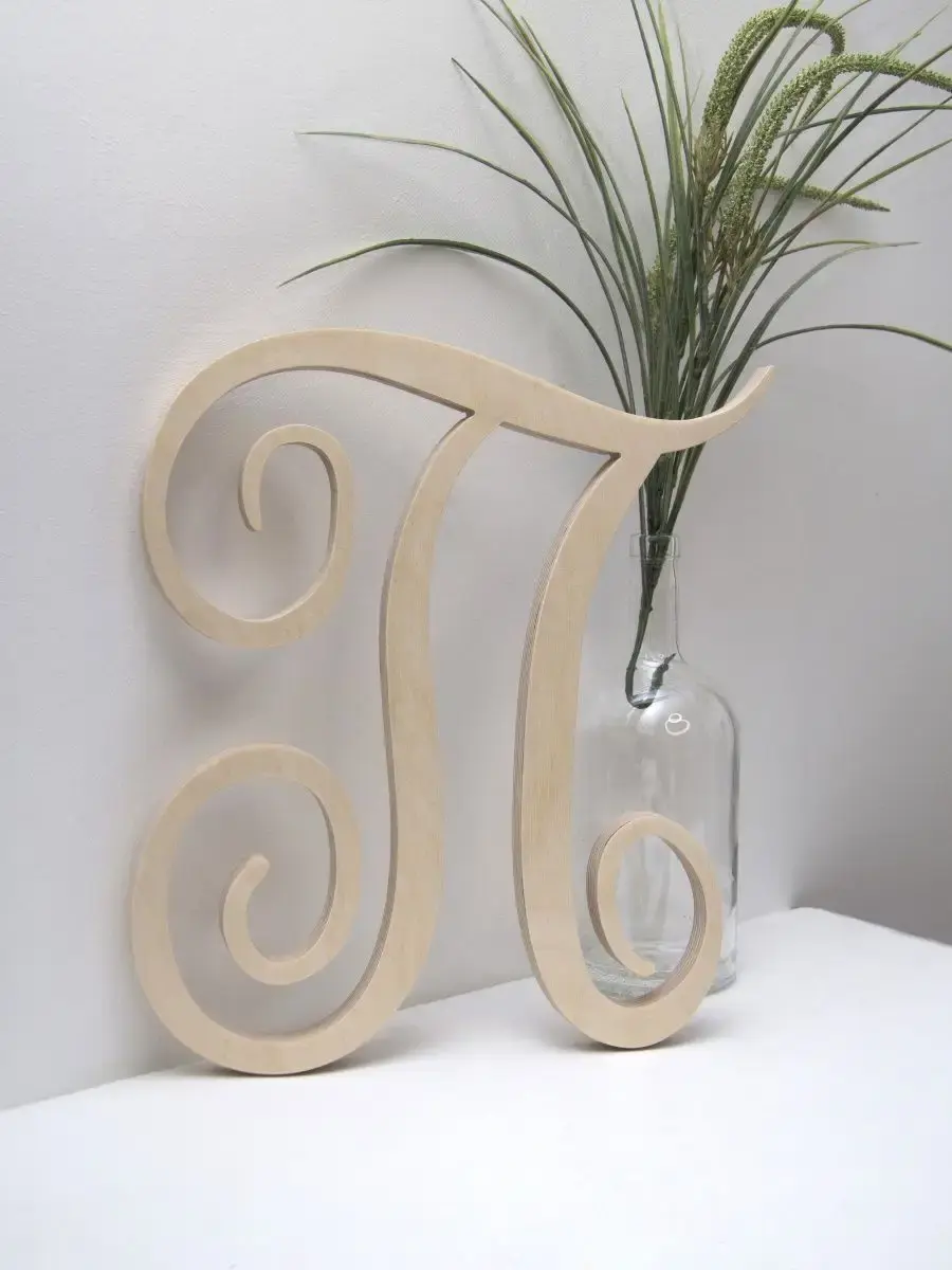 Изготовлена из березовой фанеры толщиной 19 мм, не окрашена, что позволяет придать буквам индивидуальность. Можно покрыть лаком, морилкой, акриловой краской на ваш вкус. Высота букв 33-35 см, ширина, соответственно, 29-35 см