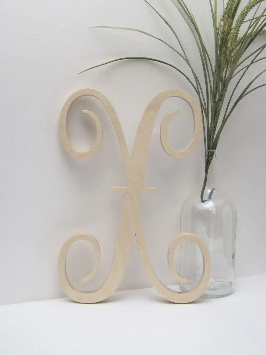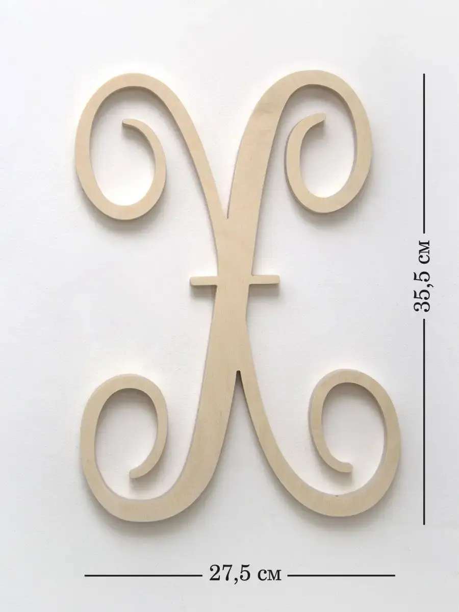 Изготовлена из березовой фанеры толщиной 19 мм, не окрашена, что позволяет придать буквам индивидуальность. Можно покрыть лаком, морилкой, акриловой краской на ваш вкус. Высота букв 33-35 см, ширина, соответственно, 29-35 см