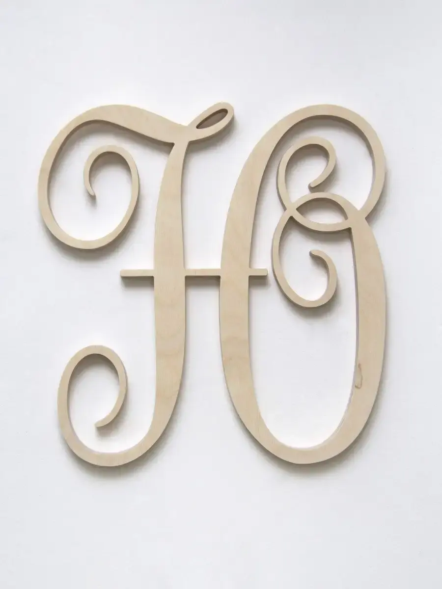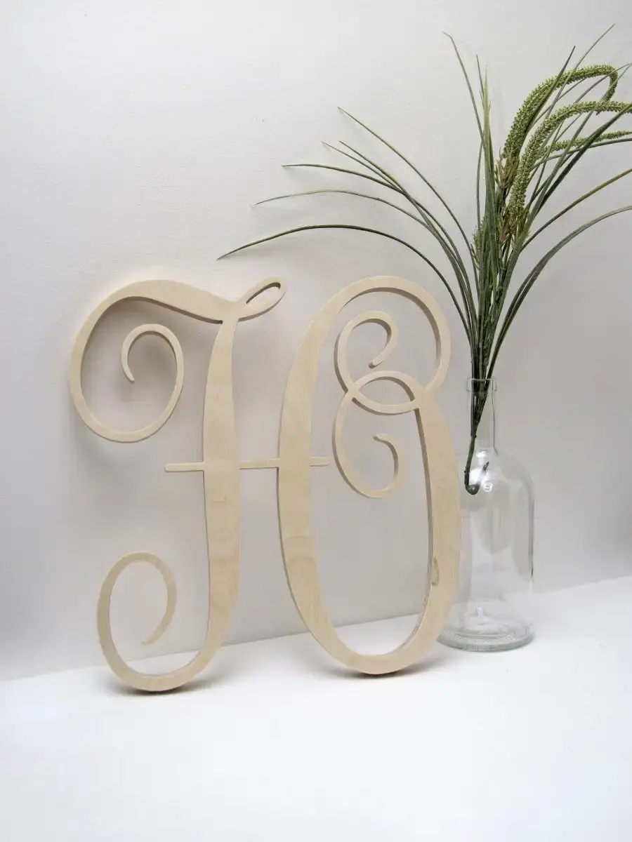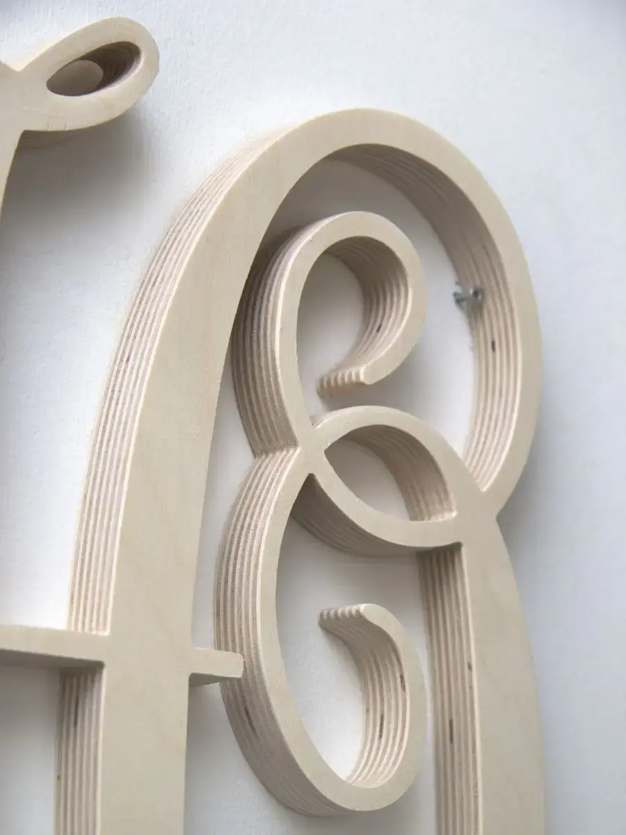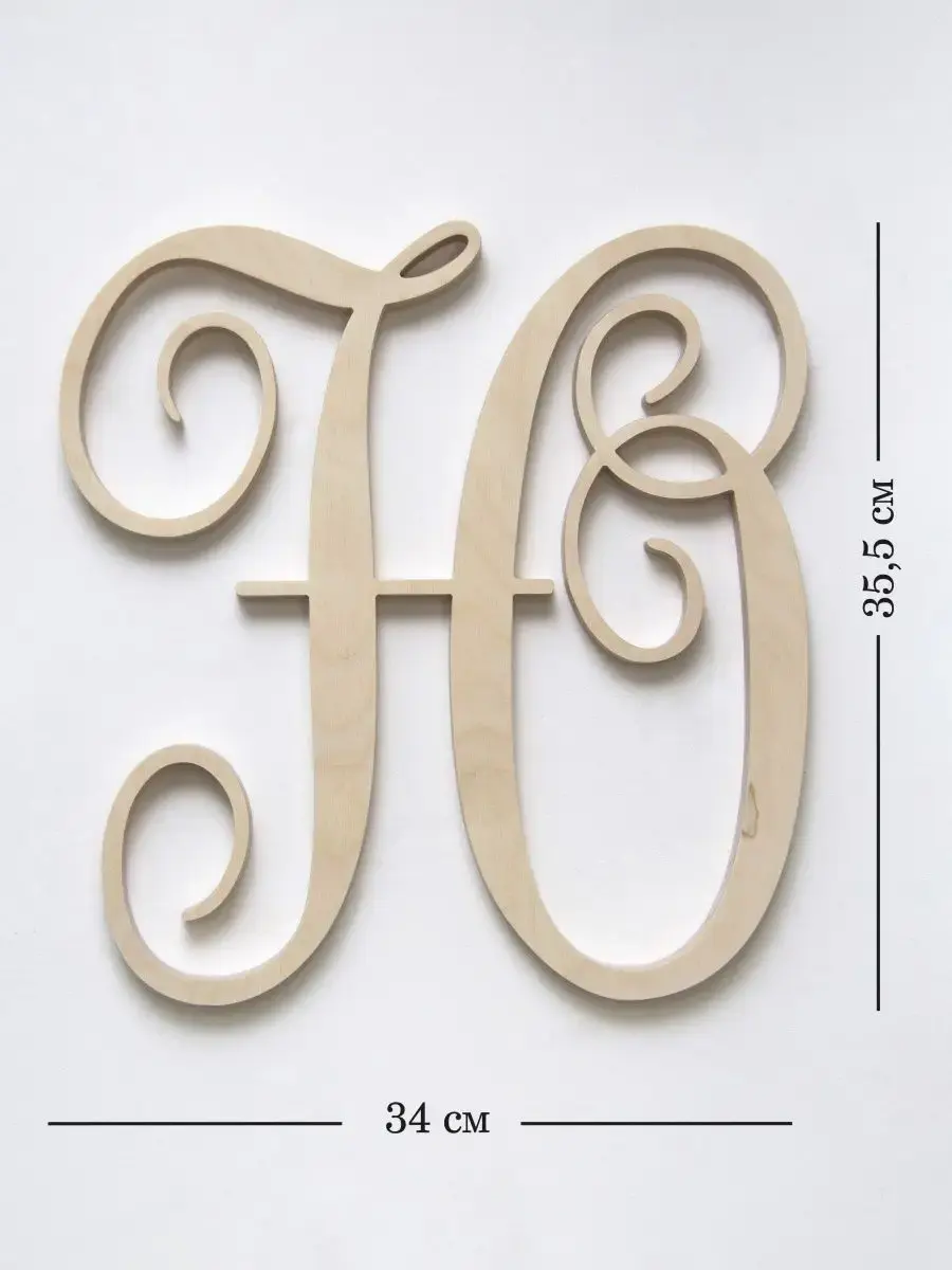 Изготовлена из березовой фанеры толщиной 19 мм, не окрашена, что позволяет придать буквам индивидуальность. Можно покрыть лаком, морилкой, акриловой краской на ваш вкус. Высота букв 33-35 см, ширина, соответственно, 29-35 см
