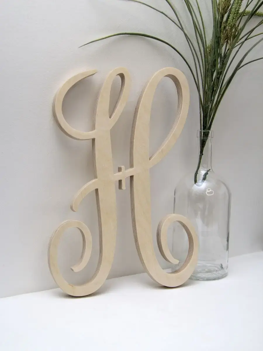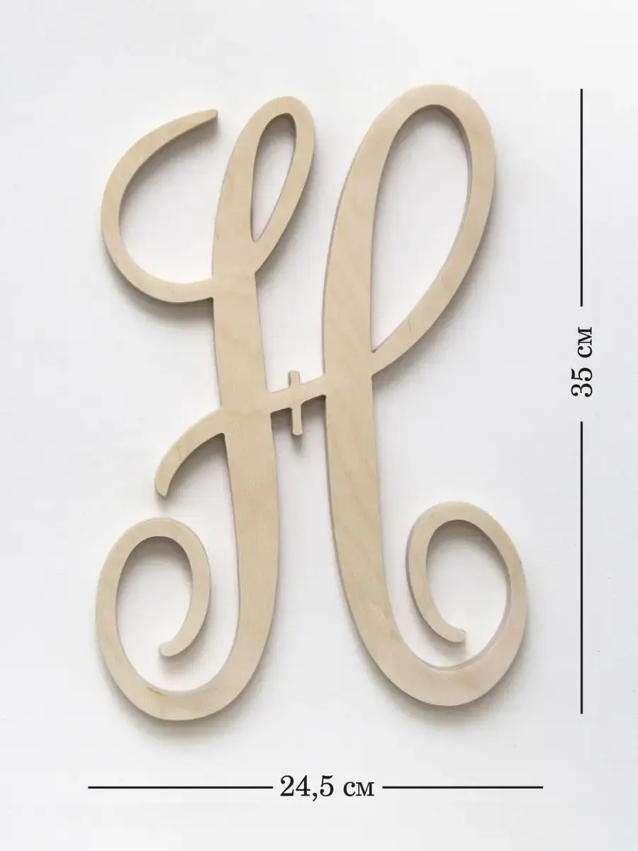 Изготовлена из березовой фанеры толщиной 19 мм, не окрашена, что позволяет придать буквам индивидуальность. Можно покрыть лаком, морилкой, акриловой краской на ваш вкус. Высота букв 33-35 см, ширина, соответственно, 29-35 см