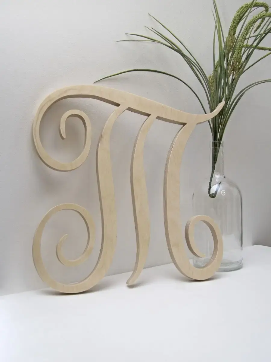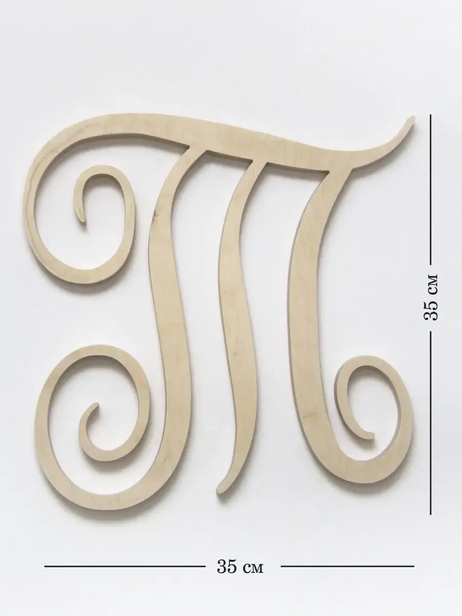 Изготовлена из березовой фанеры толщиной 19 мм, не окрашена, что позволяет придать буквам индивидуальность. Можно покрыть лаком, морилкой, акриловой краской на ваш вкус. Высота букв 33-35 см, ширина, соответственно, 29-35 см