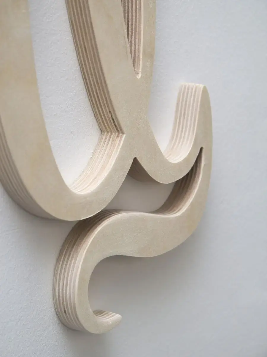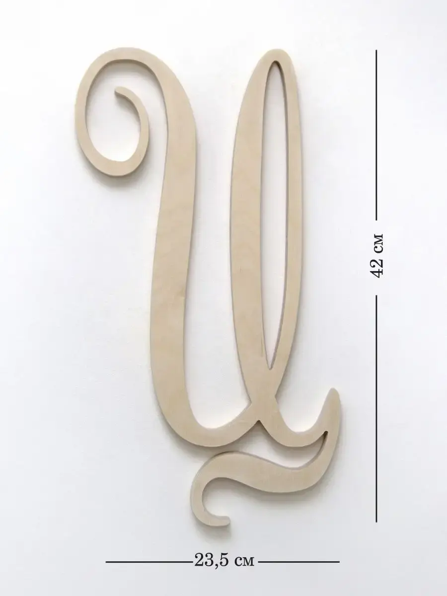 Изготовлена из березовой фанеры толщиной 19 мм, не окрашена, что позволяет придать буквам индивидуальность. Можно покрыть лаком, морилкой, акриловой краской на ваш вкус. Высота букв 33-35 см, ширина, соответственно, 29-35 см