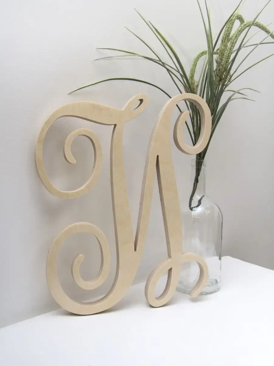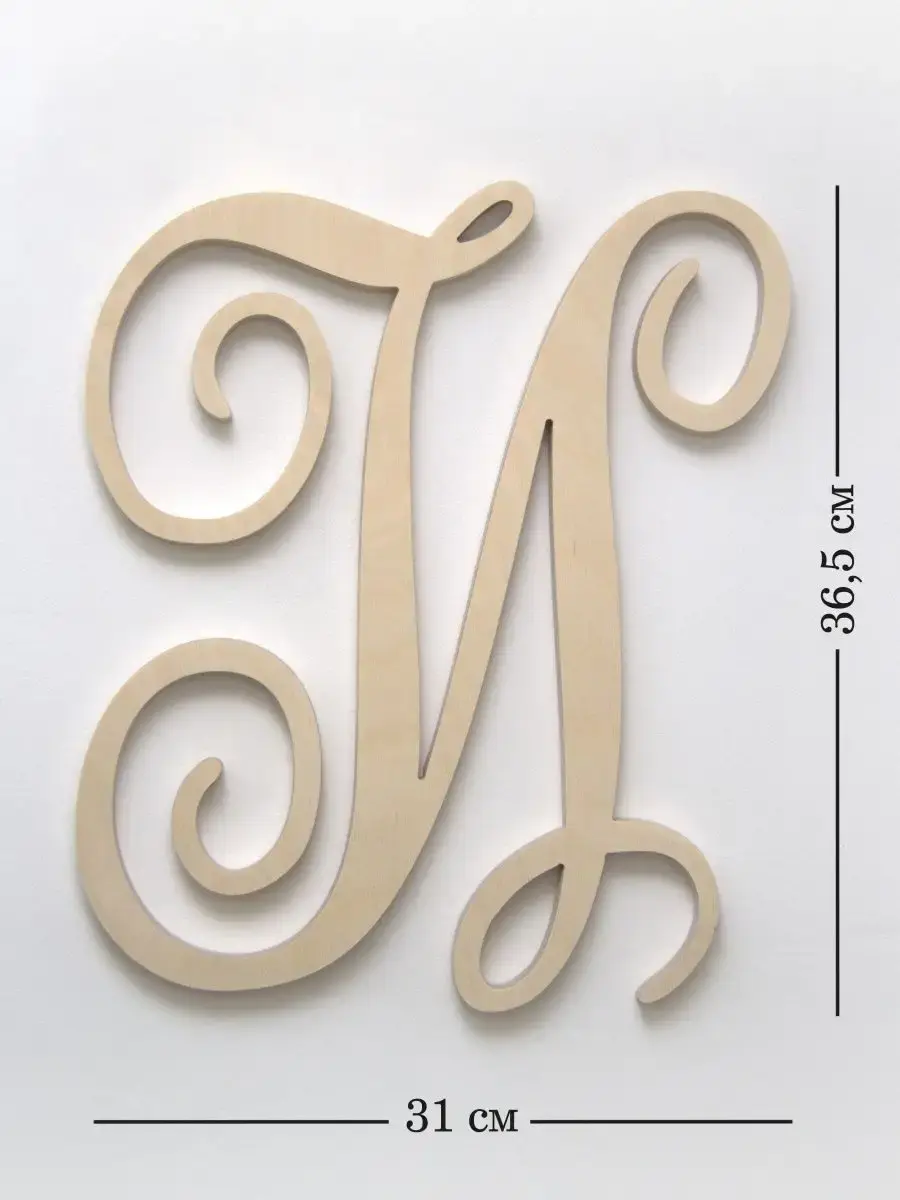 Изготовлена из березовой фанеры толщиной 19 мм, не окрашена, что позволяет придать буквам индивидуальность. Можно покрыть лаком, морилкой, акриловой краской на ваш вкус. Высота букв 33-35 см, ширина, соответственно, 29-35 см