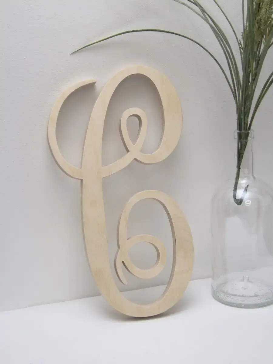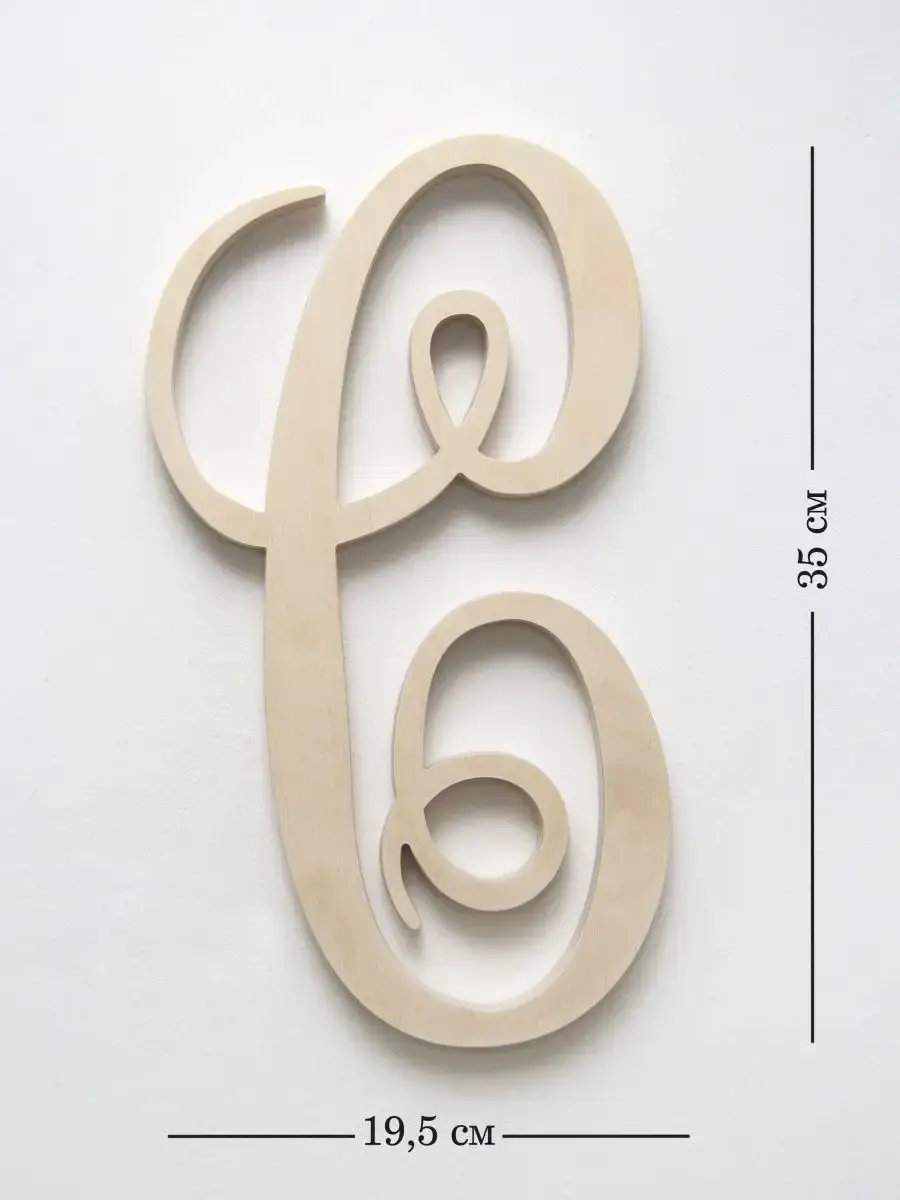 Изготовлена из березовой фанеры толщиной 19 мм, не окрашена, что позволяет придать буквам индивидуальность. Можно покрыть лаком, морилкой, акриловой краской на ваш вкус. Высота букв 33-35 см, ширина, соответственно, 29-35 см