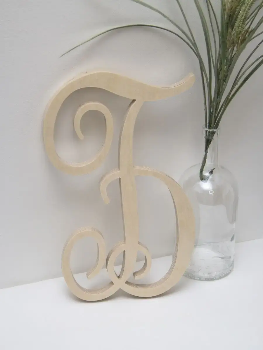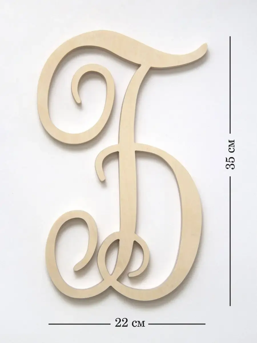 Изготовлена из березовой фанеры толщиной 19 мм, не окрашена, что позволяет придать буквам индивидуальность. Можно покрыть лаком, морилкой, акриловой краской на ваш вкус. Высота букв 33-35 см, ширина, соответственно, 29-35 см