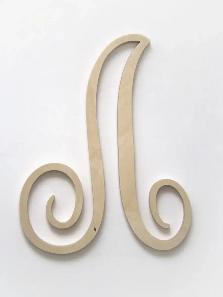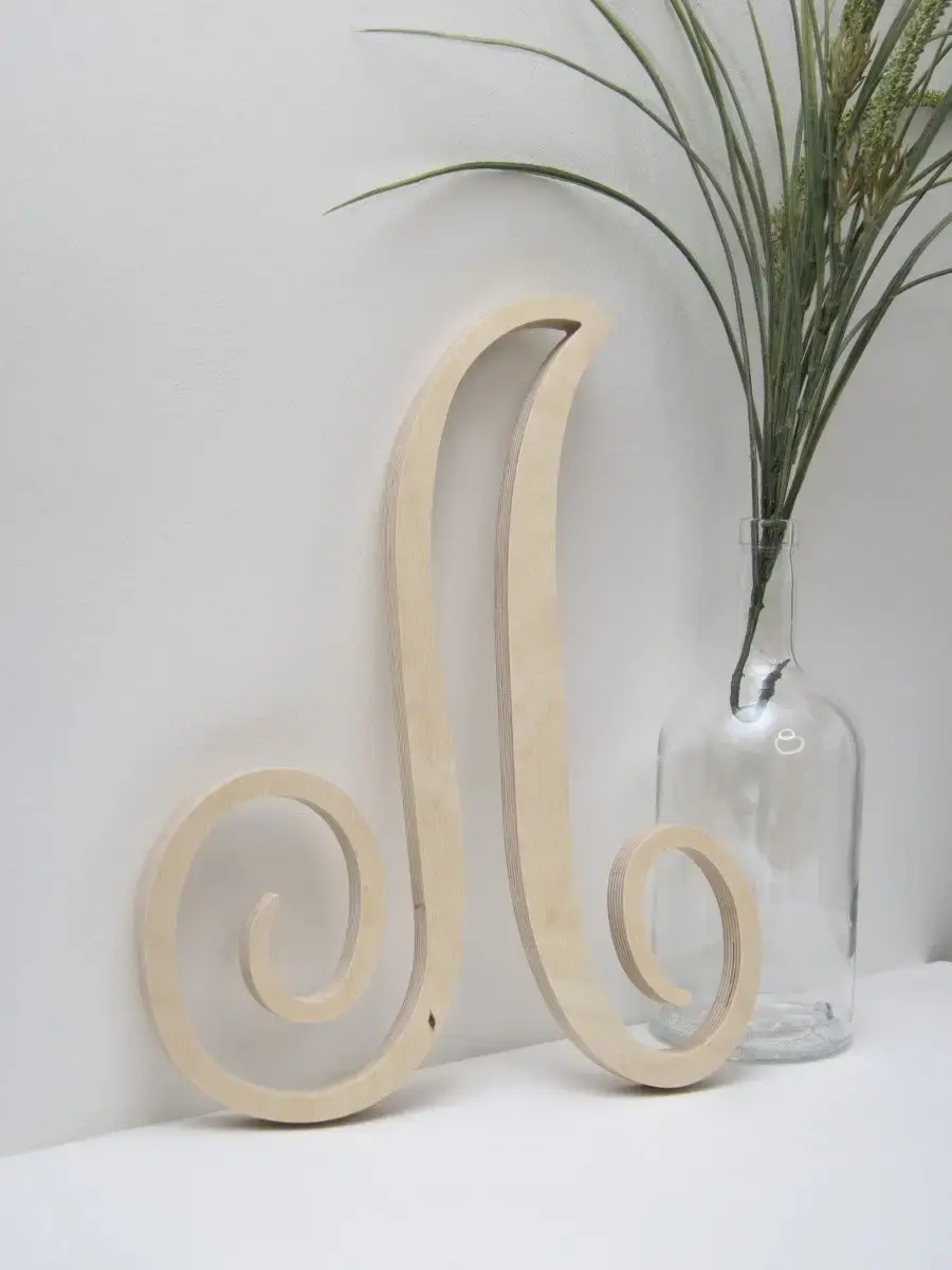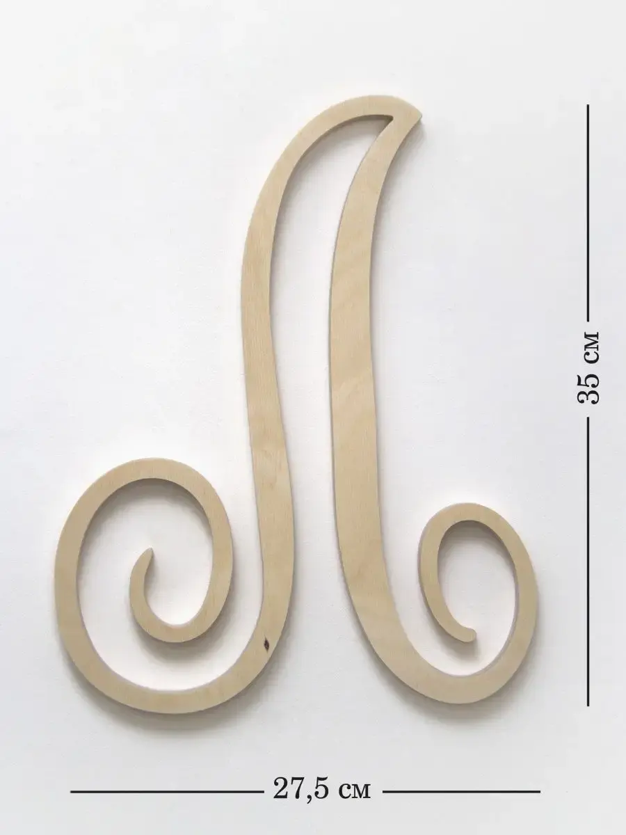 Изготовлена из березовой фанеры толщиной 19 мм, не окрашена, что позволяет придать буквам индивидуальность. Можно покрыть лаком, морилкой, акриловой краской на ваш вкус. Высота букв 33-35 см, ширина, соответственно, 29-35 см