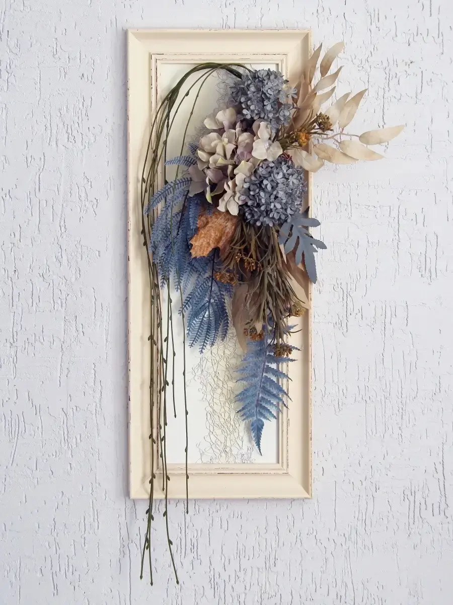 Авторская композиция из интерьерных цветов в багетной раме. Идеально сочитается с полкой в раме арт.25641489 и зеркалом 26259195 . Настенная цветочная композиция в багетной раме с искусственными интерьерными цветами. Выполнена из высококачественных искусственных цветов и растений , лаванда и гортензия, горошек, орхидеи . Размер рамы 25х65 см. В комплекте шуруп с дюбелем и зубчатый крепеж на раме. Отличное украшение к зеркалу, коллекции картин с цветами или в прихожей, где живым цветам недостаточно света. Панно долго будет радовать и добавлять уюта в дом.